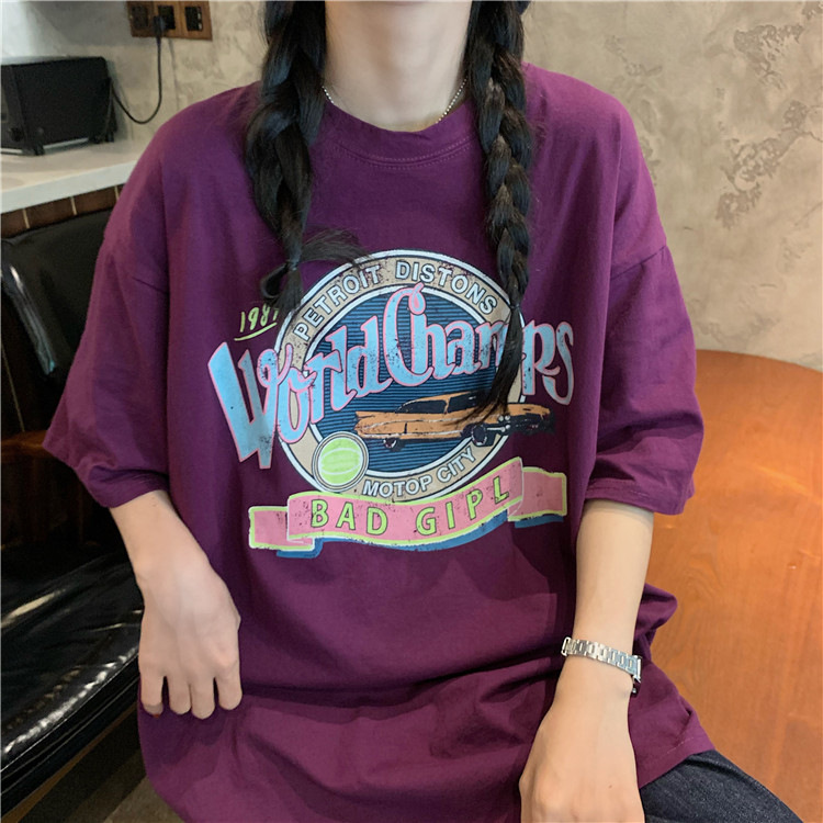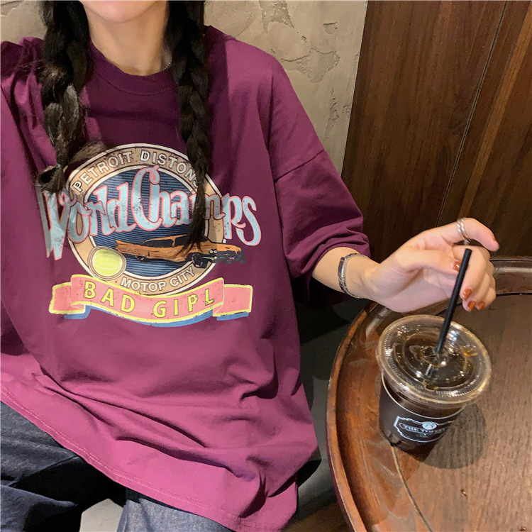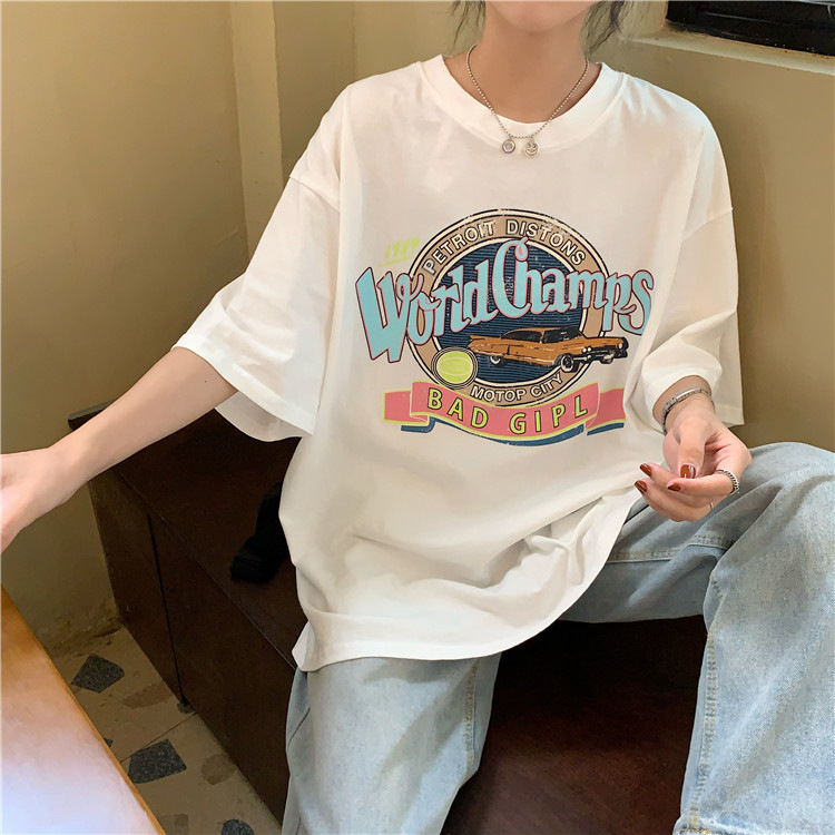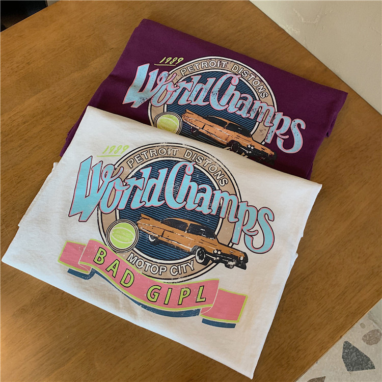 Xinyu 아메리칸 레트로 트렌디 레터 프린트 티셔츠 캐주얼 여성 신작 반팔 다용도 풀오버 슬리밍 탑스토어 가기