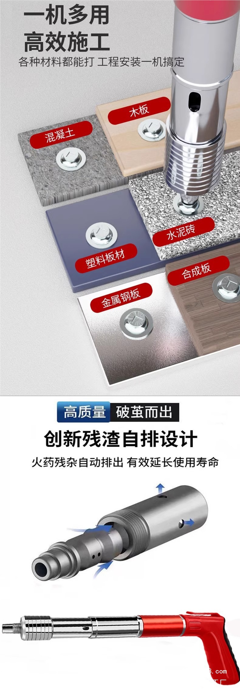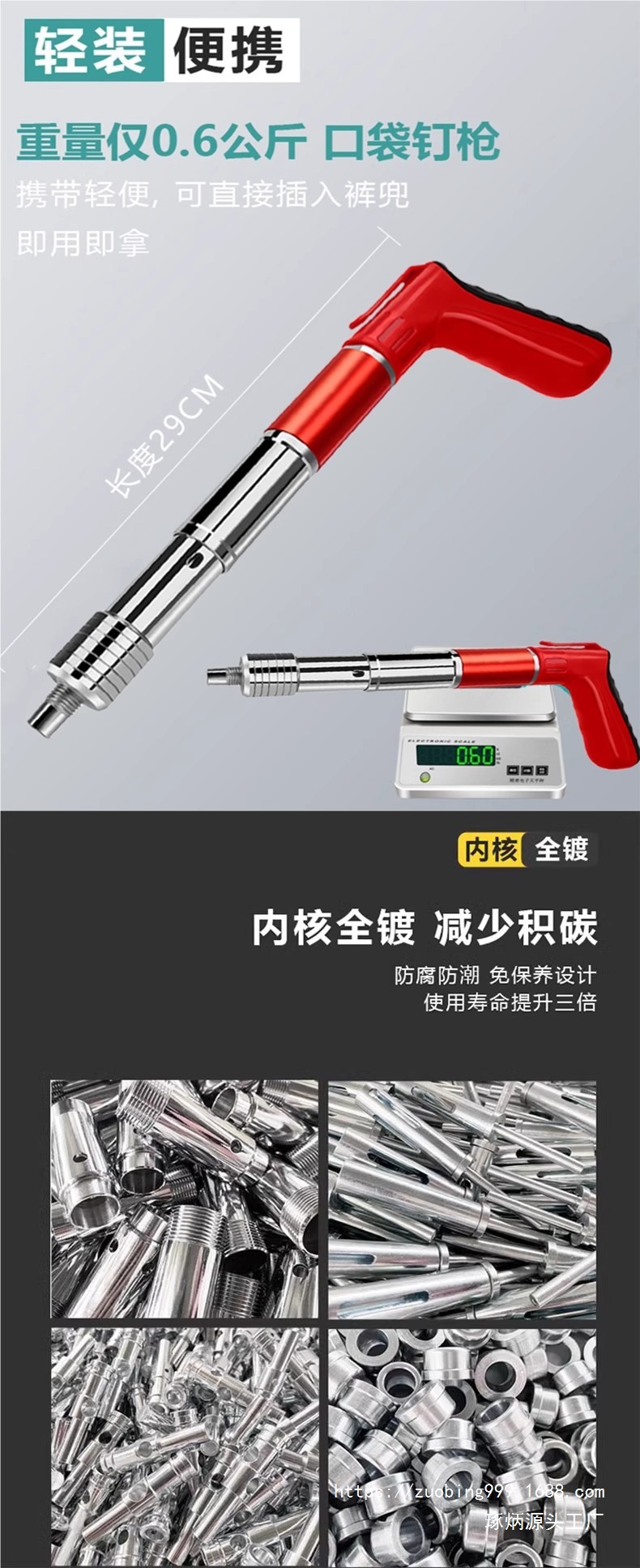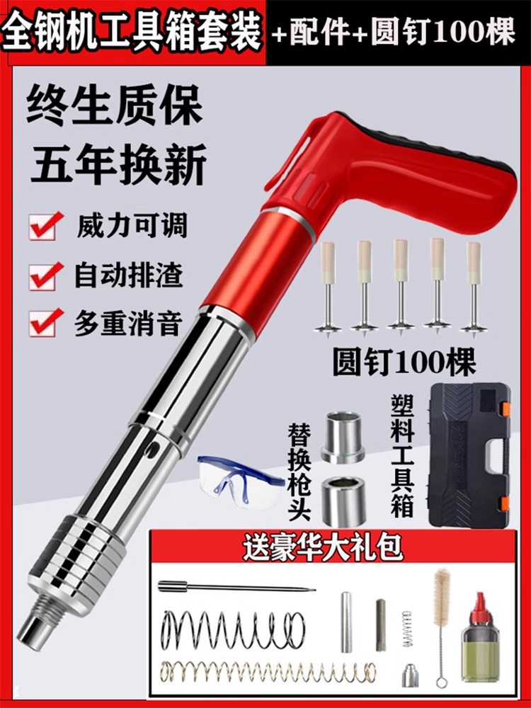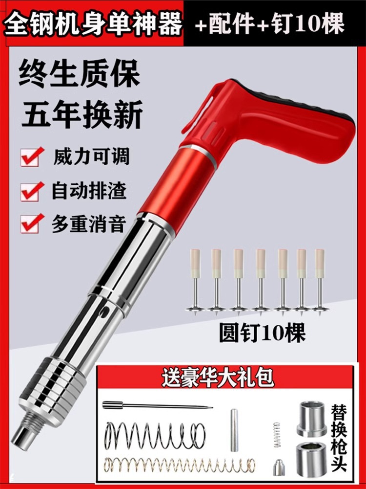 • 올 스틸 바디 모델, 단일 총 + 10개의 둥근 못, 무료 액세서리 가방