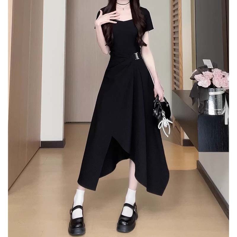 2025년 여름 여성을 위한 프렌치 스타일 그레이 드레스, 새로운 스타일, 작고 아름답고 아름다운, 아름다운 허리, 아름다운 롱 스커트스토어 가기