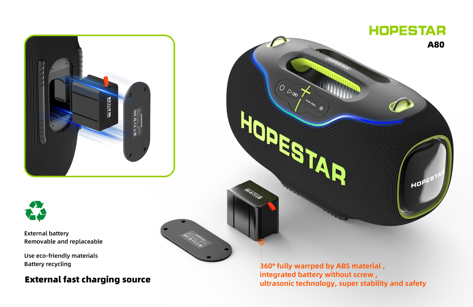 HOPESTAR A80 고출력 블루투스 스피커 가라오케 서브우퍼 야외 무선 고품질 오디오 300W