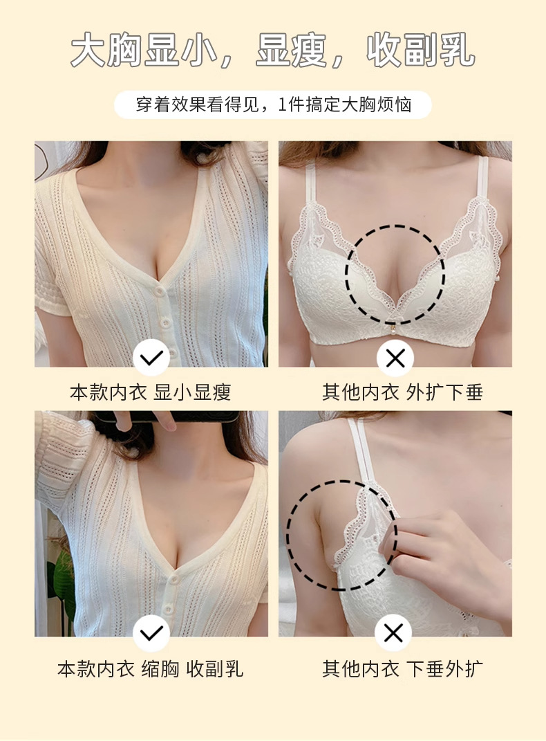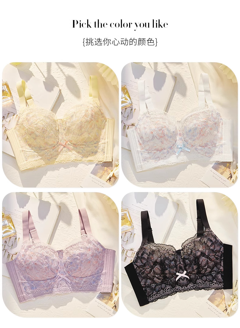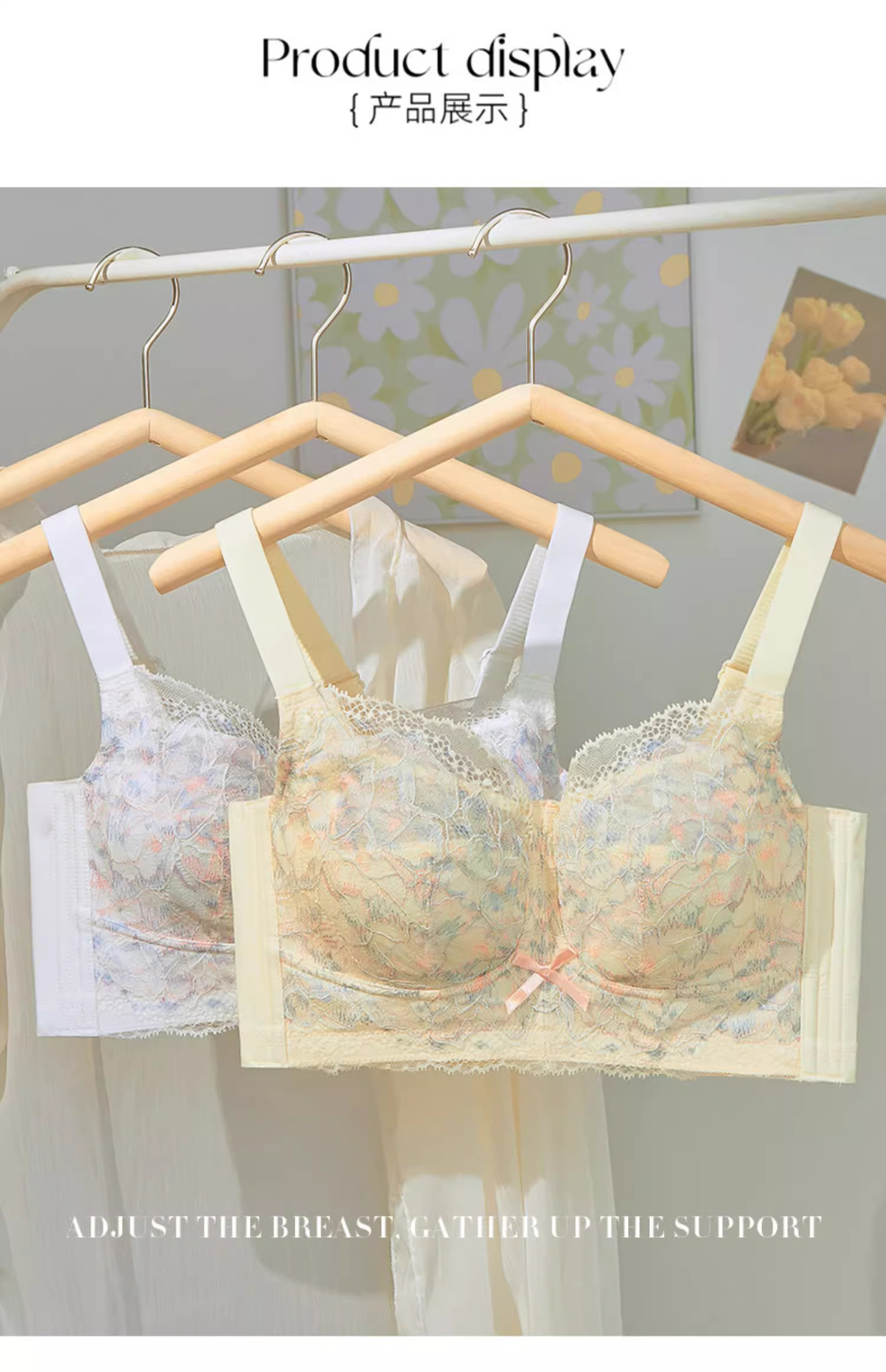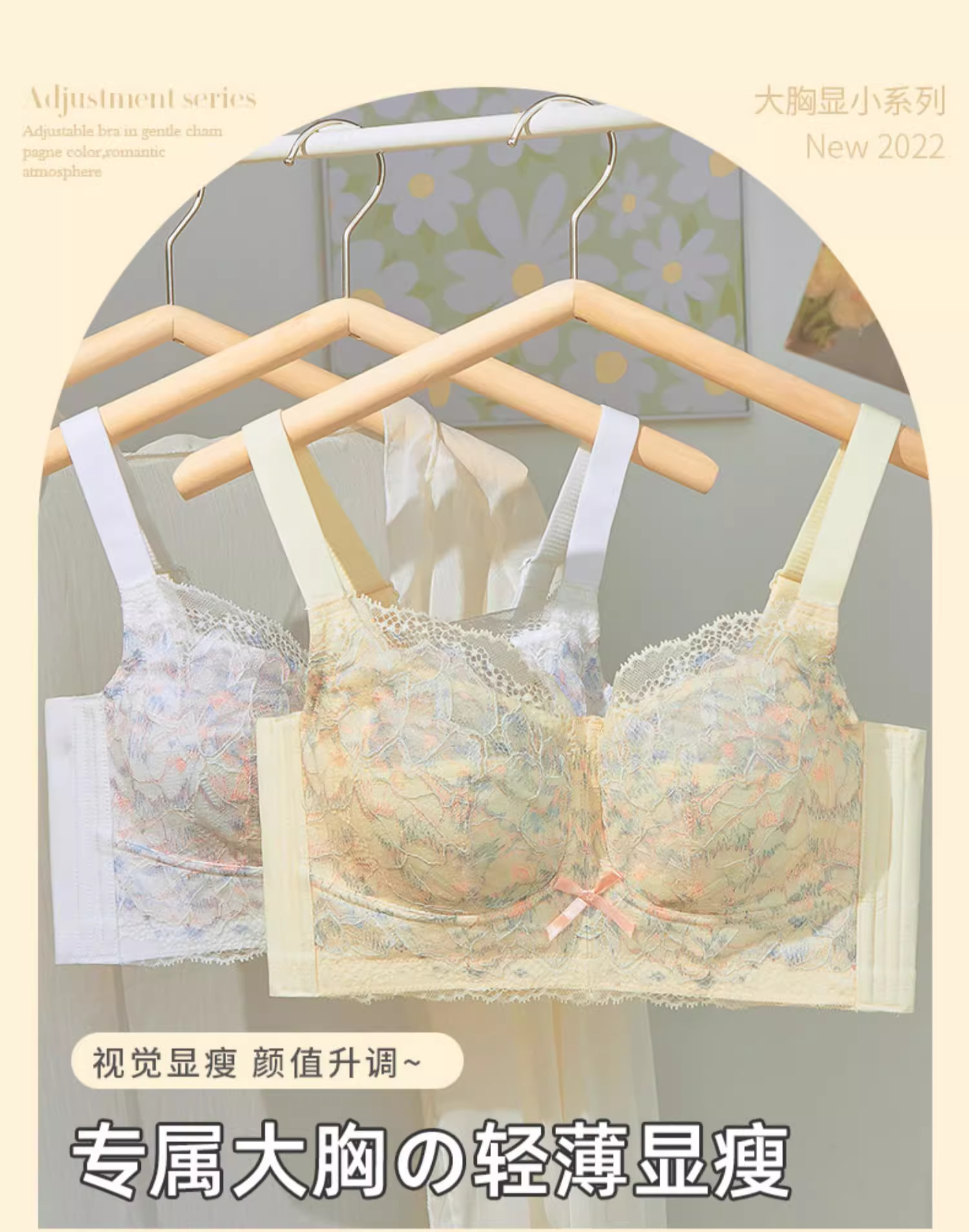와이어 프리, 얇고 통기성이 좋으며 가슴 수축, 풀컵, 큰 가슴, 작은 속옷, 여성용 대형 푸시업 브라, 레이스 브라스토어 가기