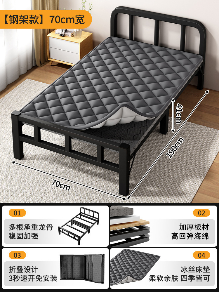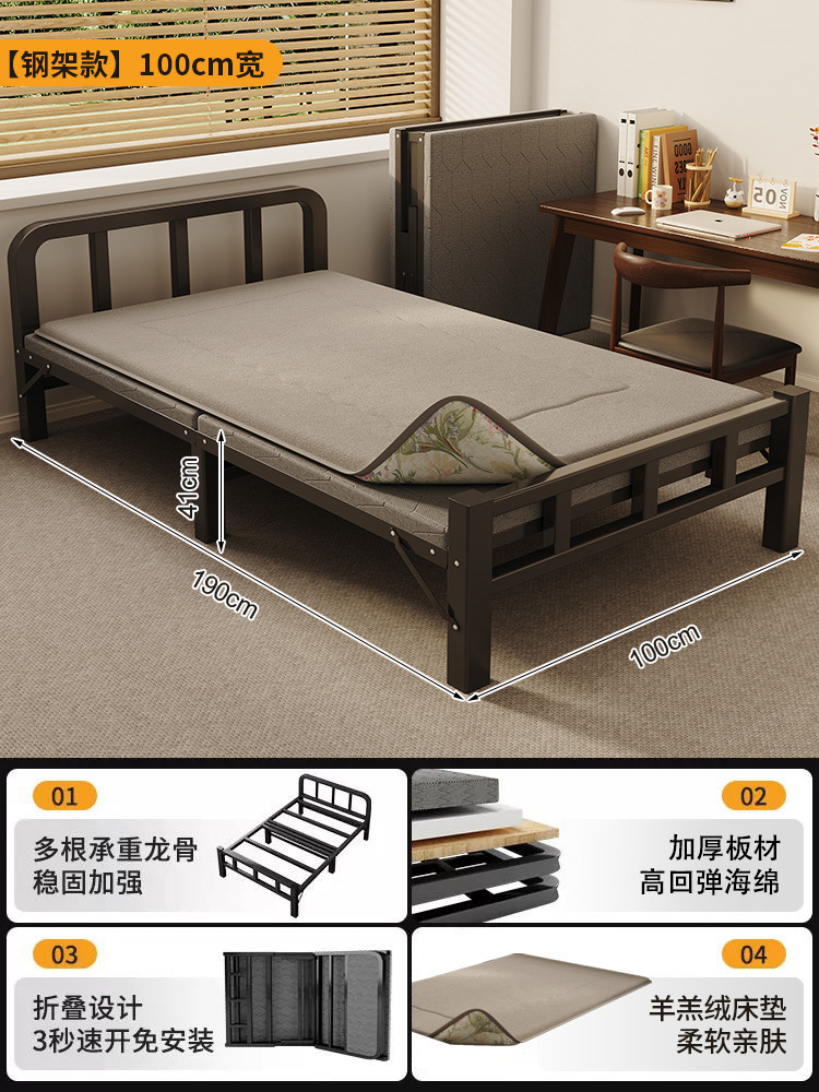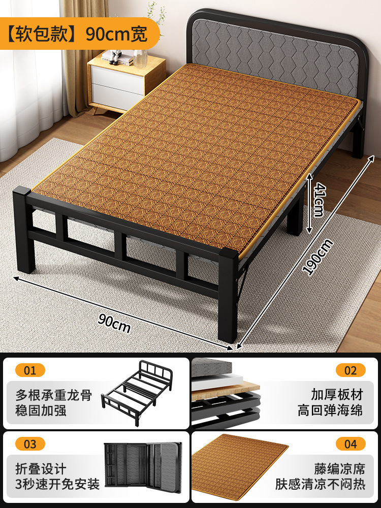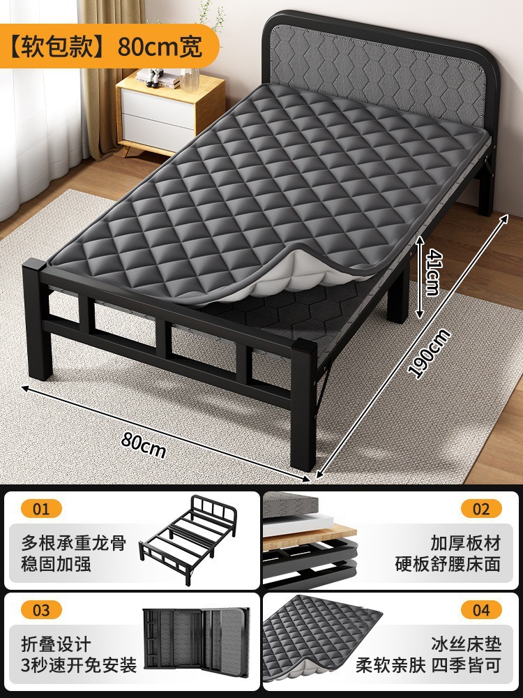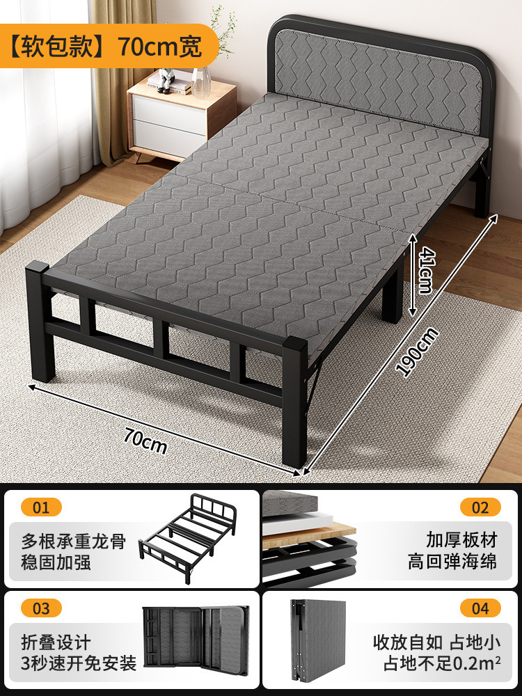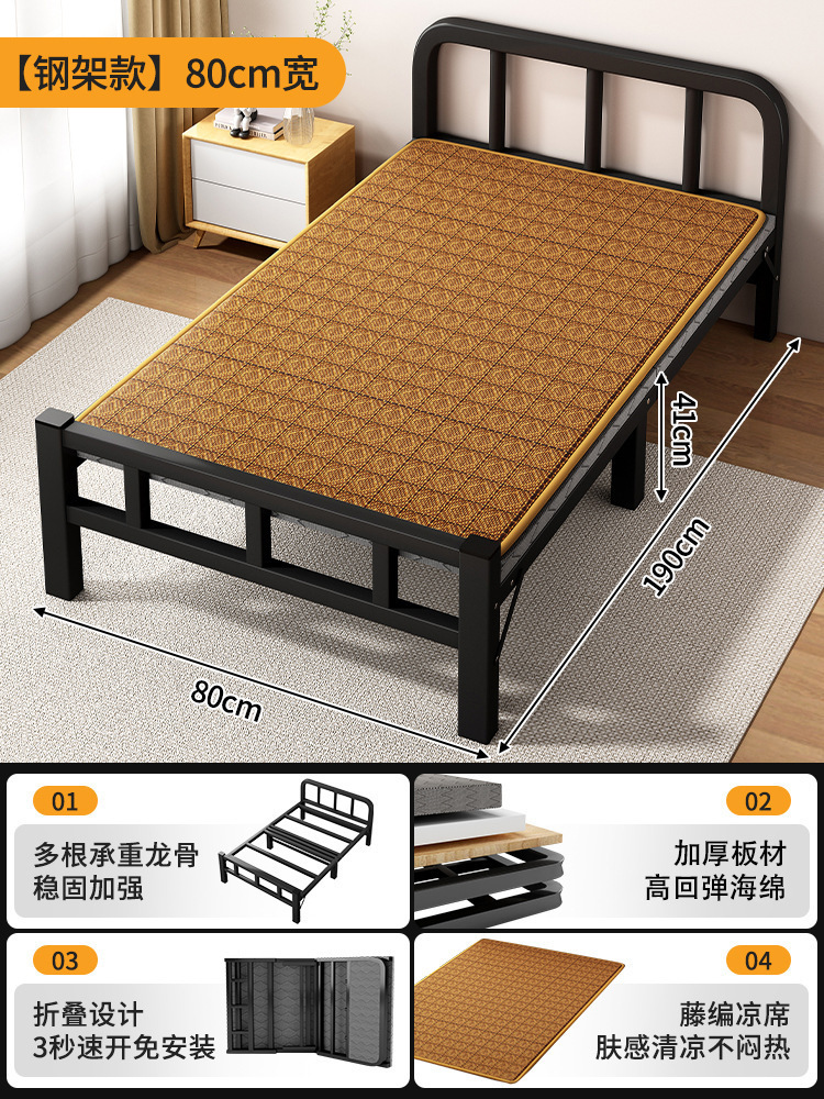 두꺼운 철제 침대 학교 기숙사 싱글 철제 프레임 침대 점심 시간 접이식 임대 주택 철제 침대 도매스토어 가기