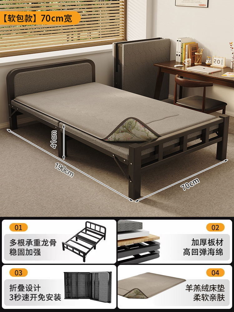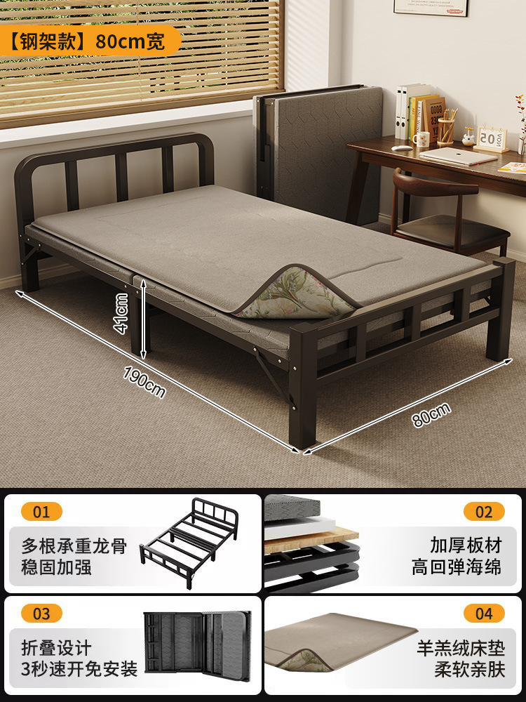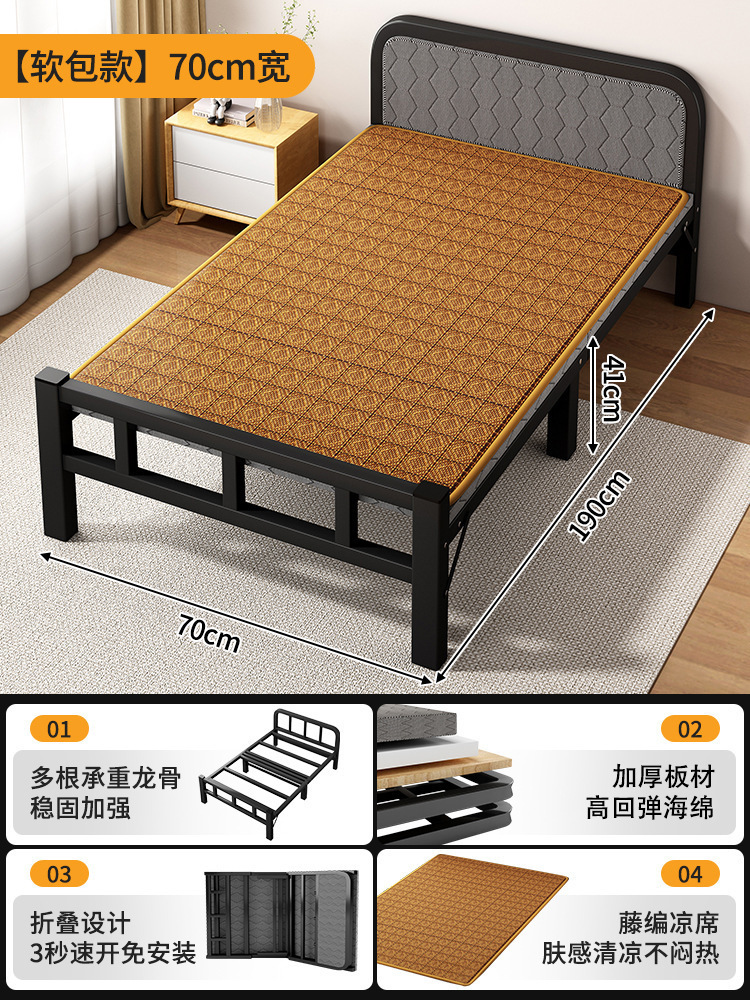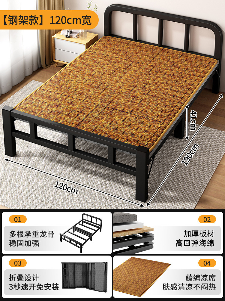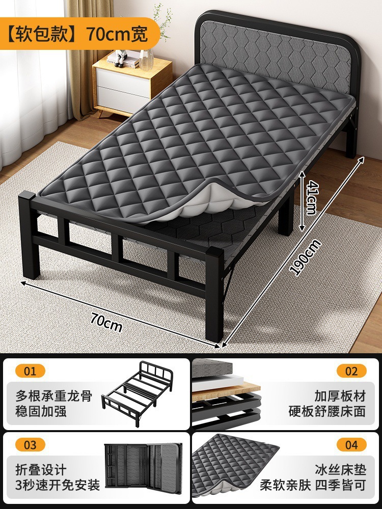 두꺼운 철제 침대 학교 기숙사 싱글 철제 프레임 침대 점심 시간 접이식 임대 주택 철제 침대 도매스토어 가기