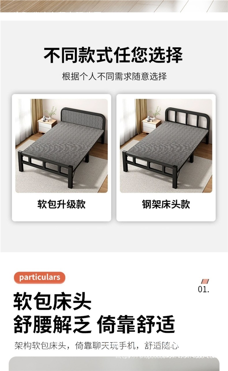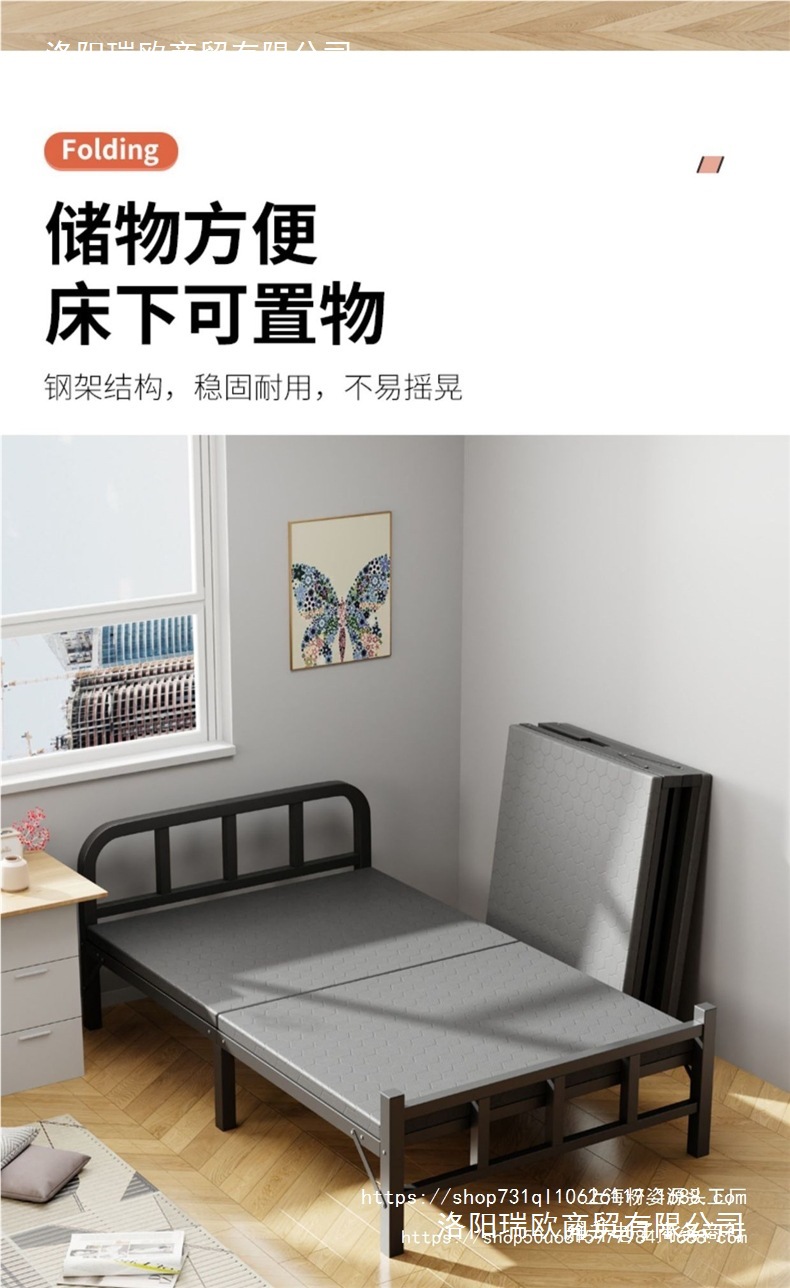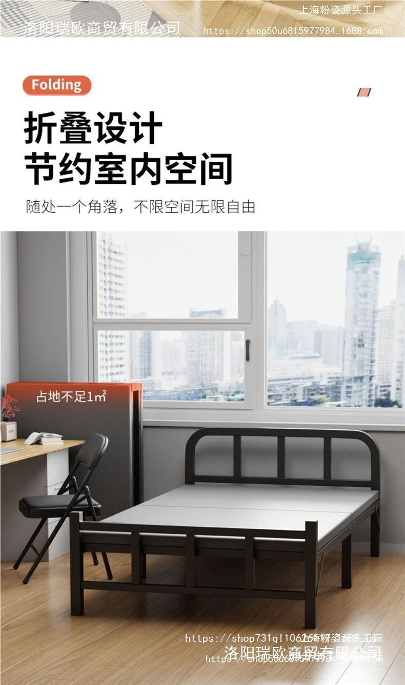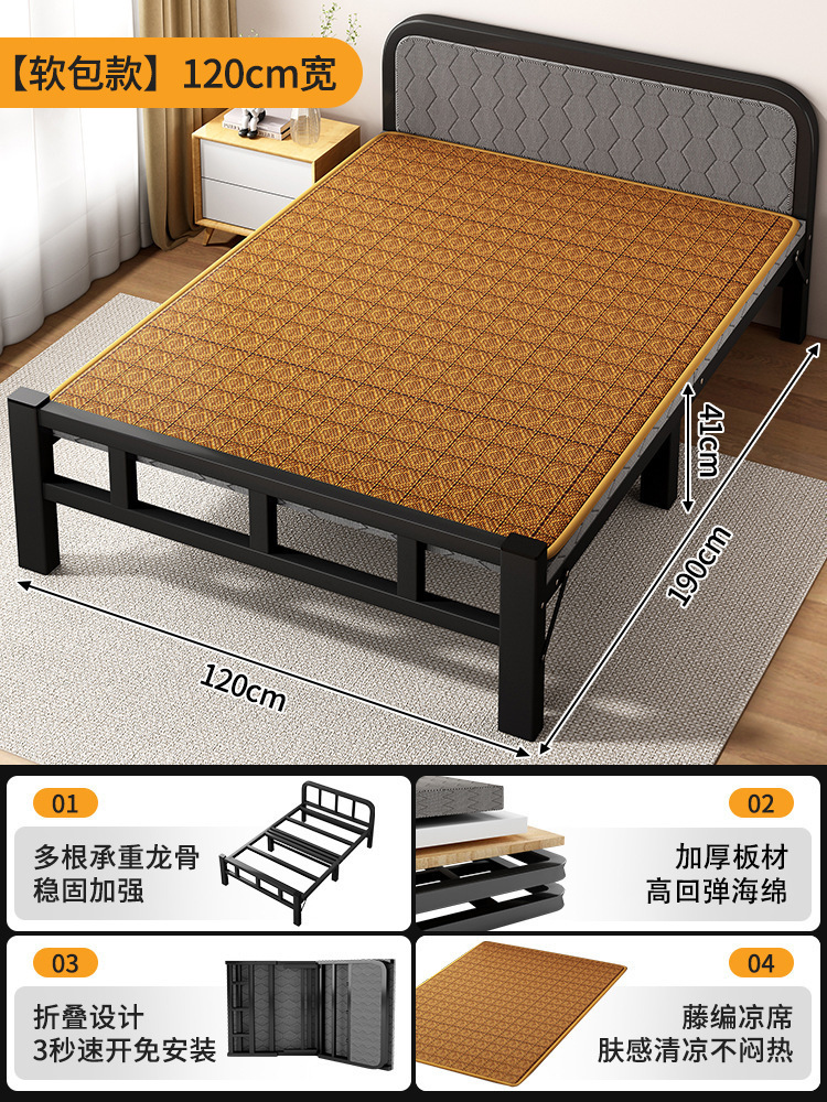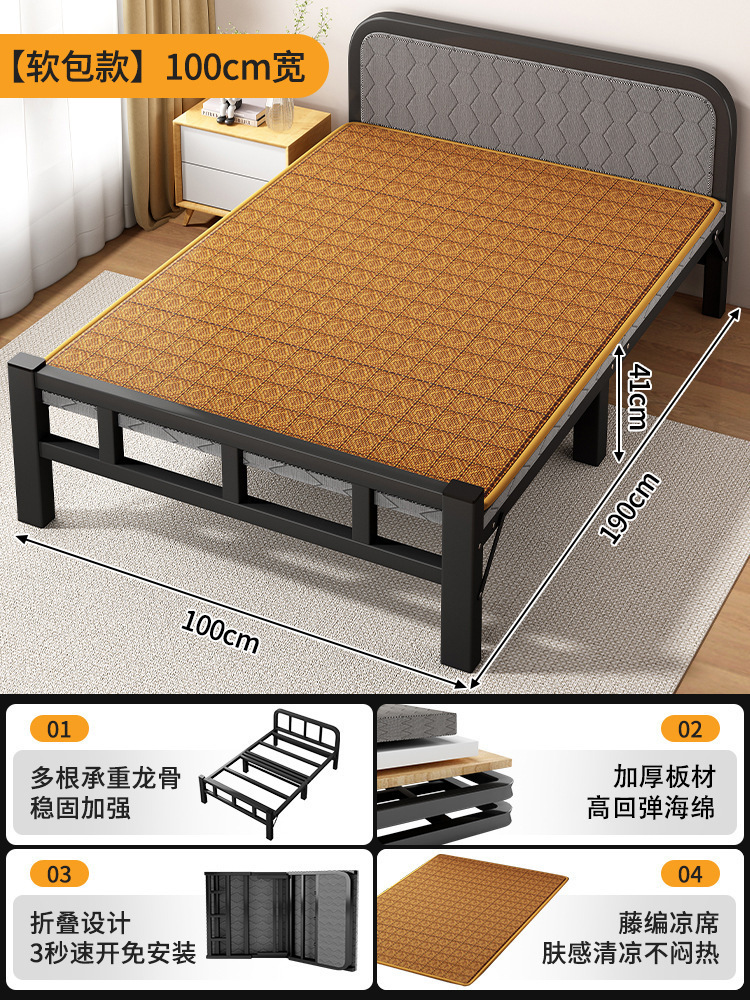 두꺼운 철제 침대 학교 기숙사 싱글 철제 프레임 침대 점심 시간 접이식 임대 주택 철제 침대 도매스토어 가기