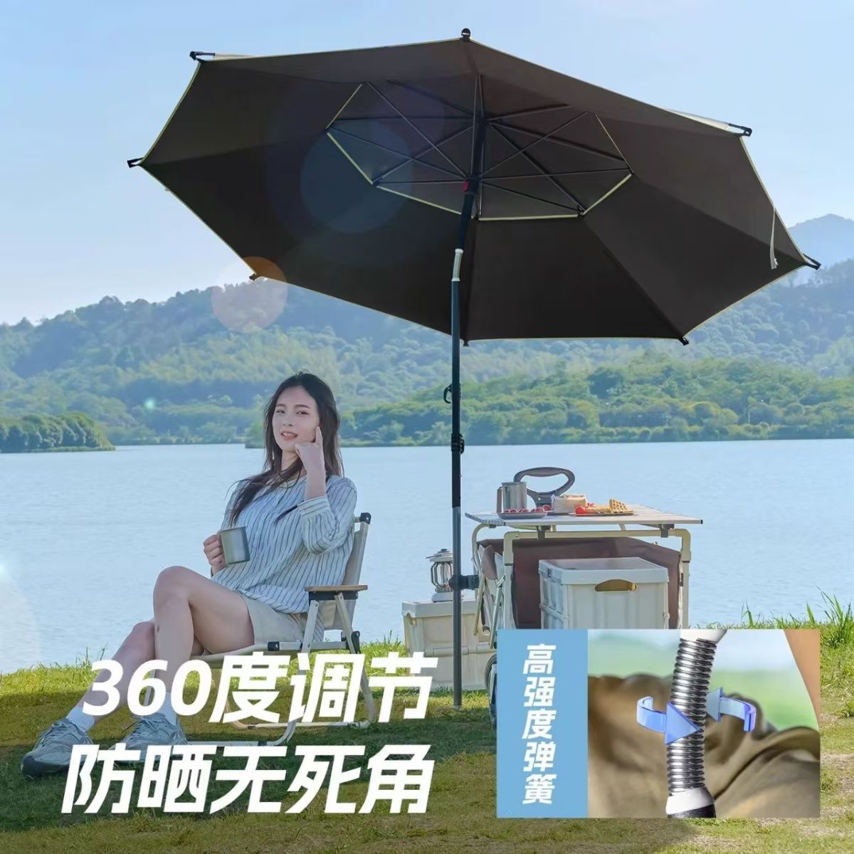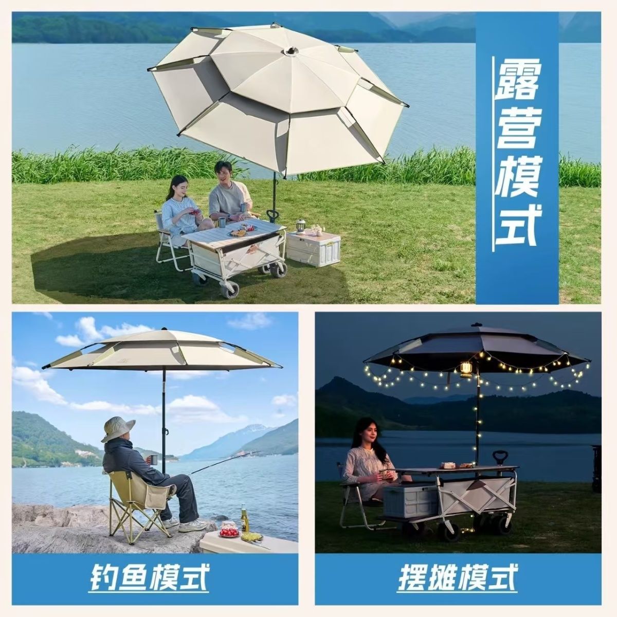 야외 매점 트롤리, 자외선 차단 우산, 캠핑 편리 특수 태양 우산, 범용 이중층 낚시 우산스토어 가기