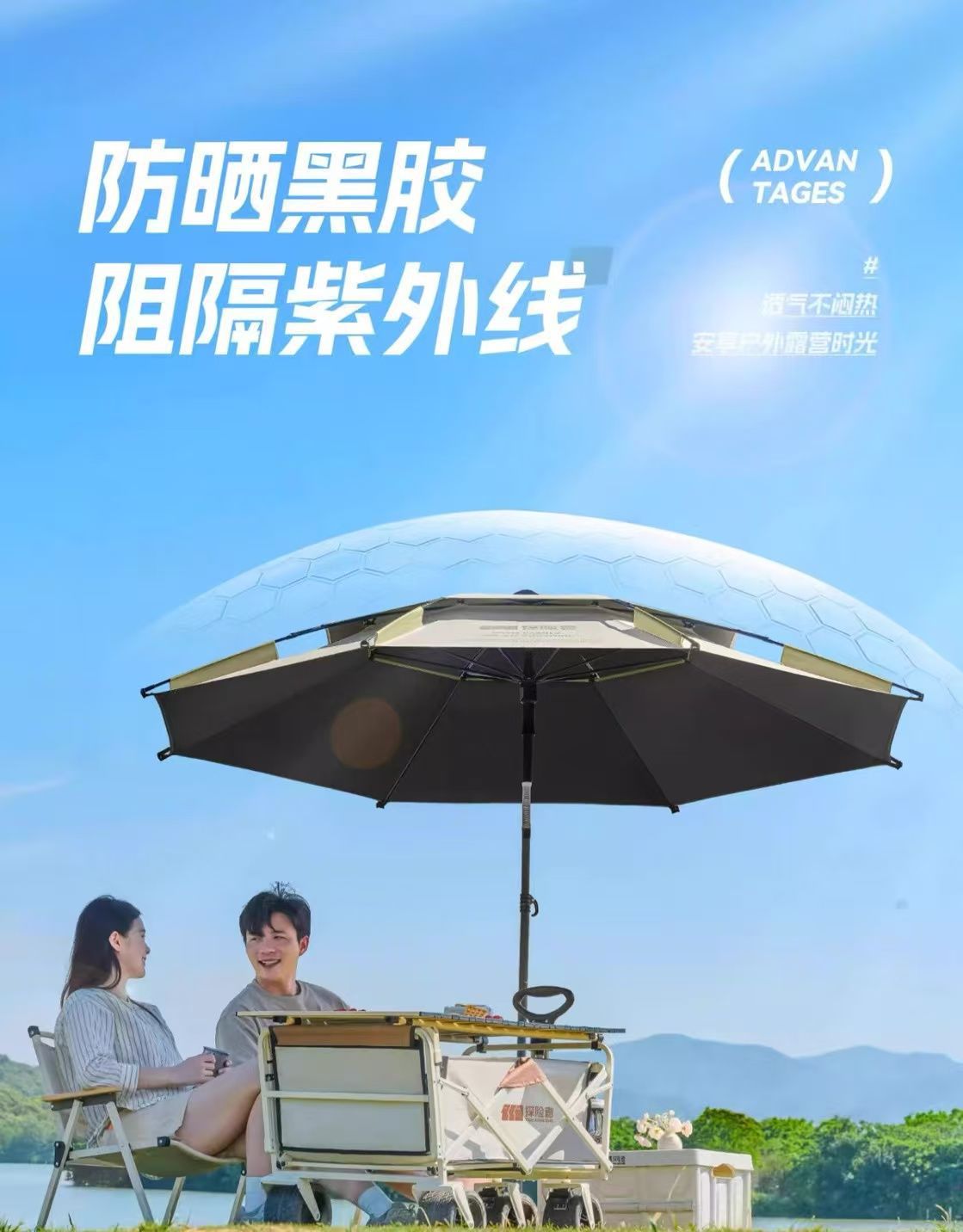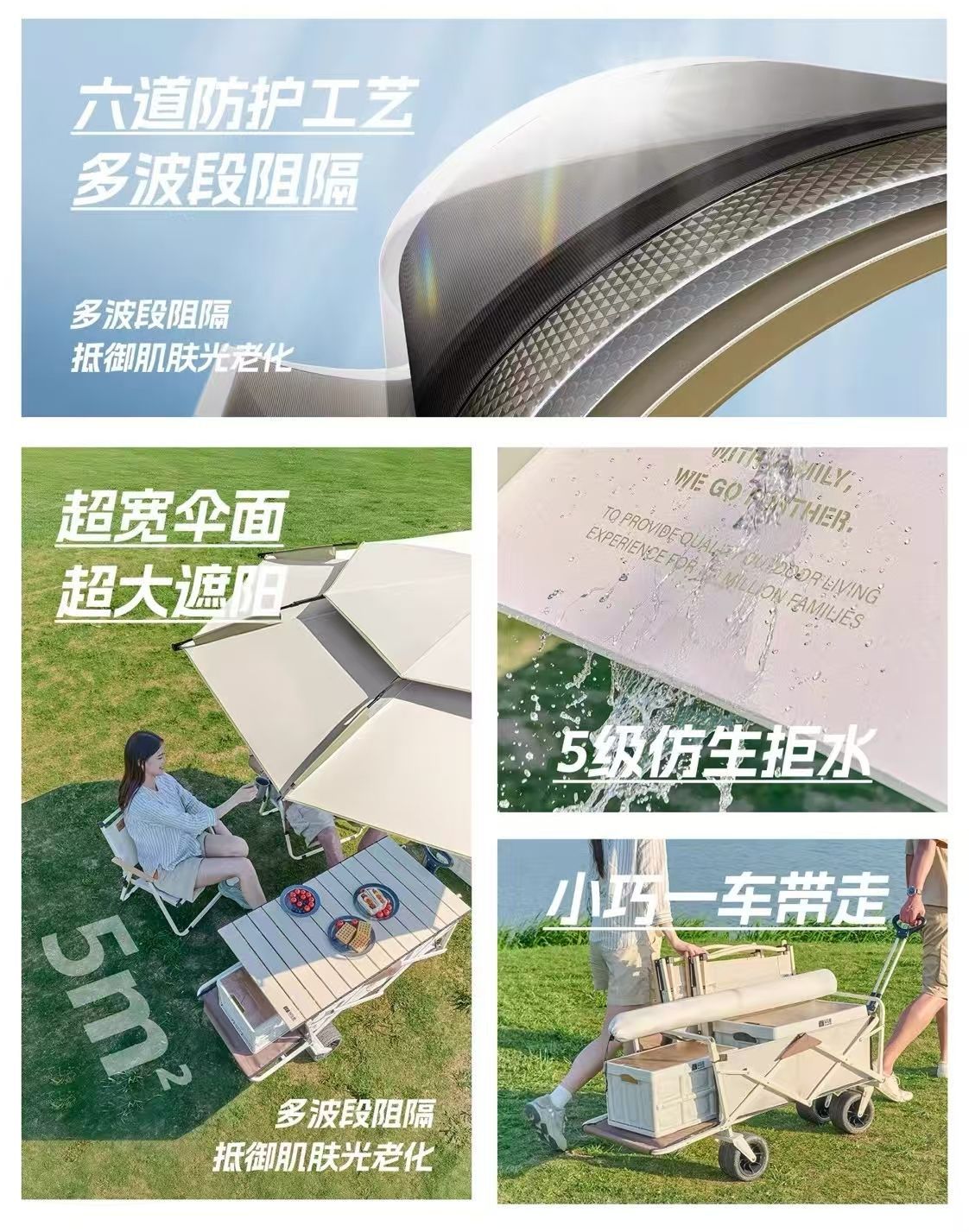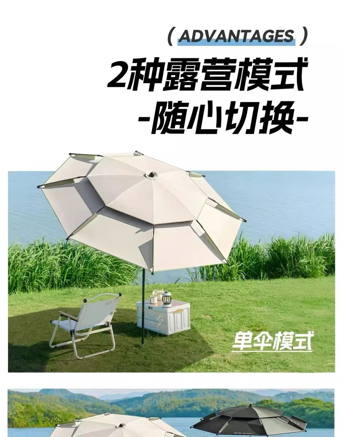 야외 매점 트롤리, 자외선 차단 우산, 캠핑 편리 특수 태양 우산, 범용 이중층 낚시 우산