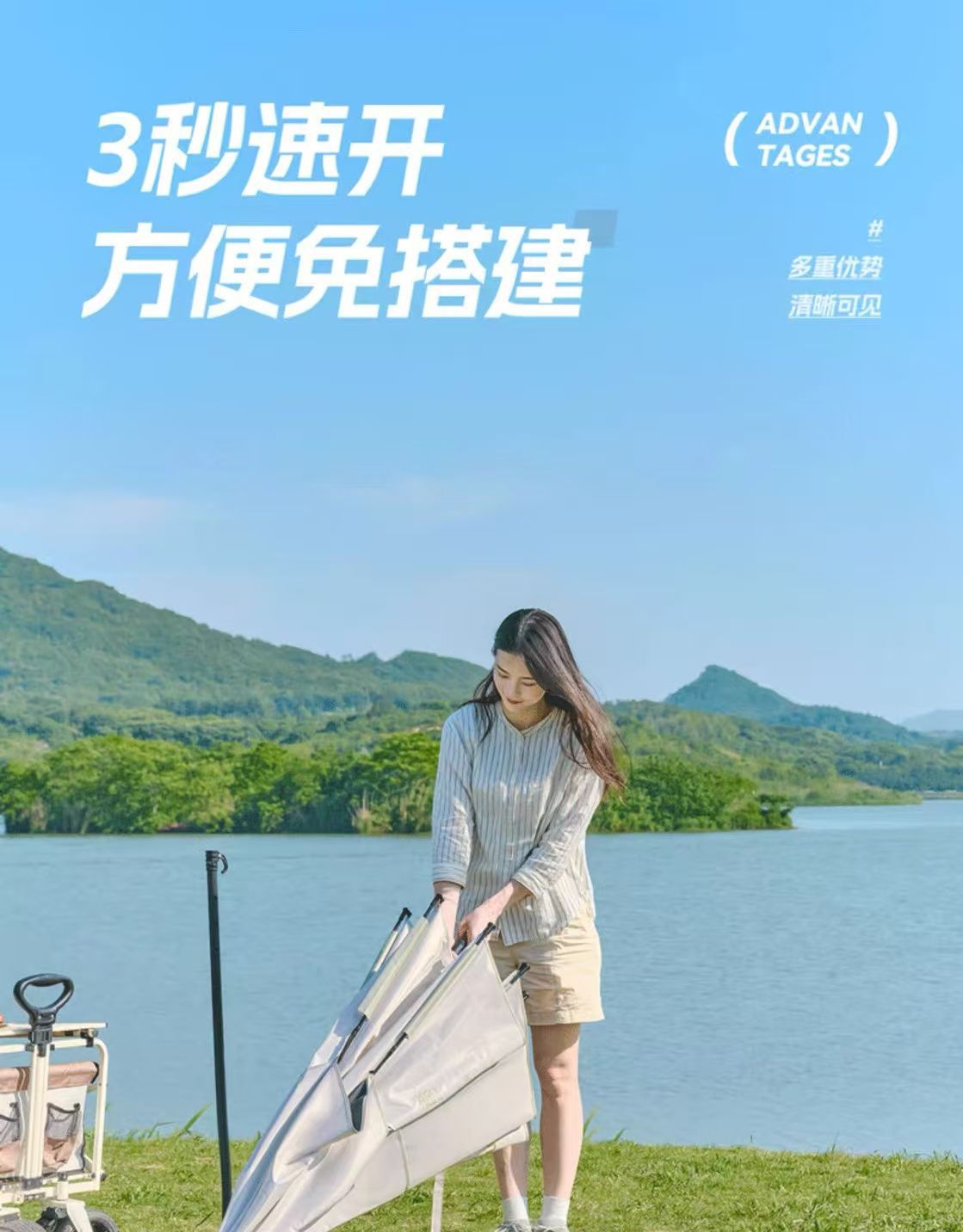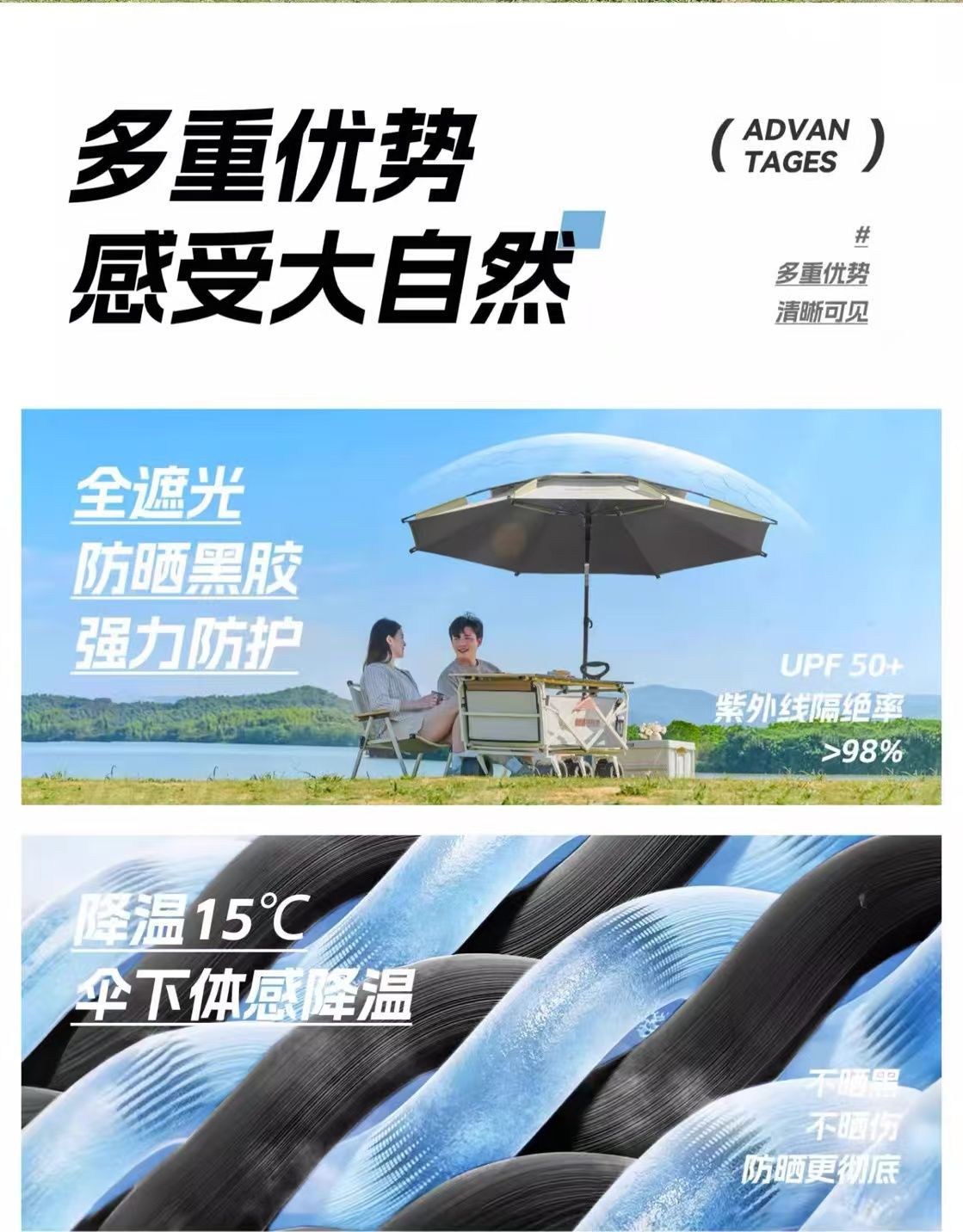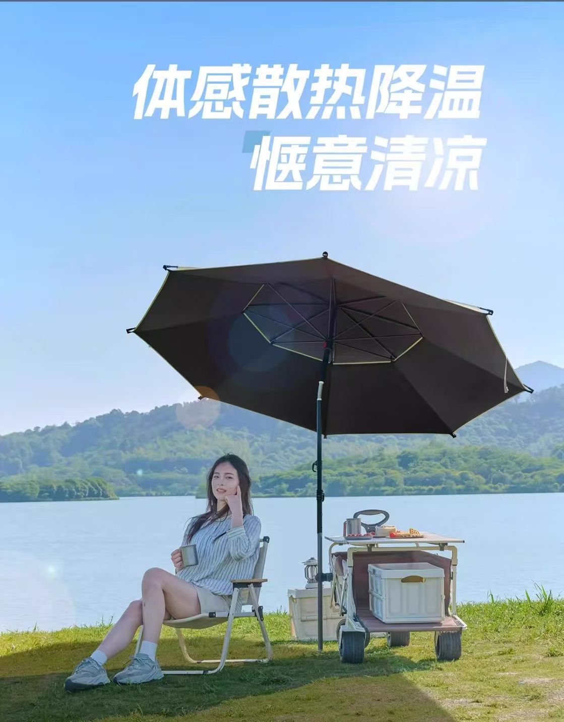 야외 매점 트롤리, 자외선 차단 우산, 캠핑 편리 특수 태양 우산, 범용 이중층 낚시 우산
