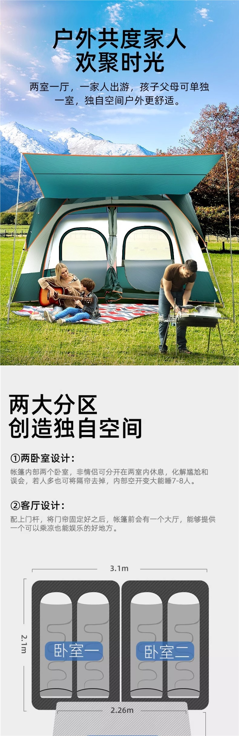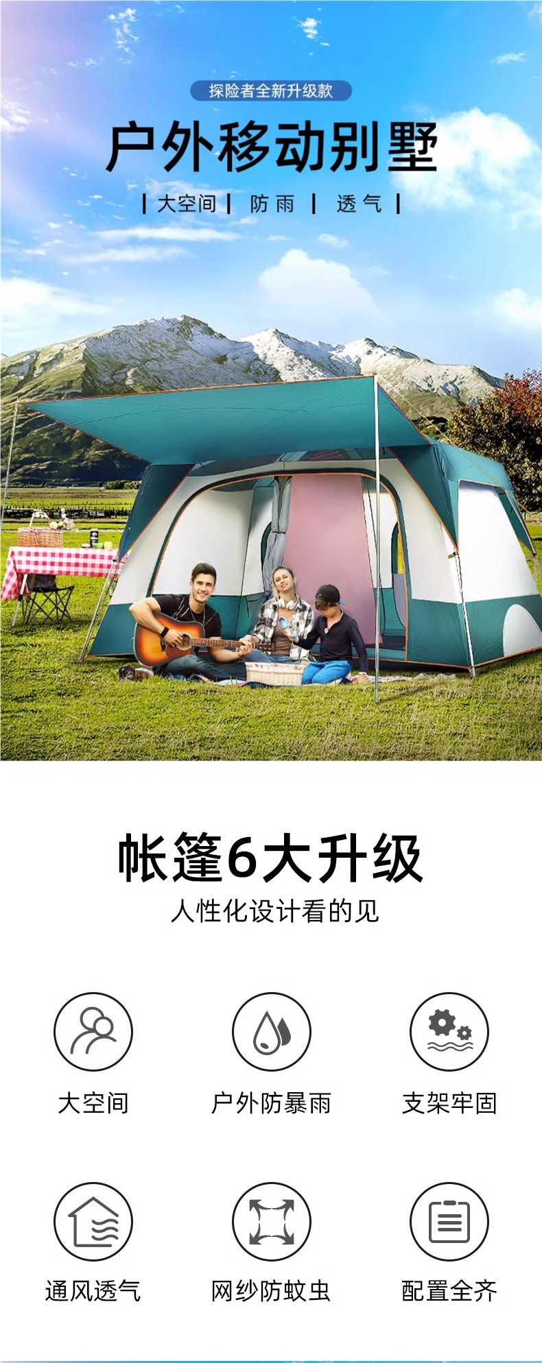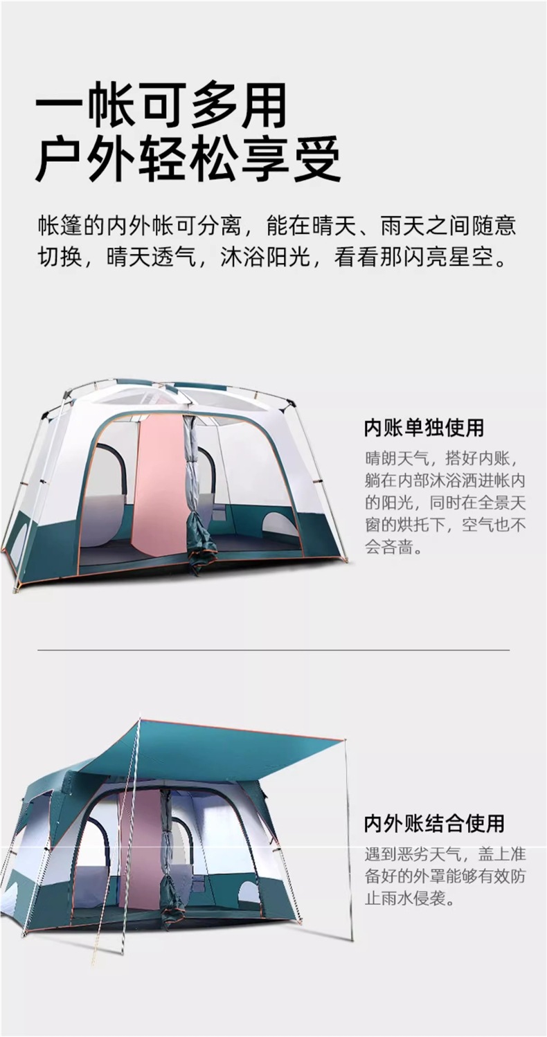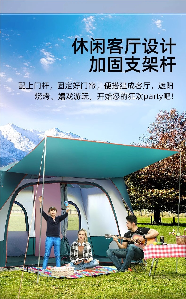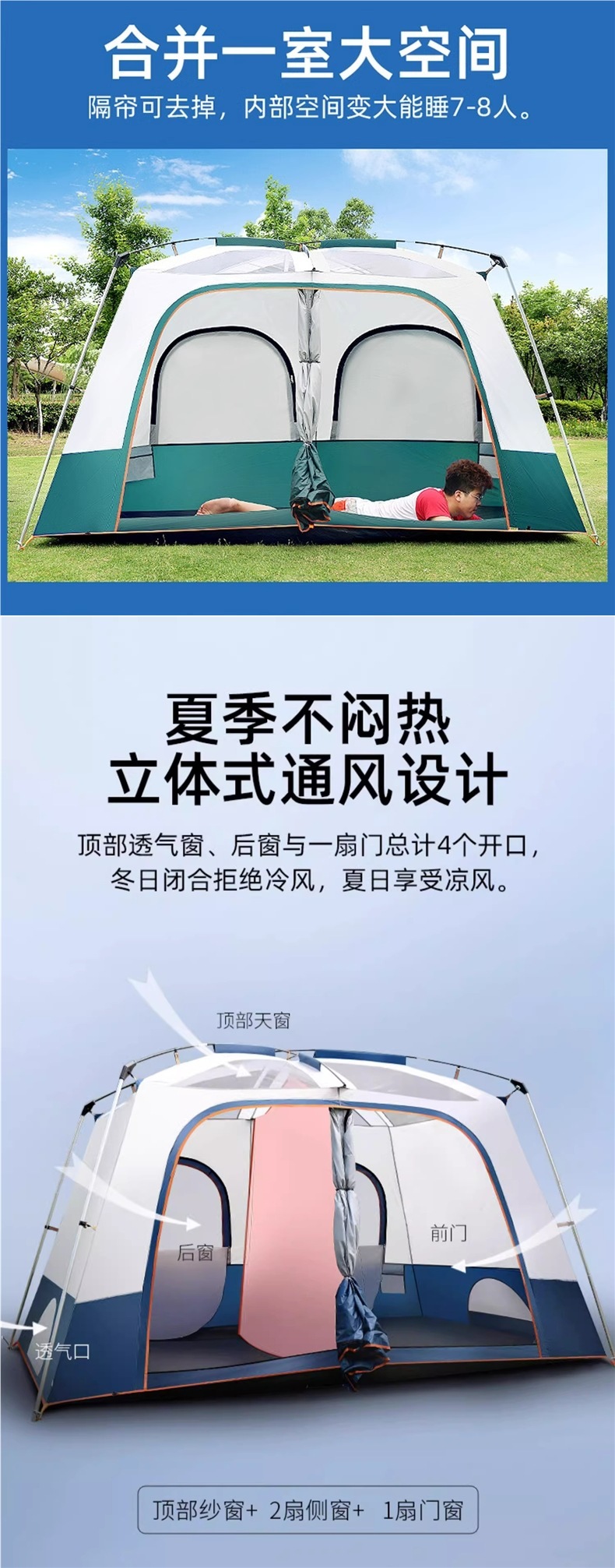 모험 텐트 야외 2실 1거실 두꺼운 방수 캠핑 캠핑 장비 용품 알루미늄 합금 텐트 폴스토어 가기