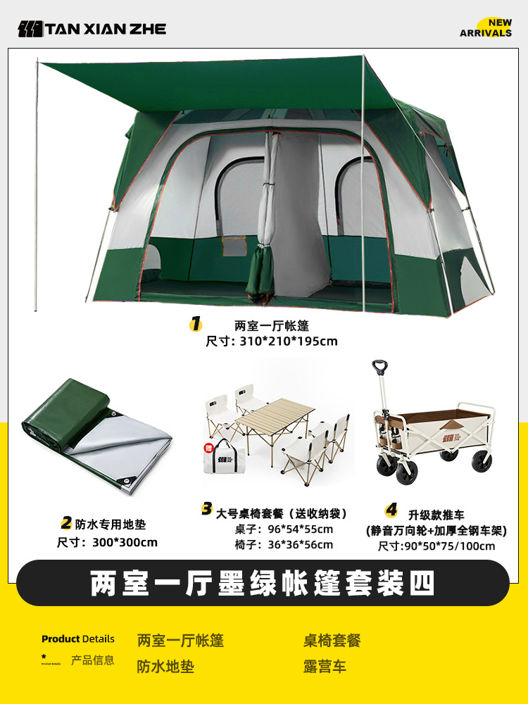• 침실 2개와 거실 1개 짙은 녹색 텐트 세트 4개