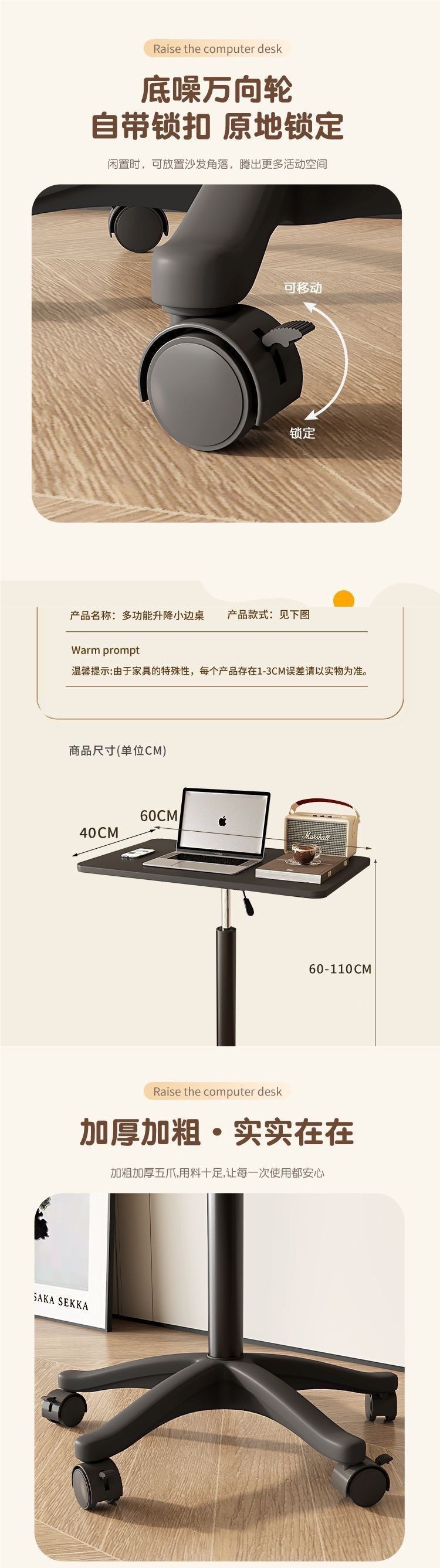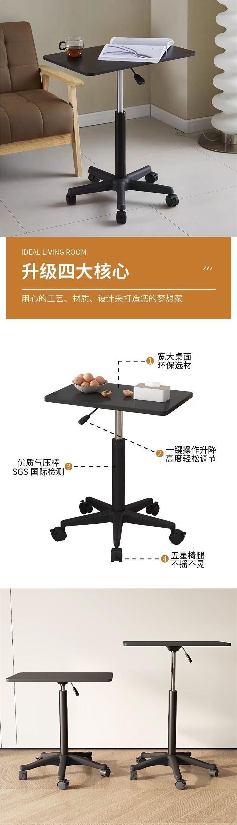컴퓨터 테이블 이동식 리프팅 테이블 작업대 스탠딩 소형 리프팅 테이블 노트북 침대 옆 컴퓨터 테이블 국경 간스토어 가기