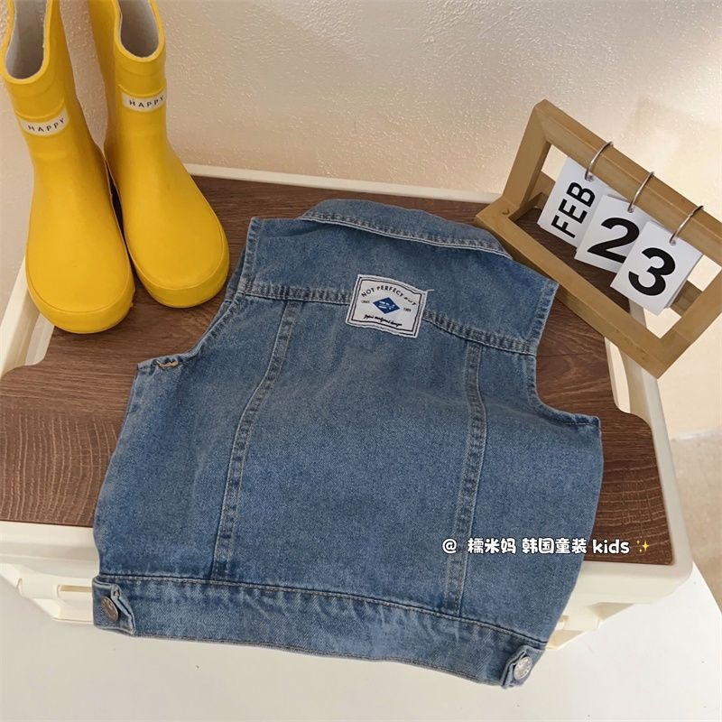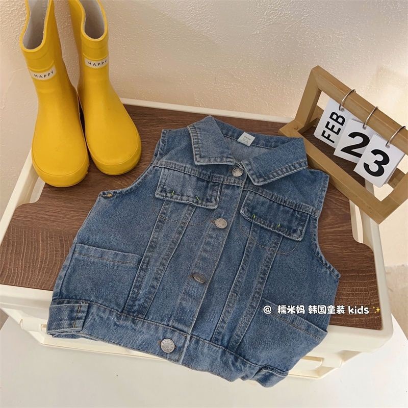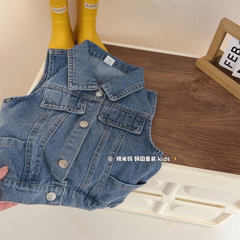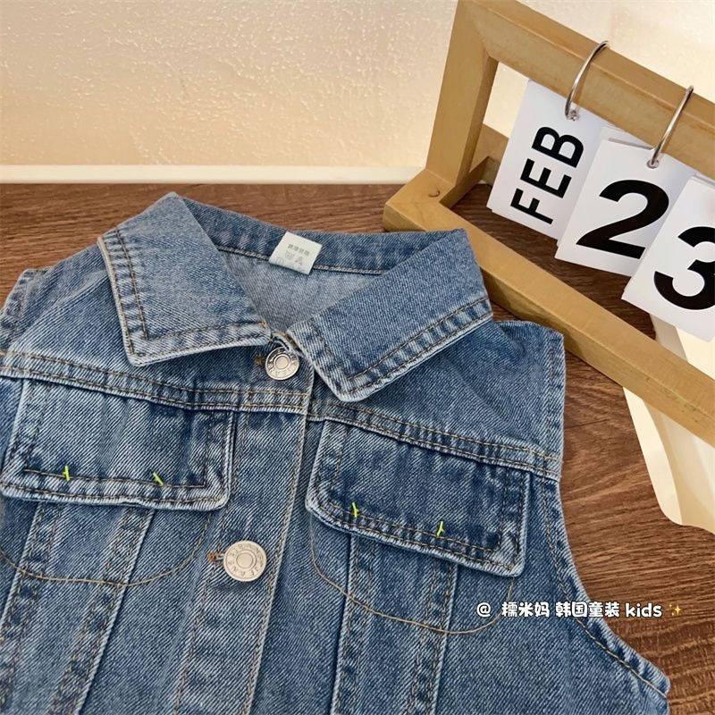 어린이 데님 조끼 2025 봄 베이비 캐주얼 조끼 학교 유니폼 재킷 어린이 다용도 조끼 트렌디 블루스토어 가기