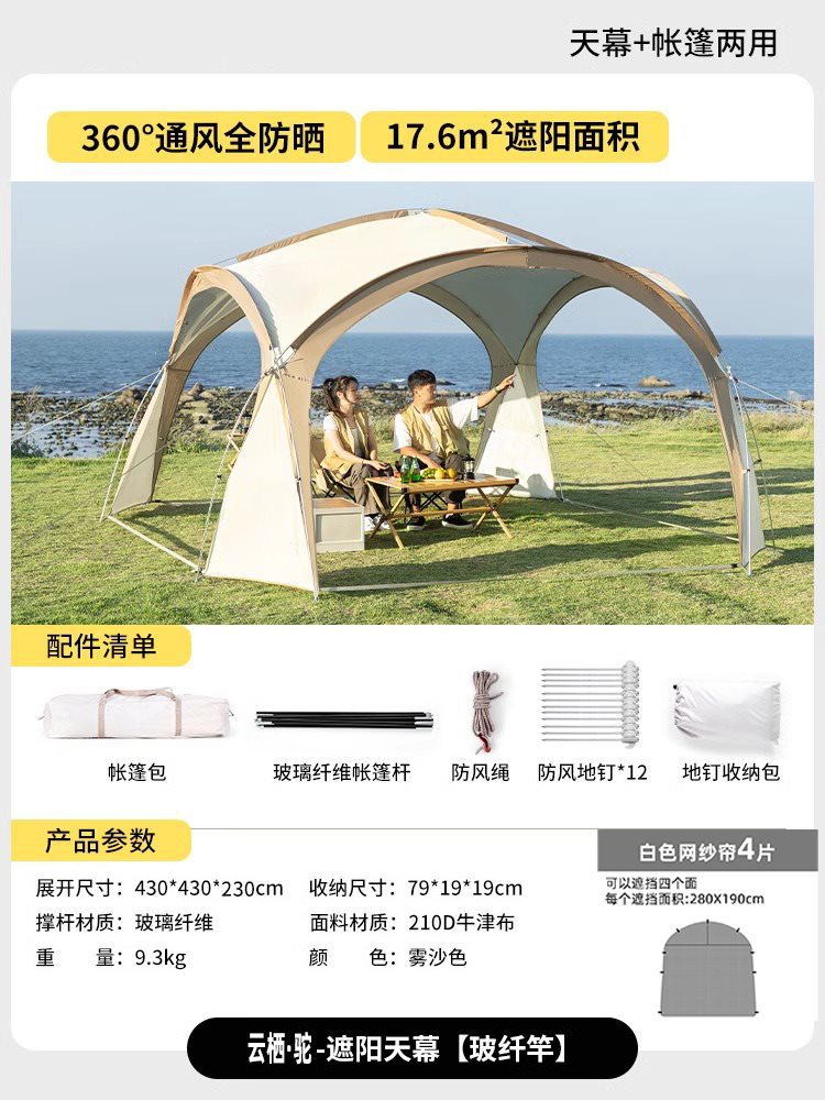 • Yunqi·Camel [단일 대형 캐노피 + 메쉬 커튼 4개] 사방 환기 및 모기 방지