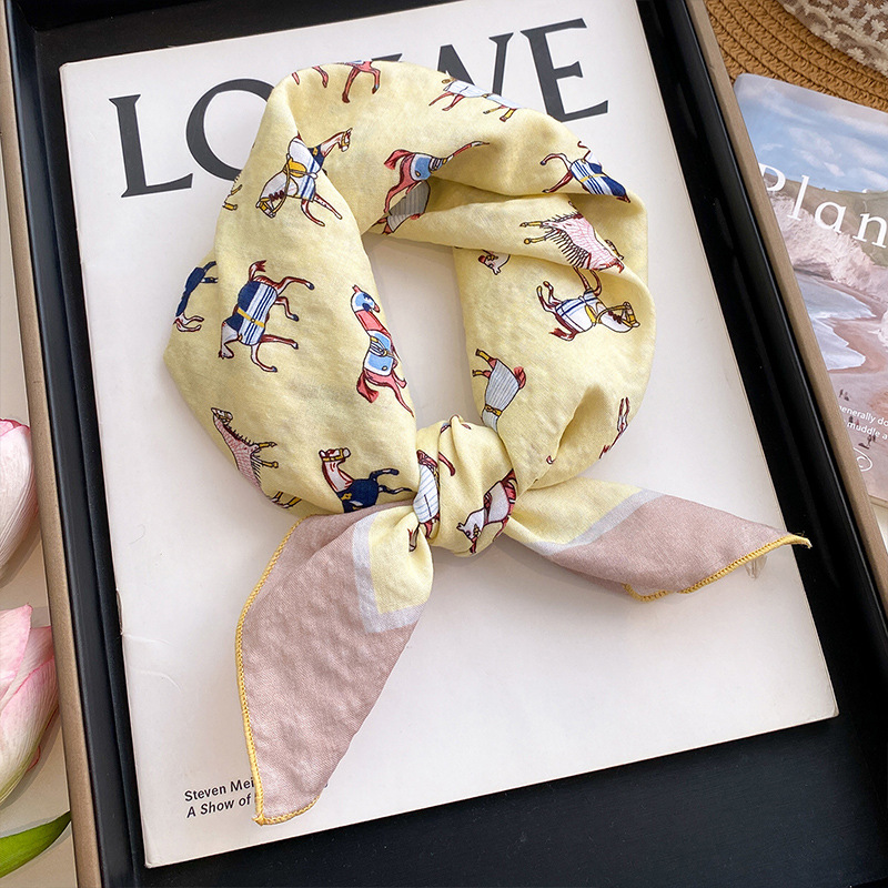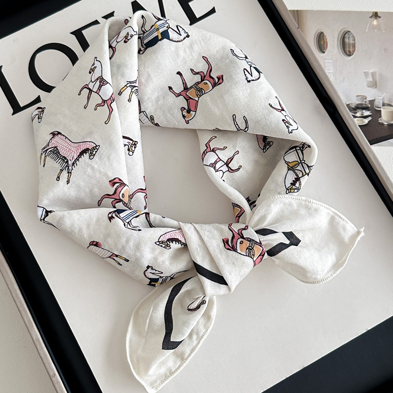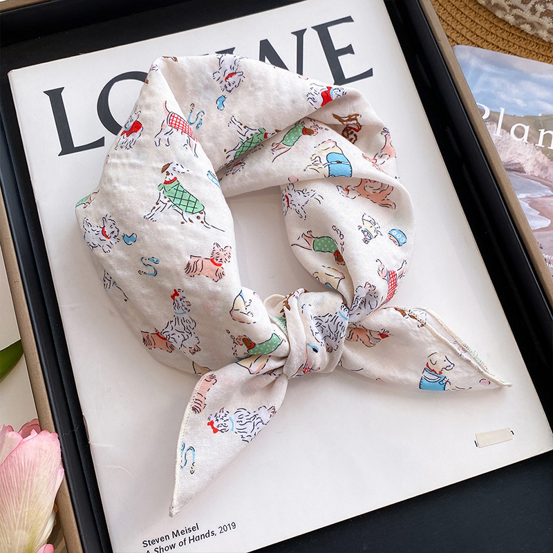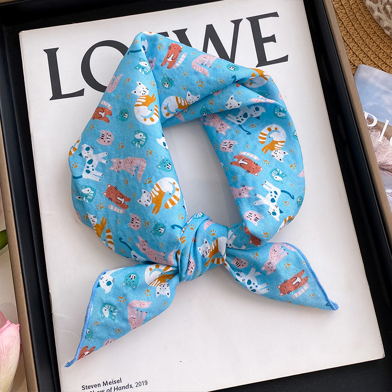 60일 만화 어린이 베이비 면 및 린넨 머리띠 스카프 남성과 여성을위한 작은 사각형 스카프 봄, 가을 허리 스카프 스카프 머리 스카프