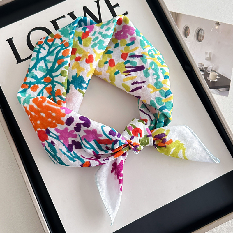 60일 만화 어린이 베이비 면 및 린넨 머리띠 스카프 남성과 여성을위한 작은 사각형 스카프 봄, 가을 허리 스카프 스카프 머리 스카프스토어 가기