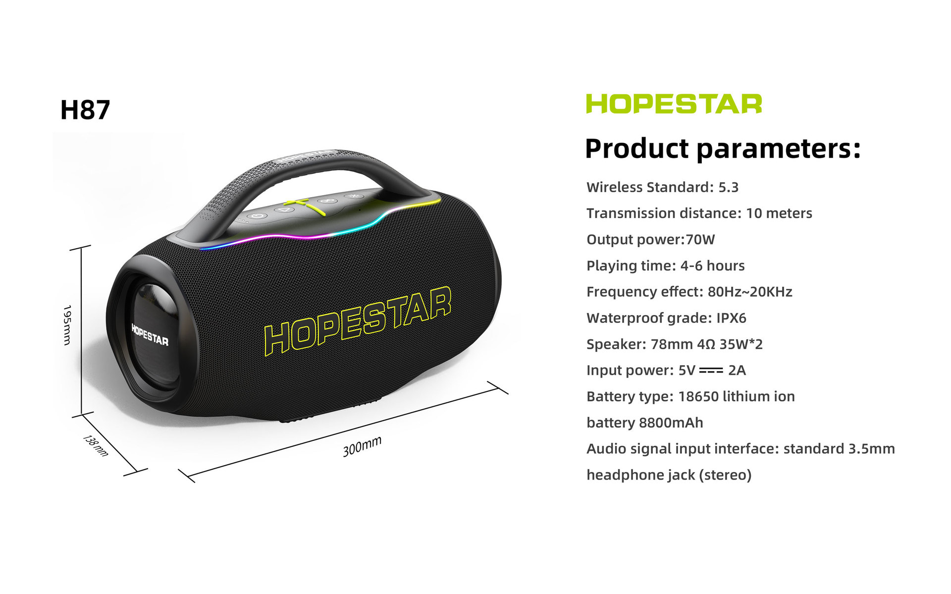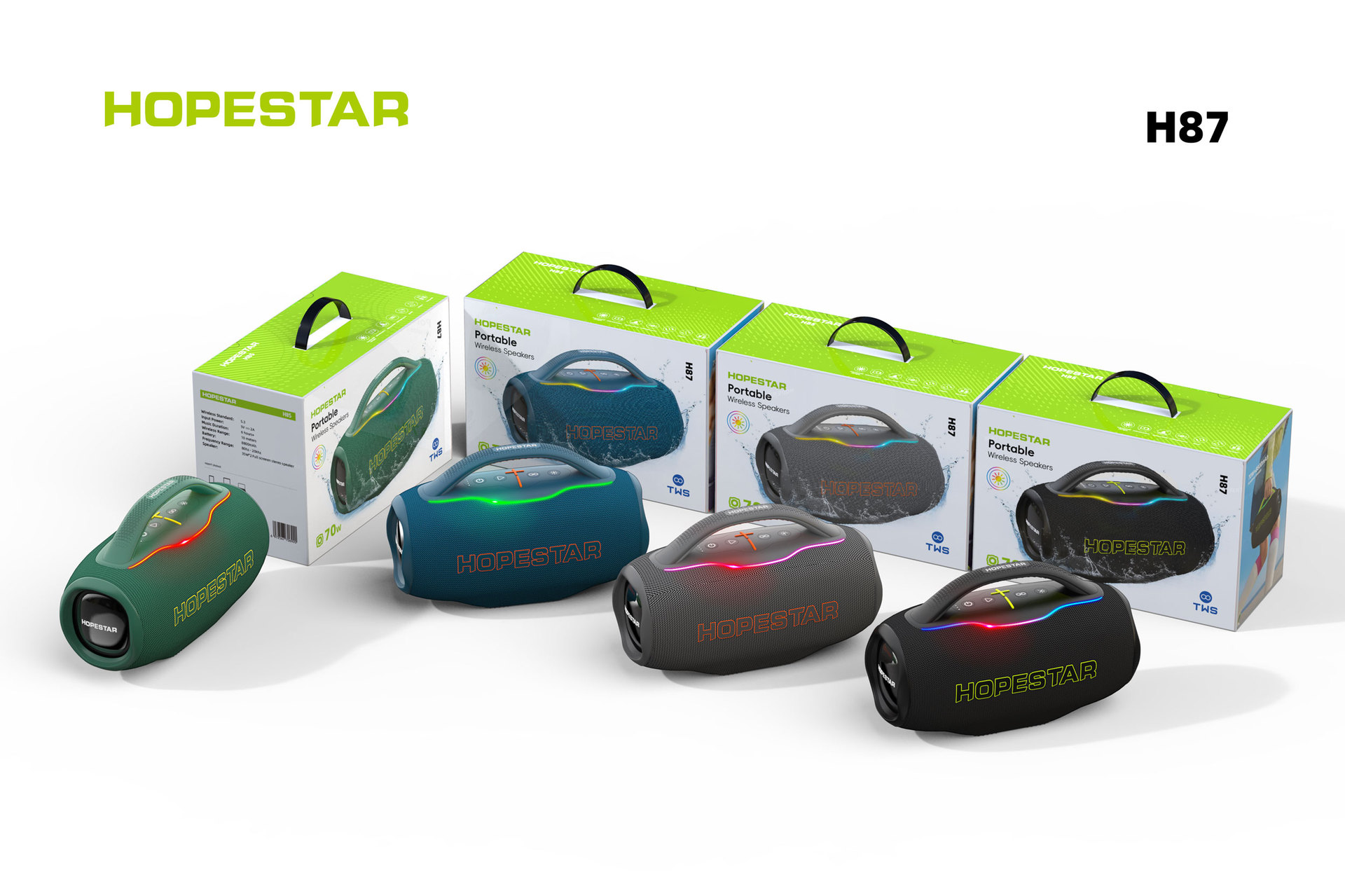 HOPESTAR H87 휴대용 무선 블루투스 스피커 야외 방수 서브 우퍼 고출력 카드 오디오