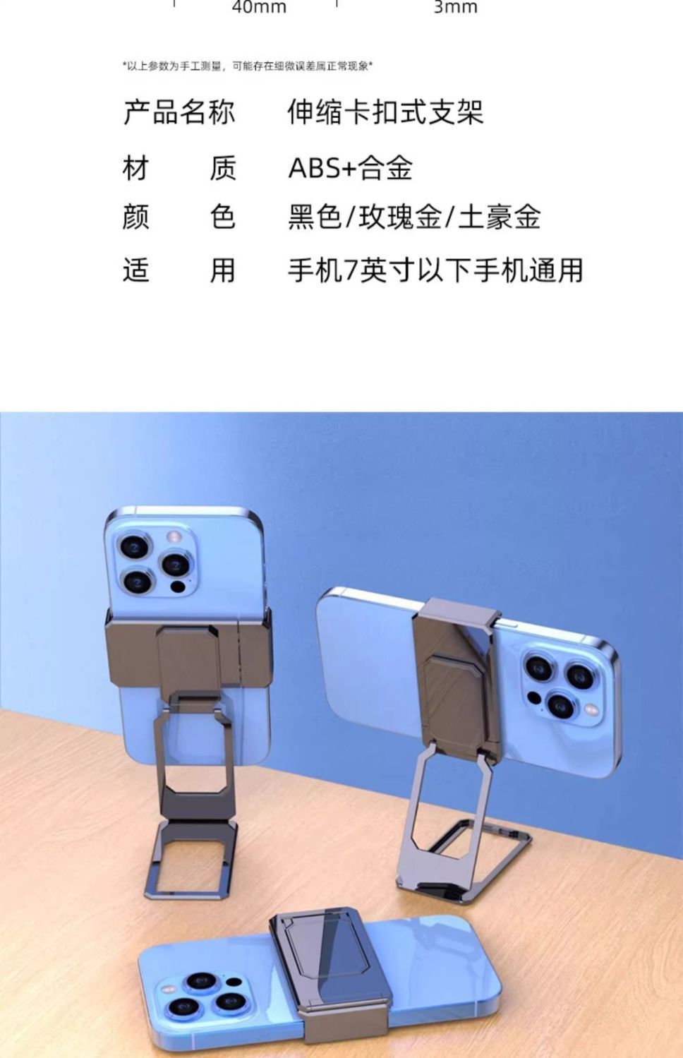 스냅온 금속 휴대폰 홀더 데스크탑 링 버클 백 클립 백 스티커 게으른 사람들을 위한 휴대용 접이식 지지대 다기능