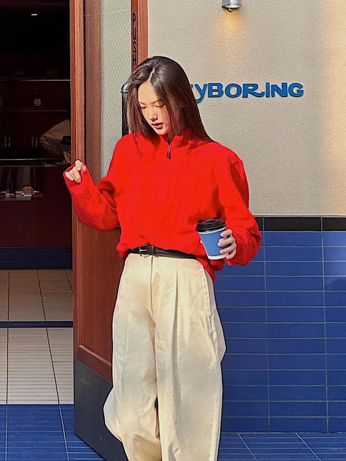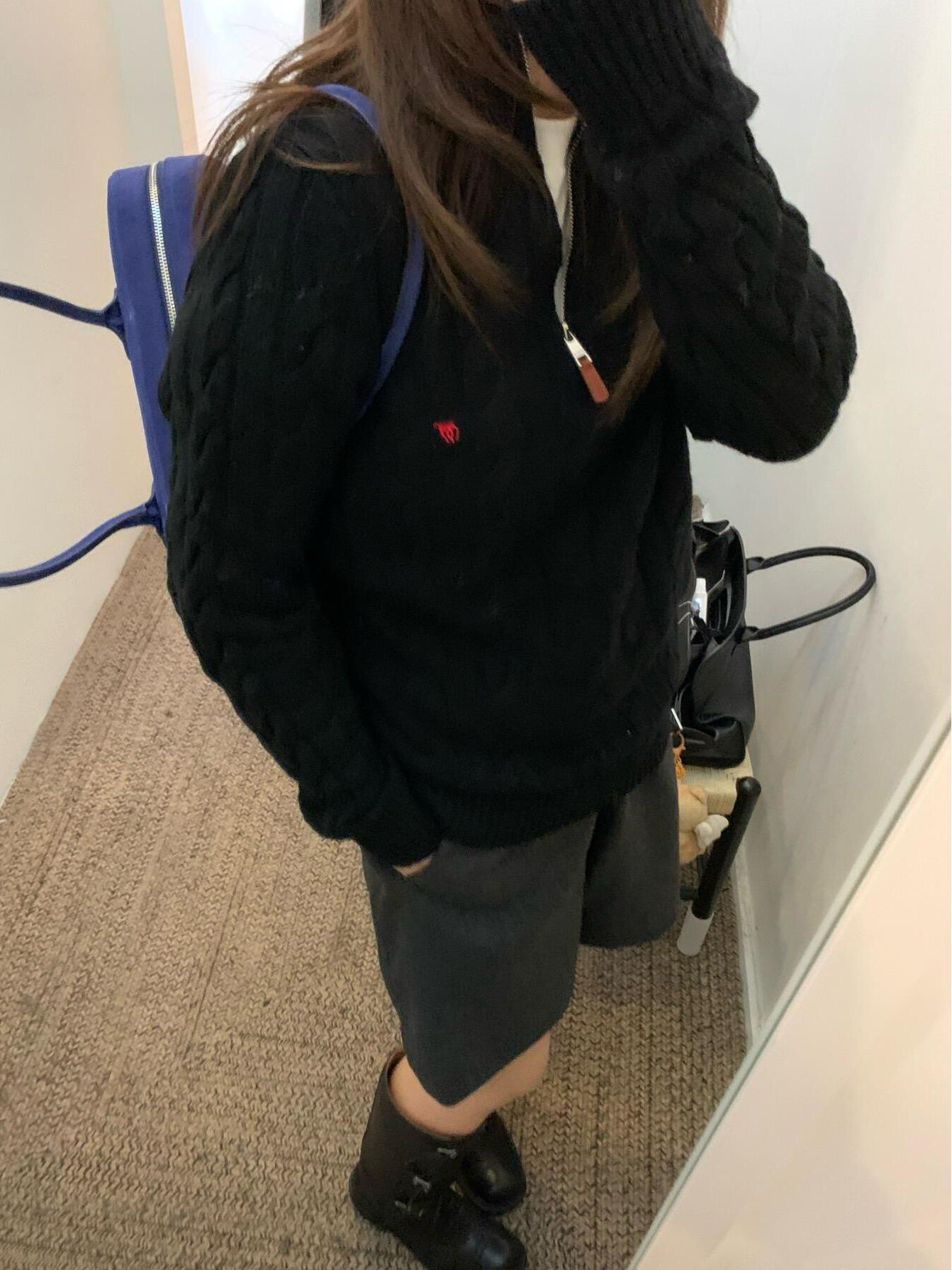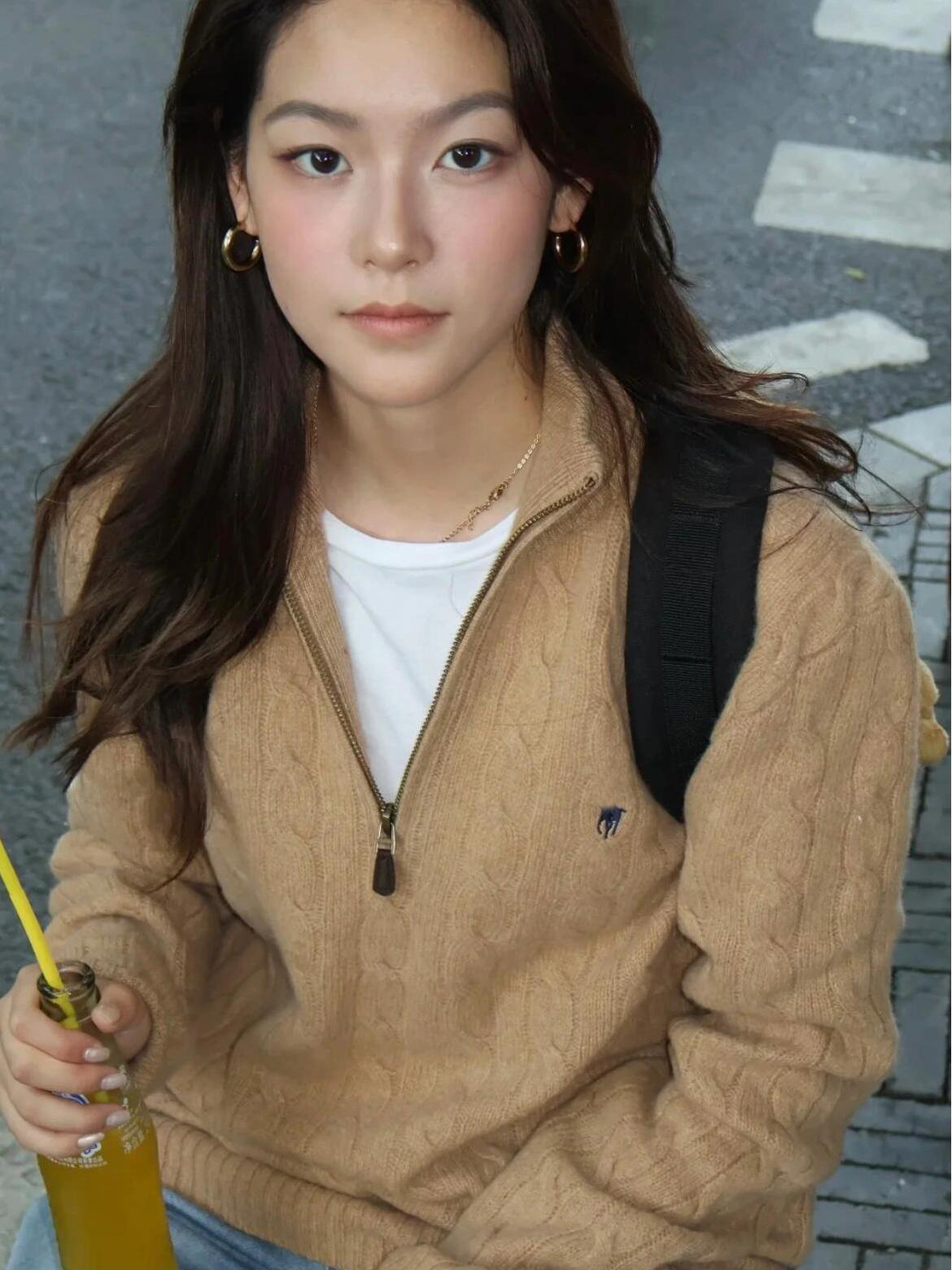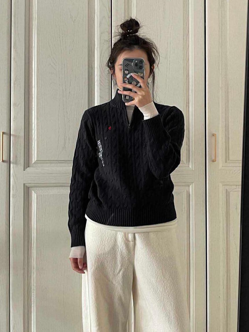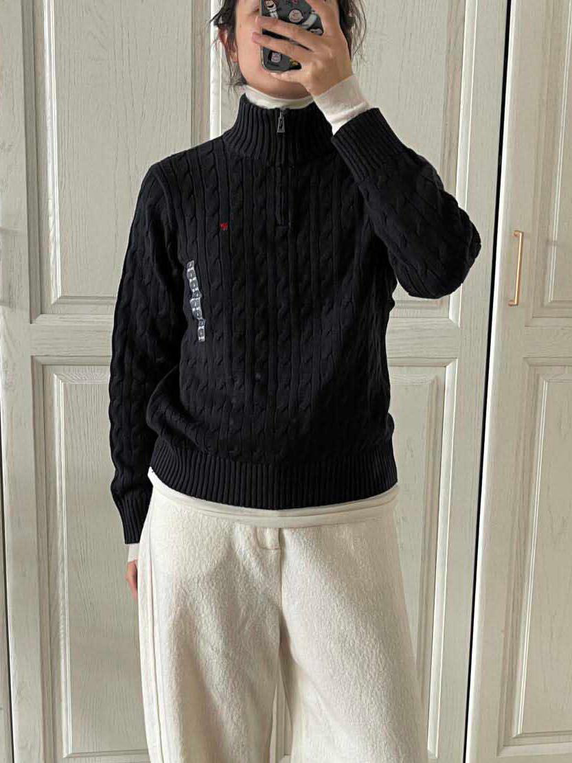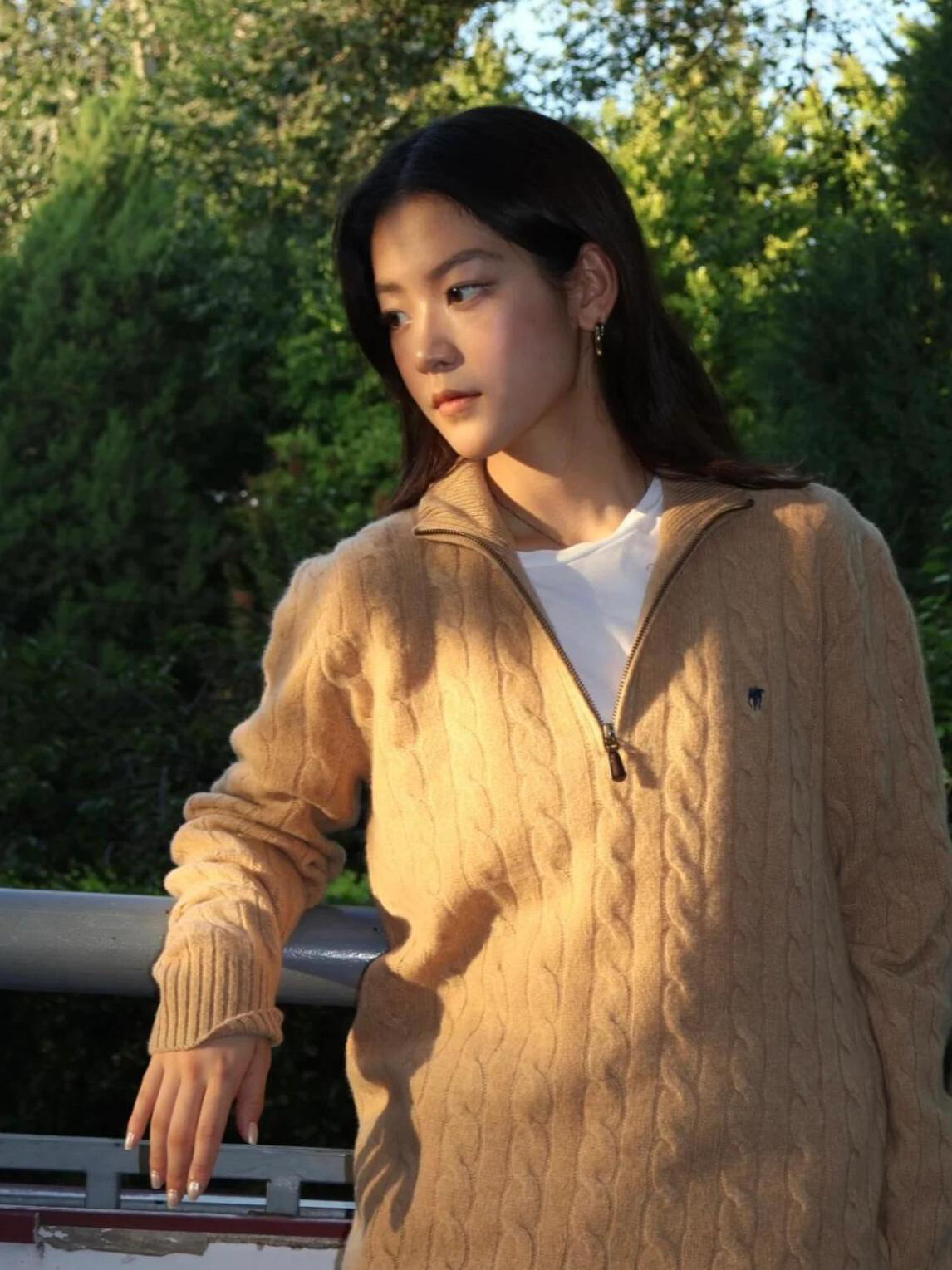 아메리칸 레트로 올드 머니 스타일 포니 가을 소녀 스타일 스탠드 칼라 하프 지퍼 스웨터 트위스트 탑 커플 스웨터스토어 가기