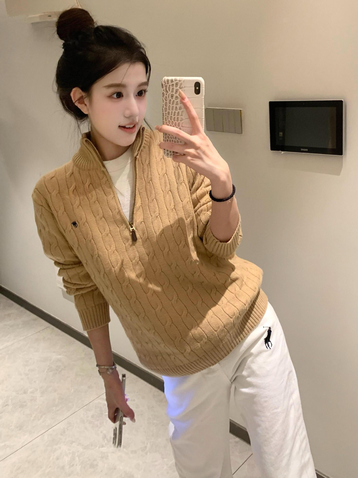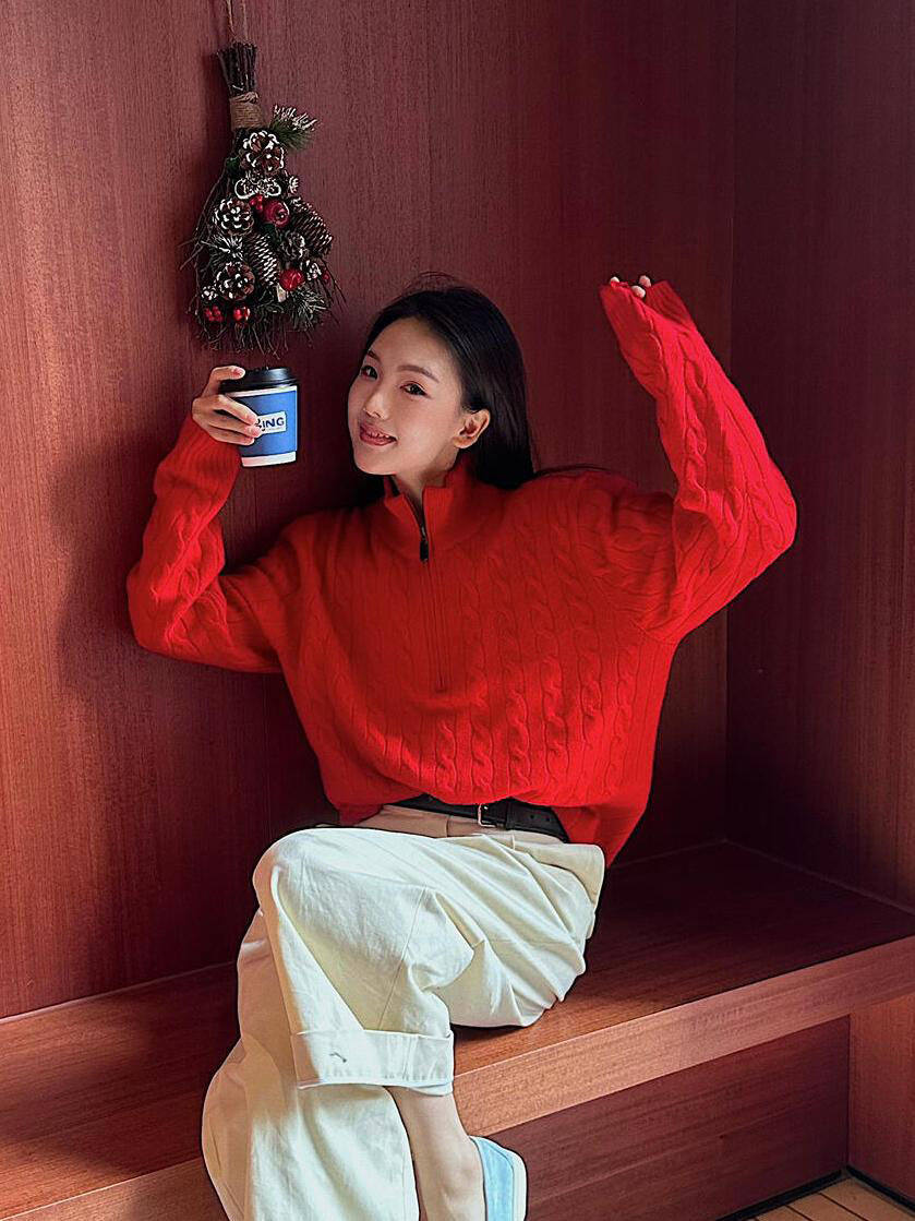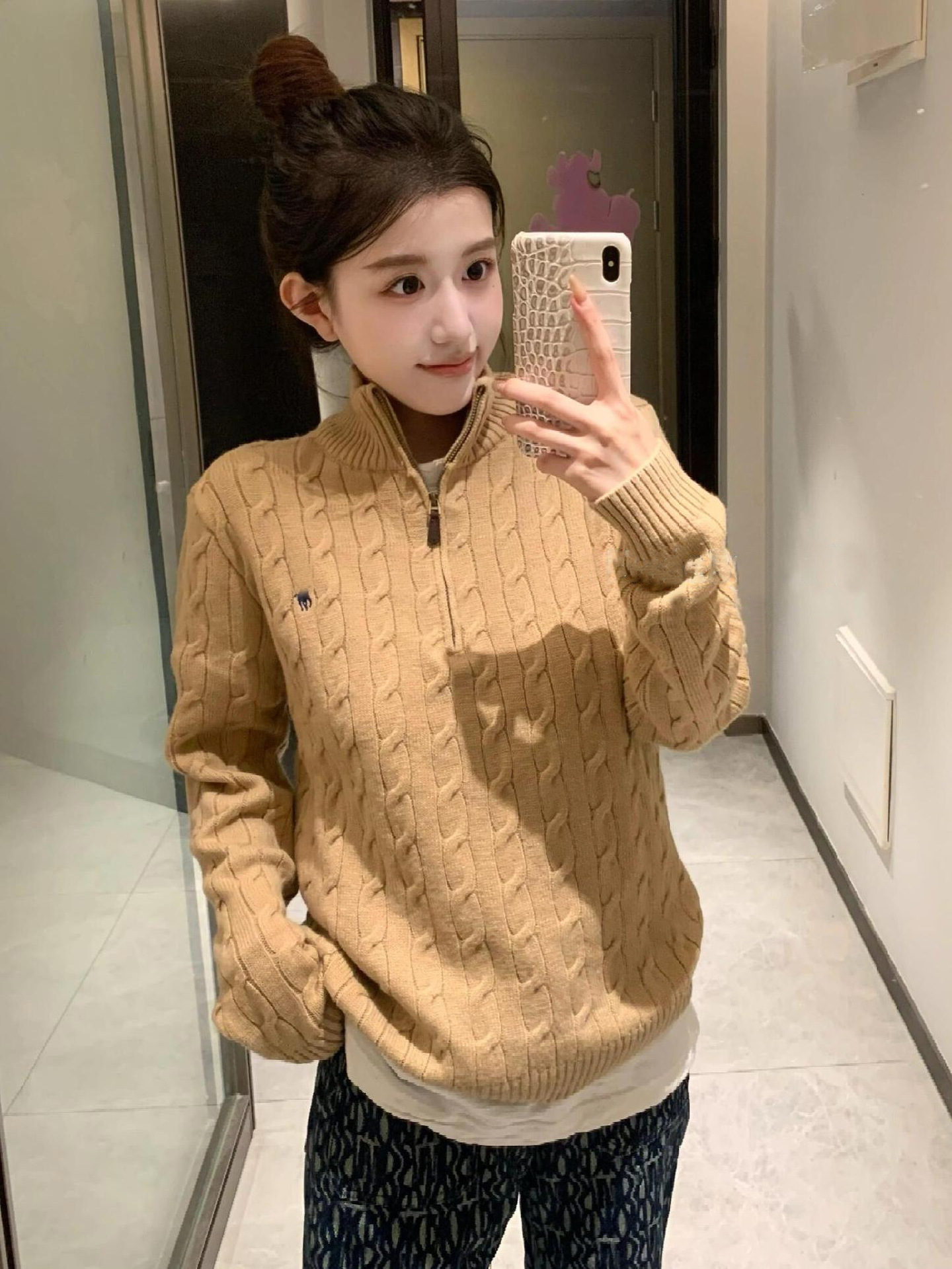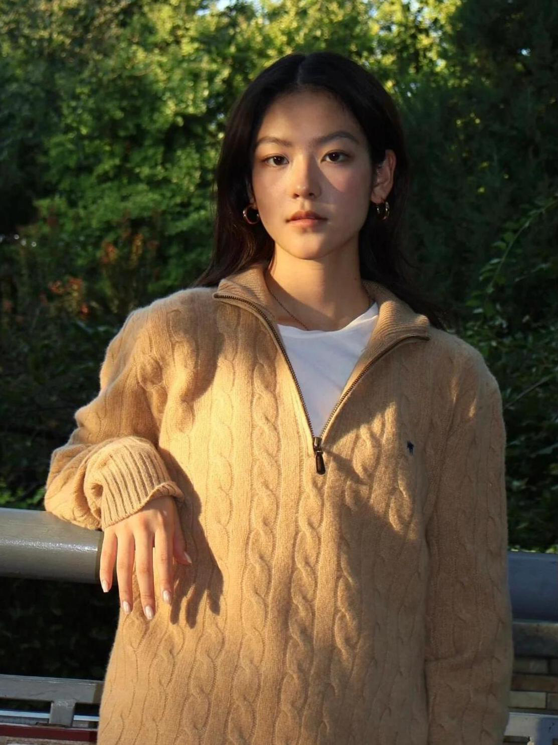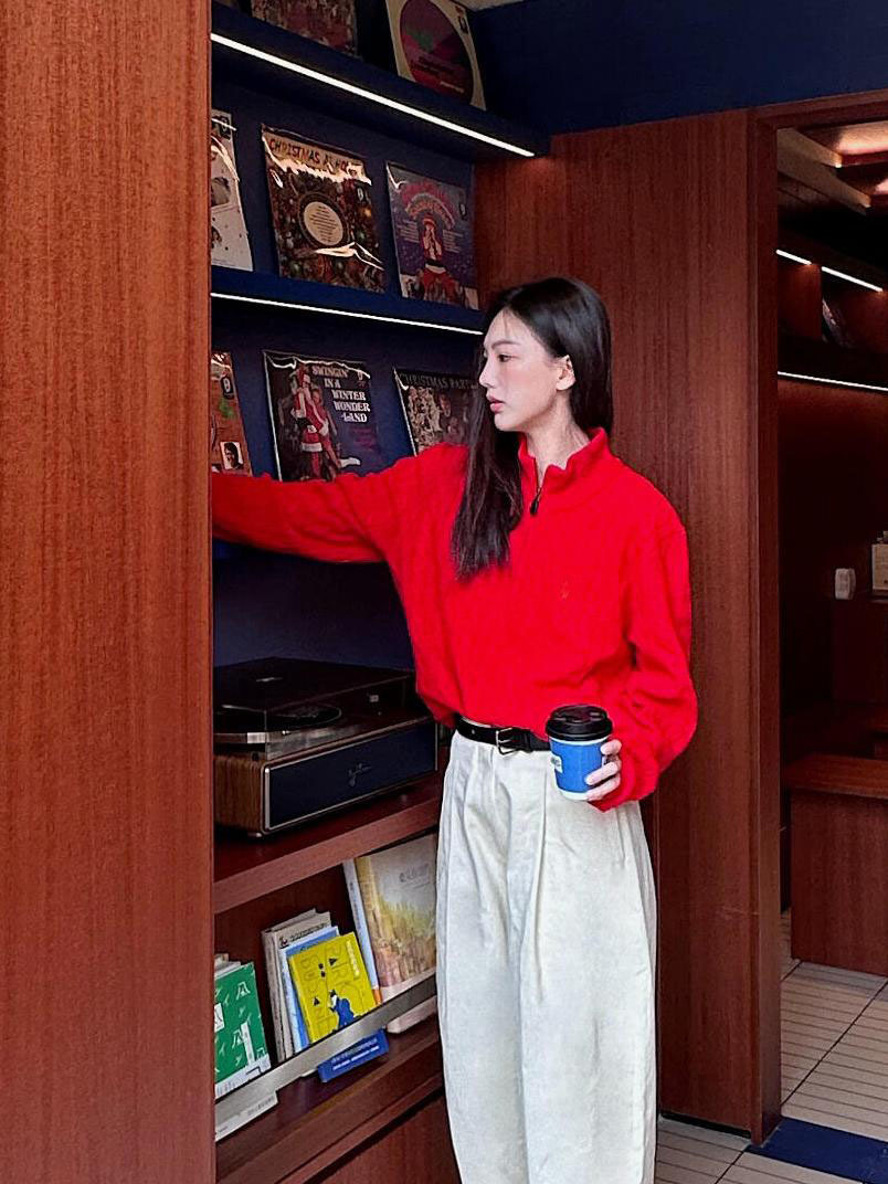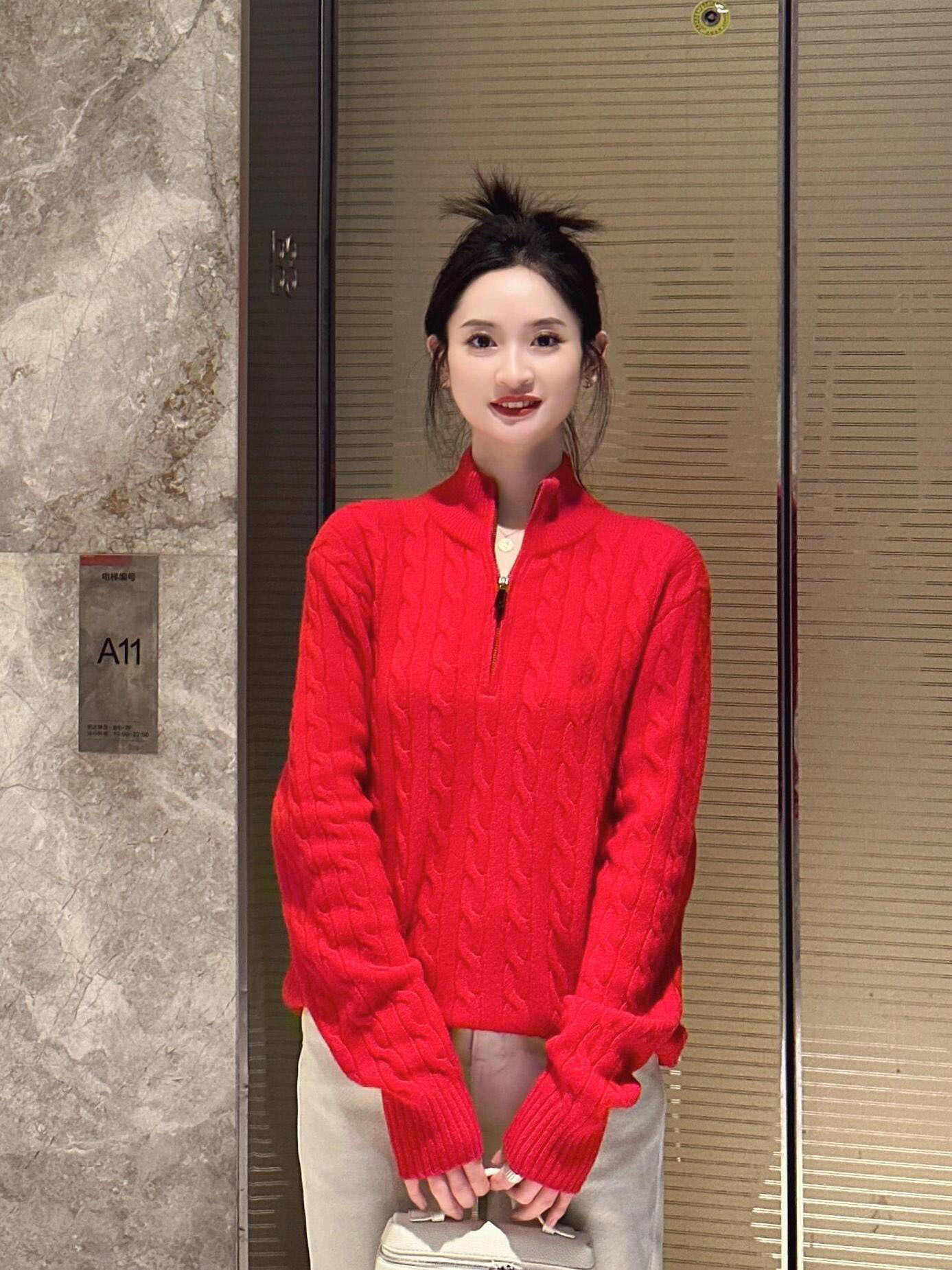 아메리칸 레트로 올드 머니 스타일 포니 가을 소녀 스타일 스탠드 칼라 하프 지퍼 스웨터 트위스트 탑 커플 스웨터스토어 가기