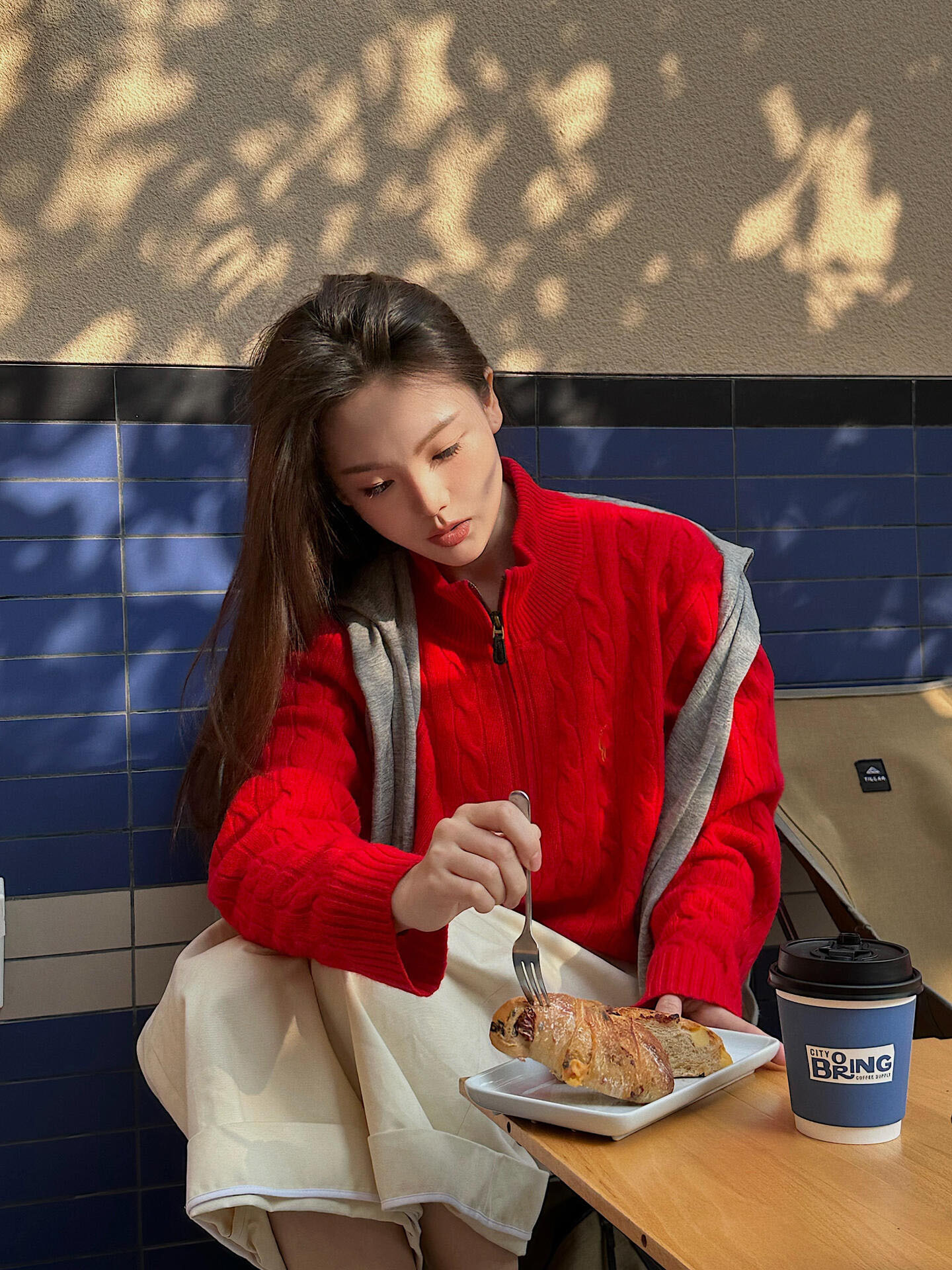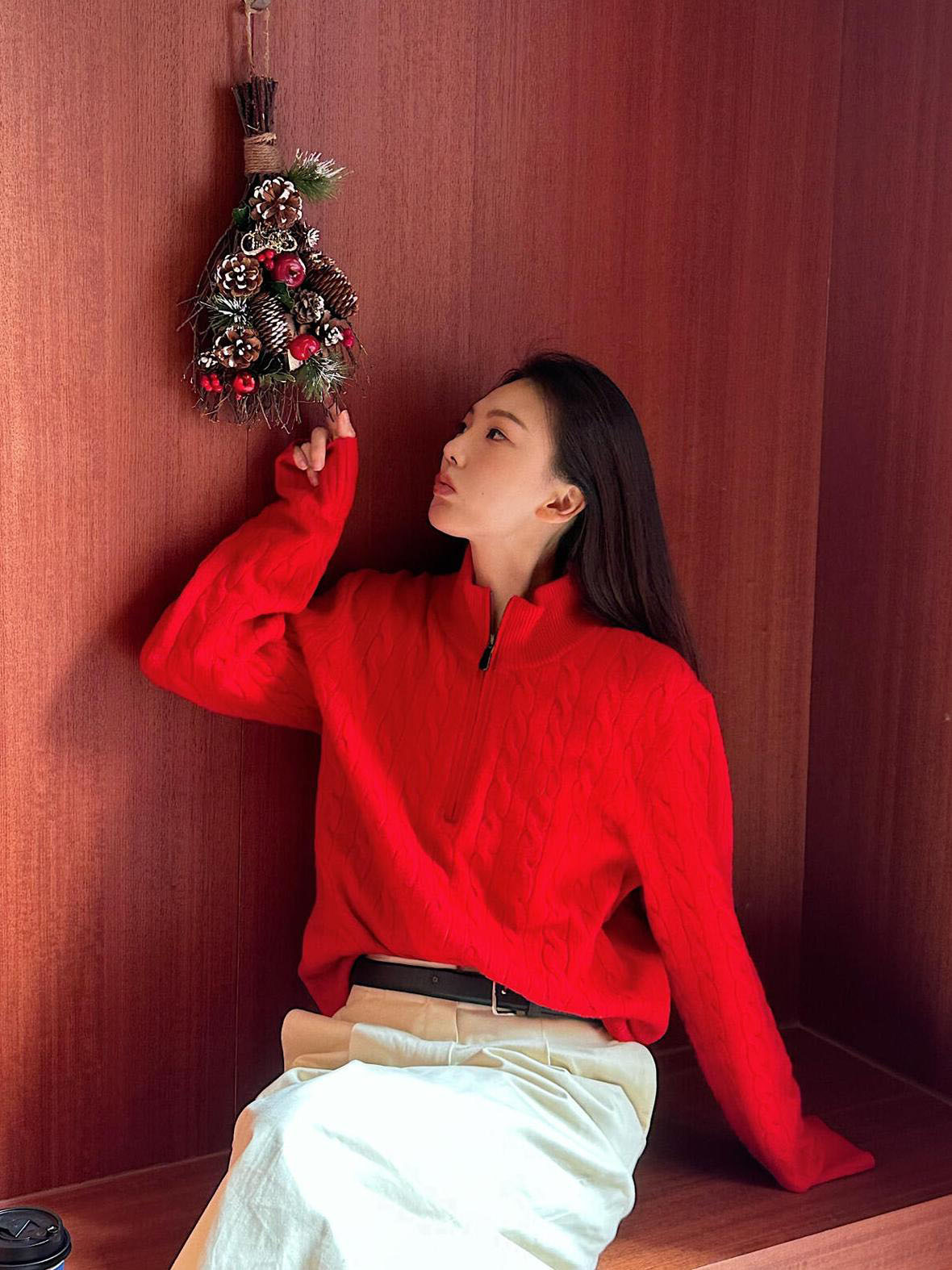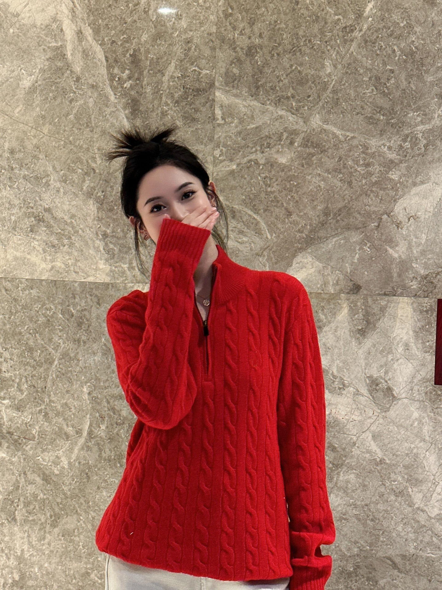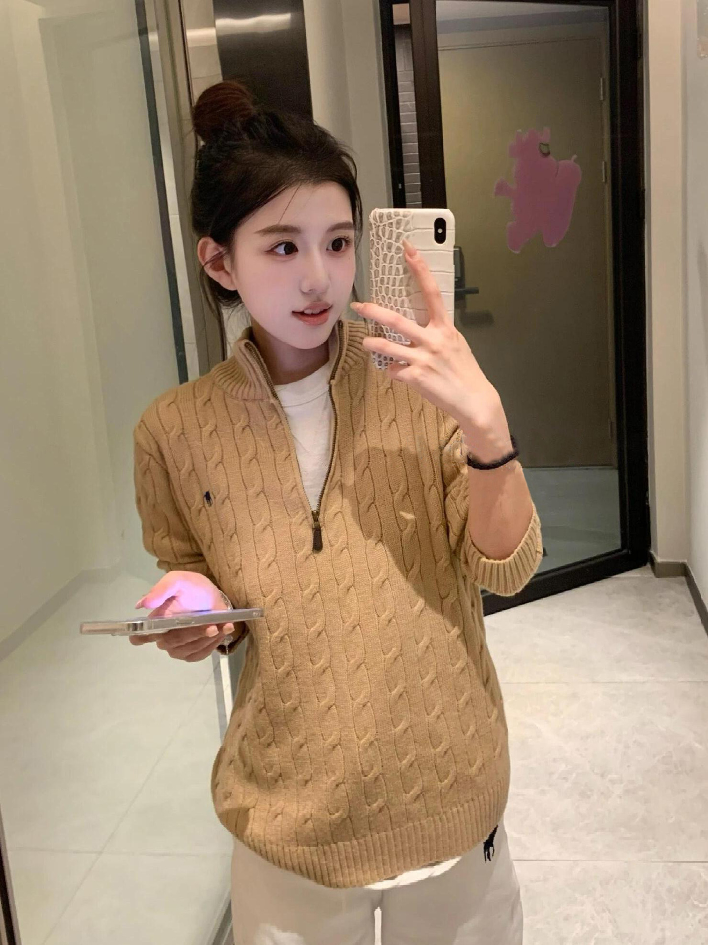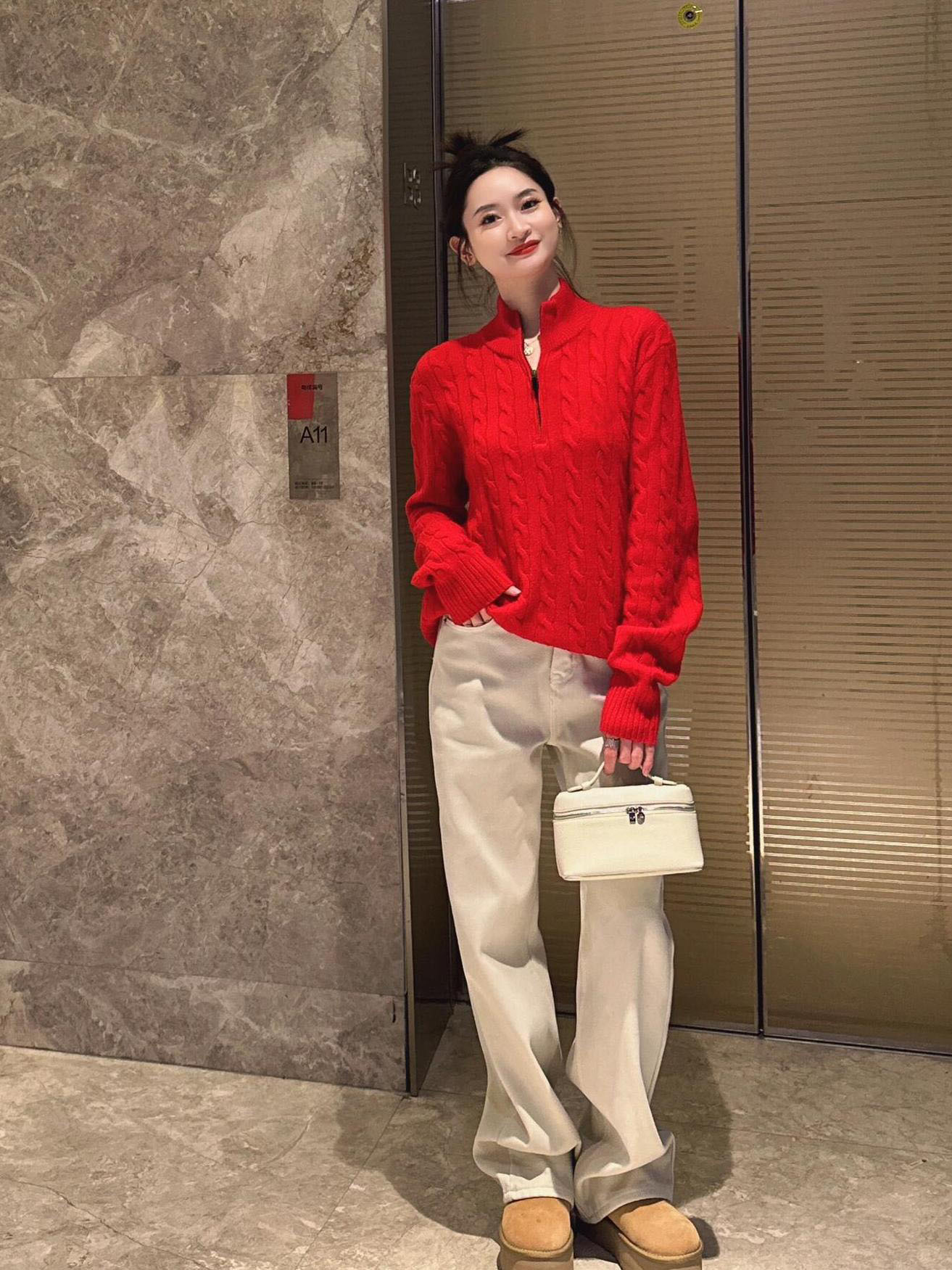 아메리칸 레트로 올드 머니 스타일 포니 가을 소녀 스타일 스탠드 칼라 하프 지퍼 스웨터 트위스트 탑 커플 스웨터스토어 가기