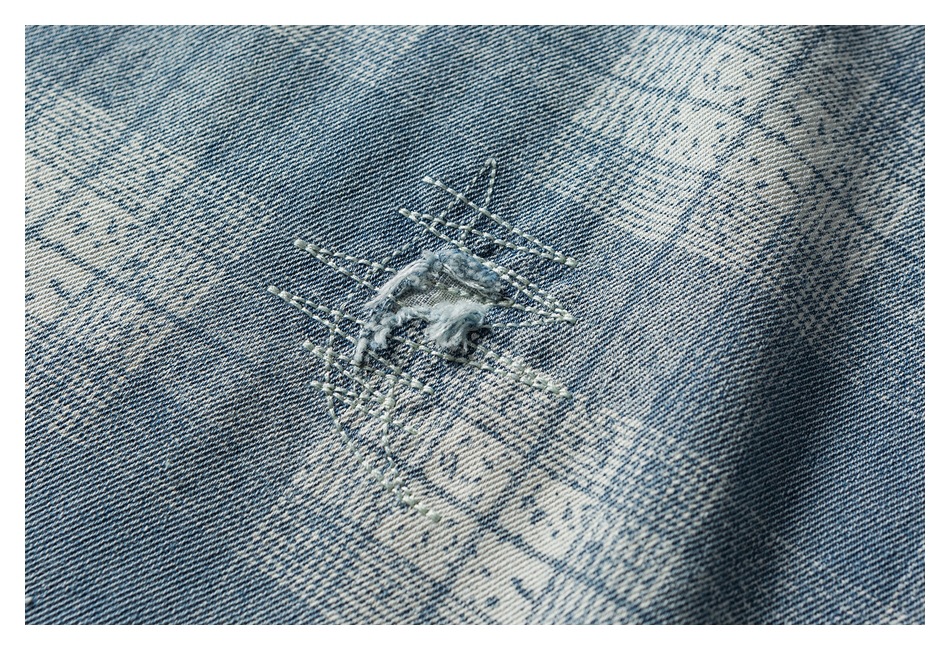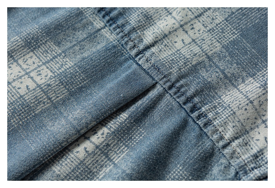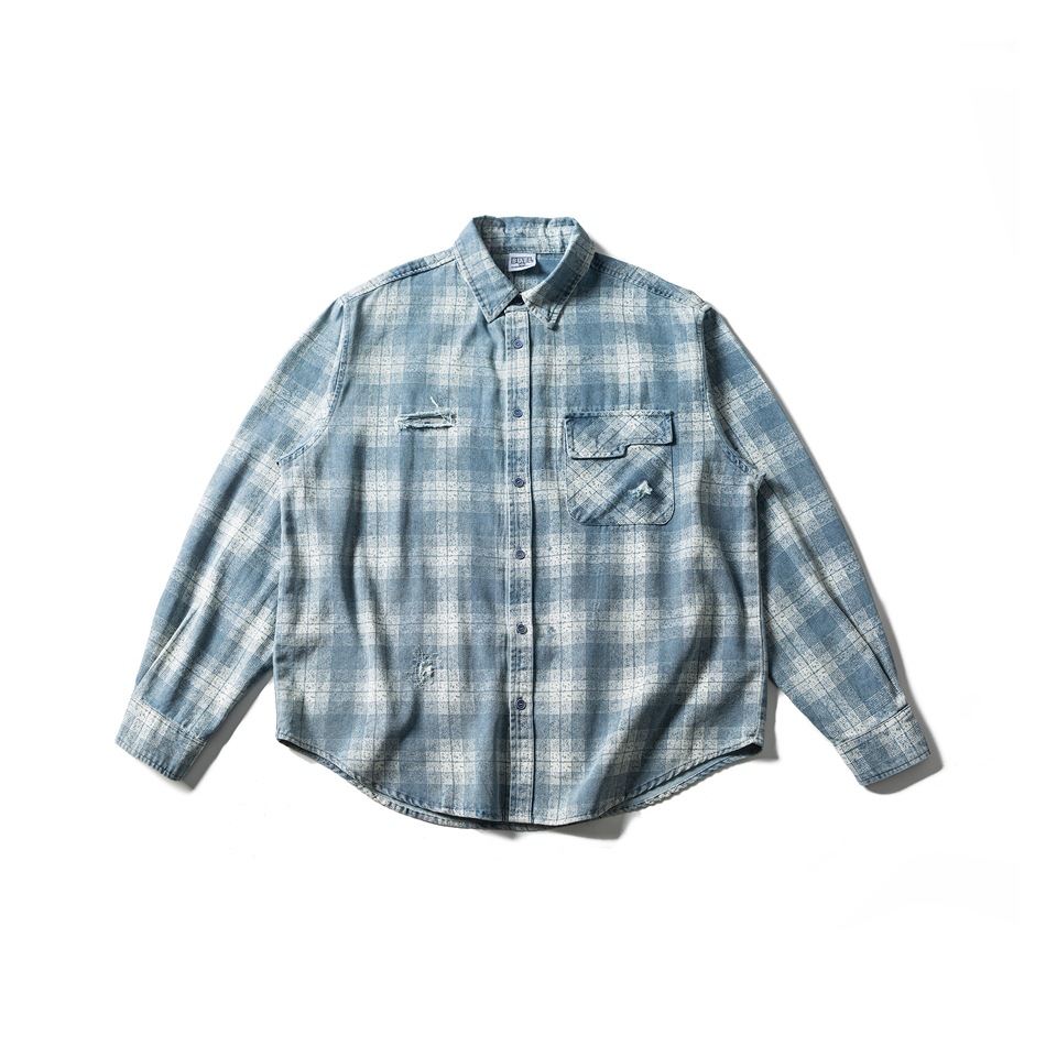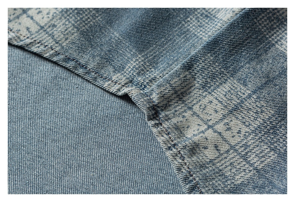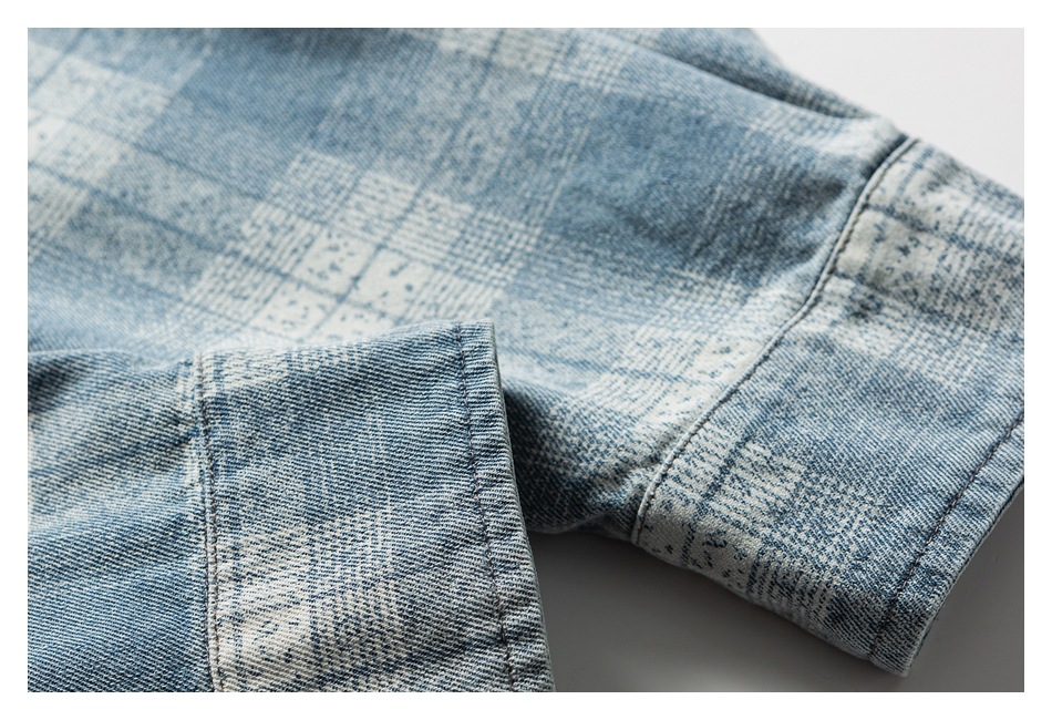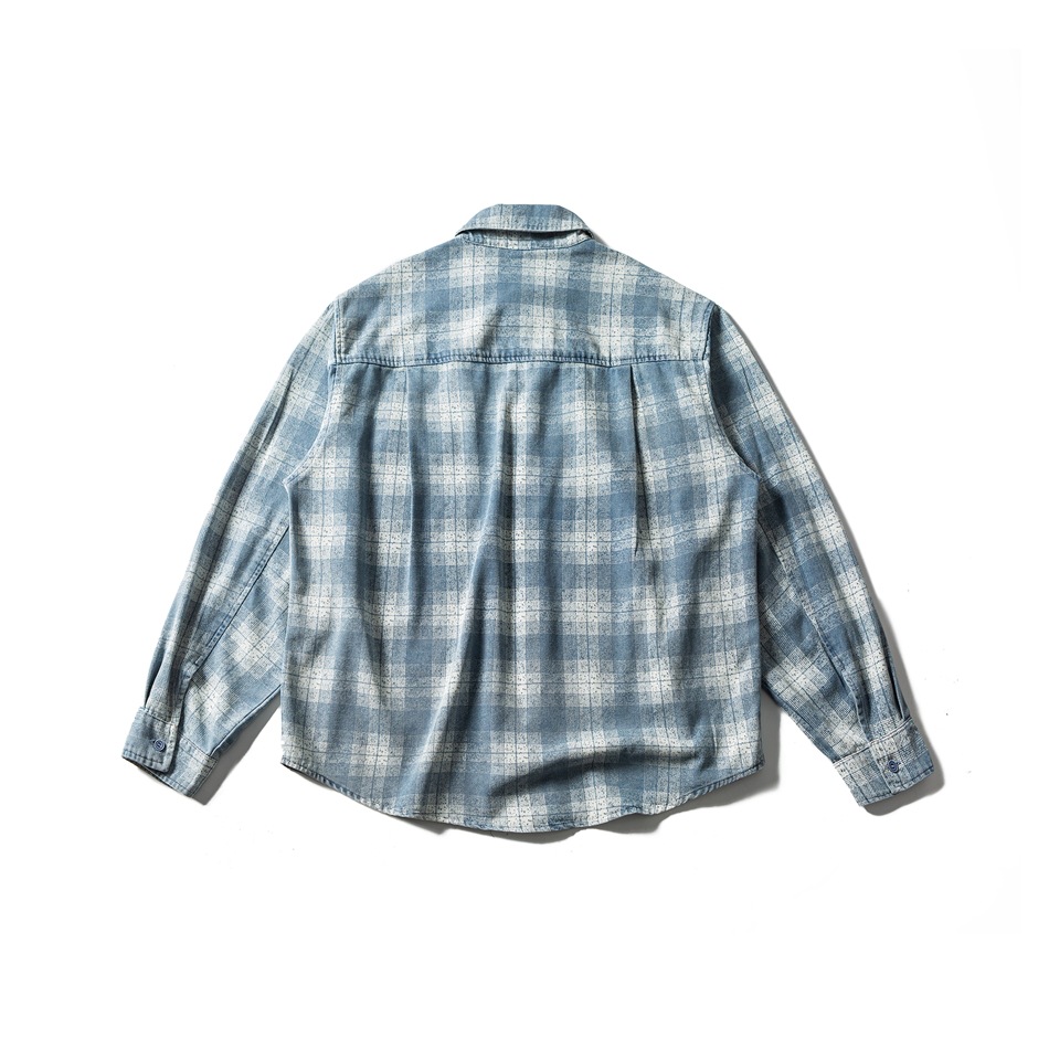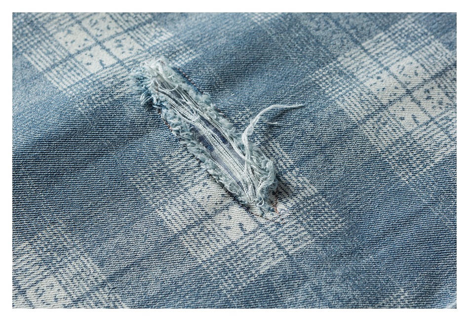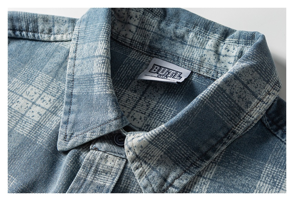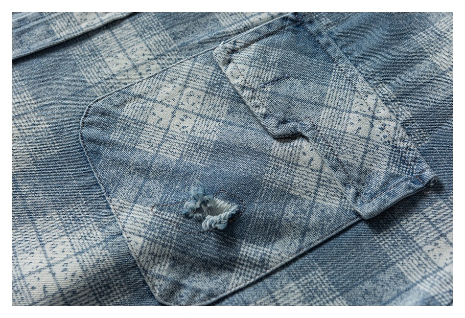 BUILTTOLAST 레트로 워싱 찢어진 데님 셔츠 남성용 루즈 트렌디 긴팔 체크 무늬 셔츠 CS06스토어 가기