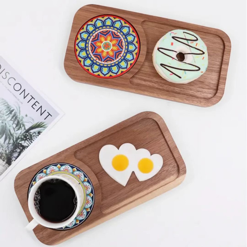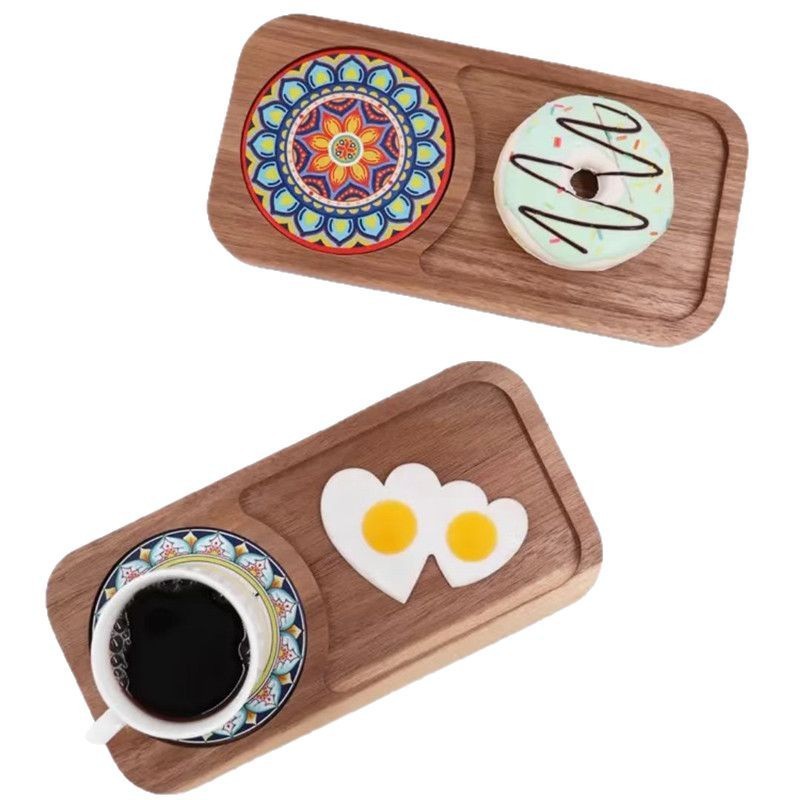 원목 다이닝 트레이, 티 트레이, 일본식 아침 식사 트레이, 애프터눈 티, 커피 스낵, 견과류 트레이, 원목, 무도장 목재