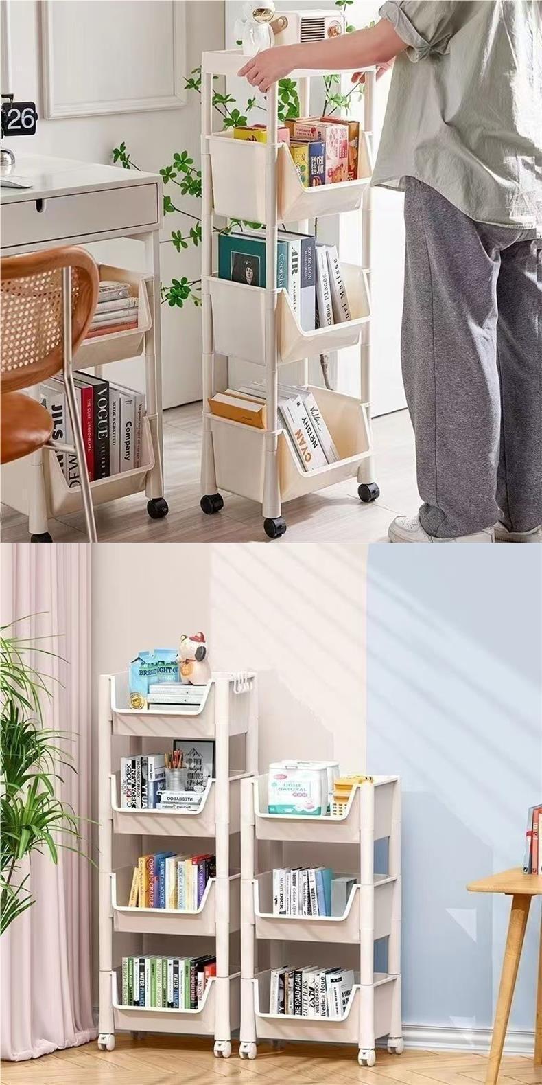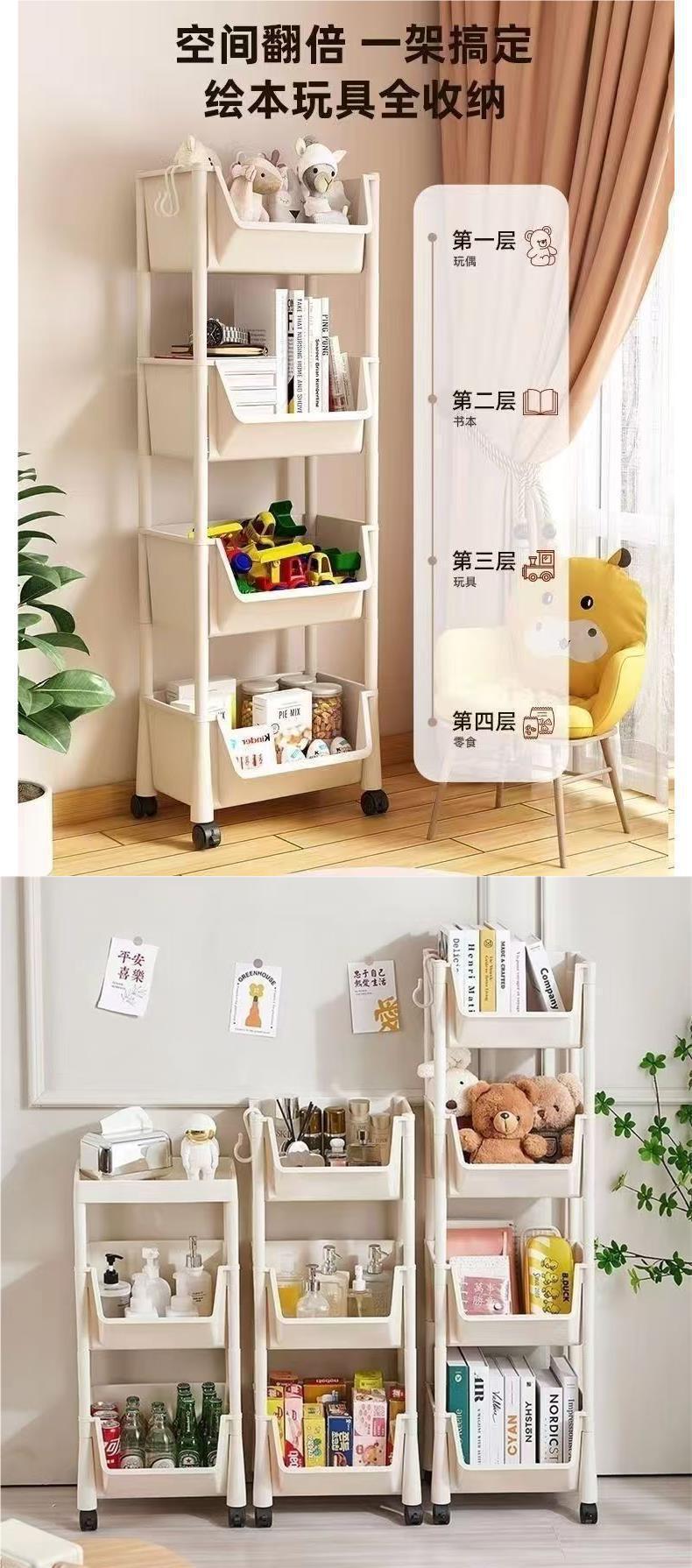 트롤리 보관함 이동식 책장 바닥에 있는 바퀴가 달린 다층 거실 기숙사 어린이 작은 책장 트롤리 보관함스토어 가기