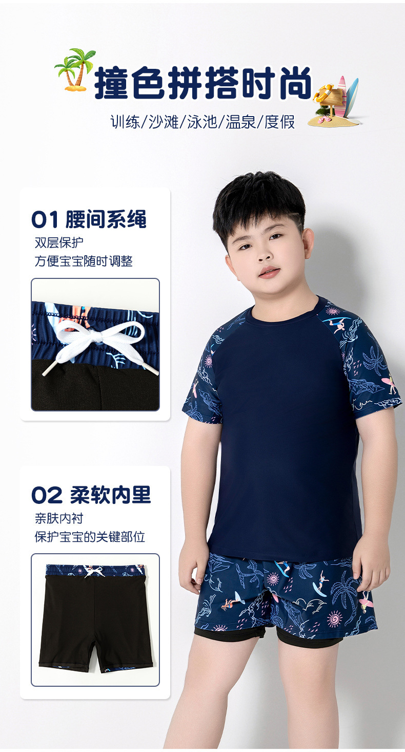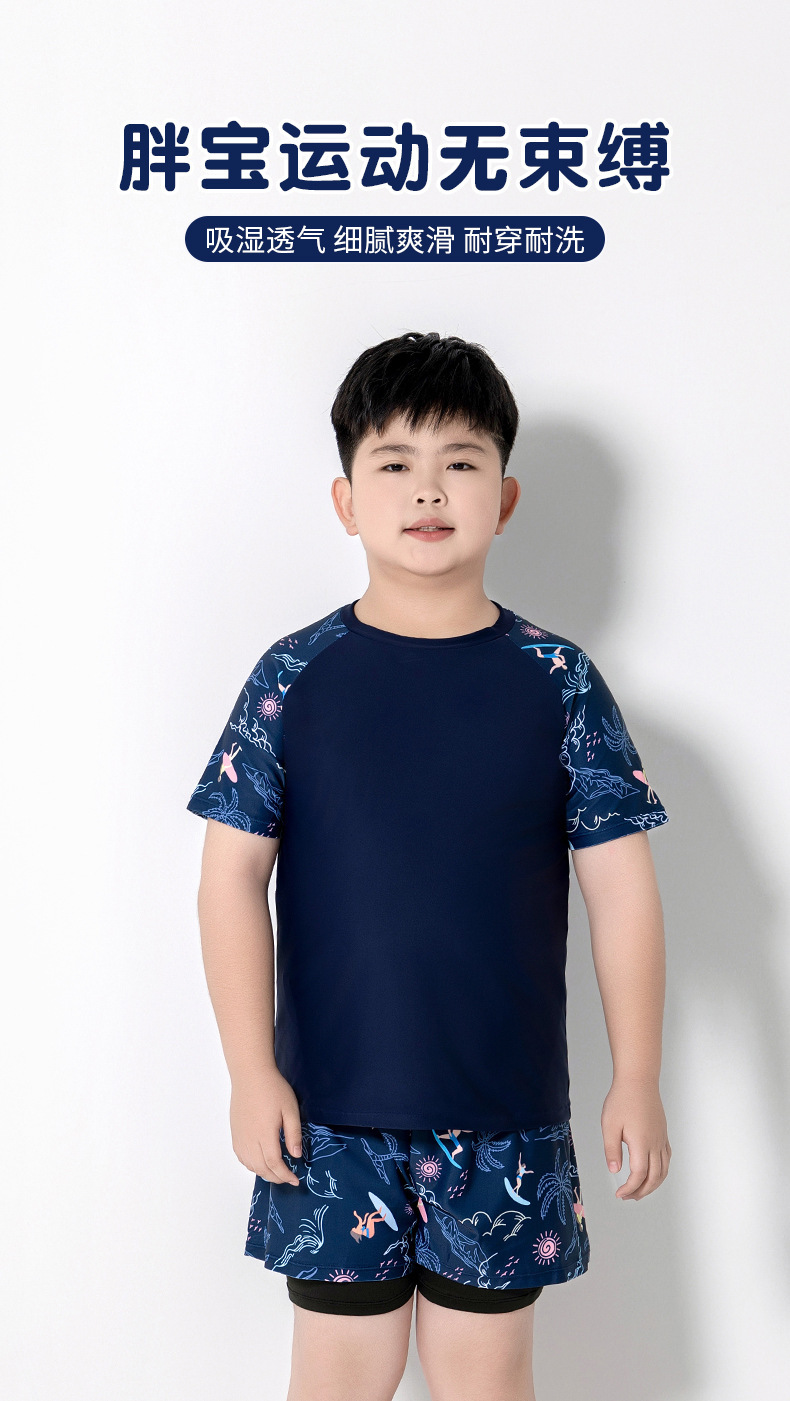 어린이 수영복 소년 스플릿 뚱뚱한 어린이 수영복 2025 새로운 청소년 전문 훈련 수영복 세트스토어 가기