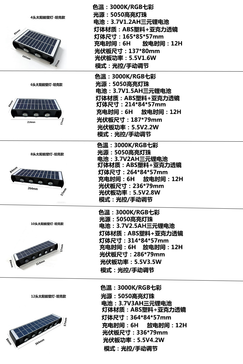 • 8 헤드 태양광 벽 조명