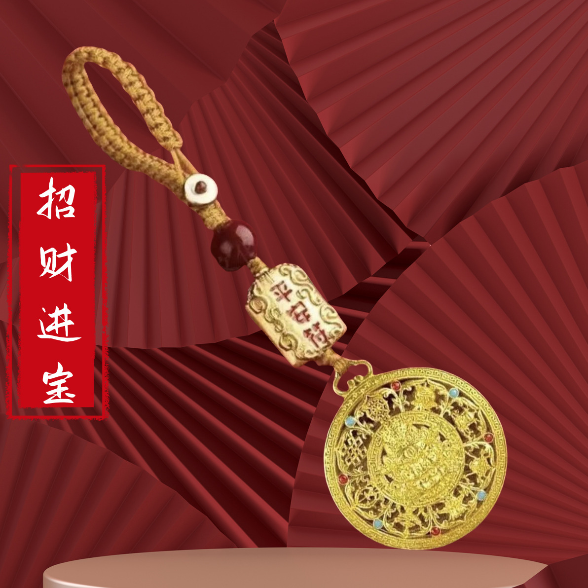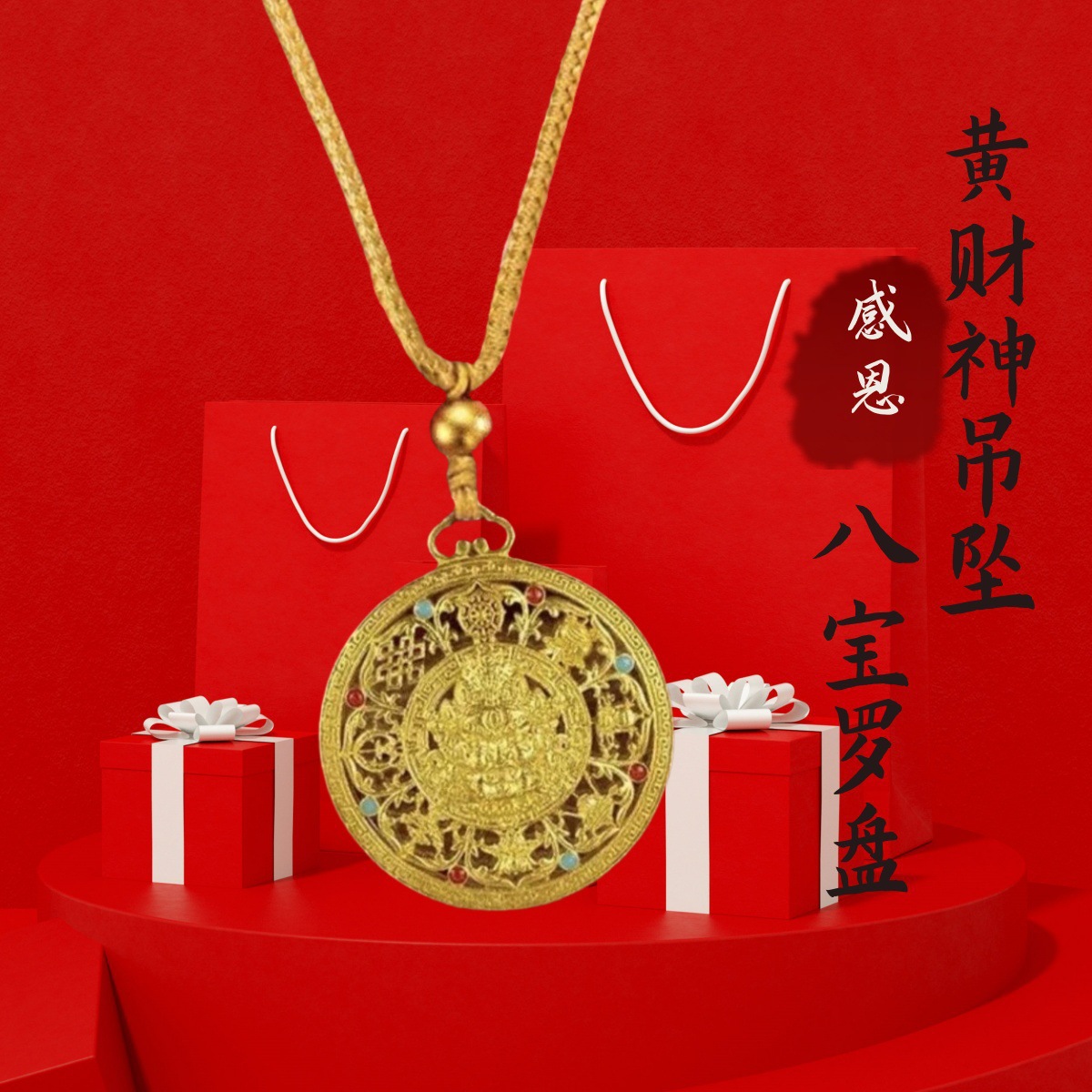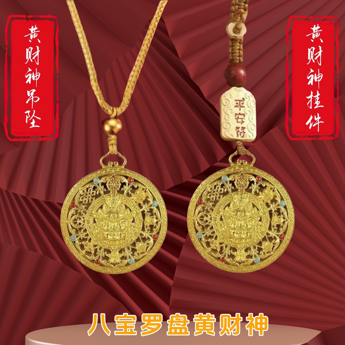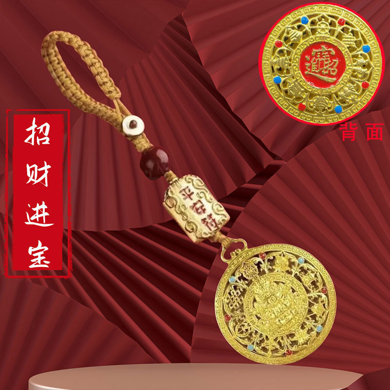 중국 스타일의 새로운 중국 스타일 끈 펜던트 열쇠 고리 펜던트 작은 펜던트 노란색 부의 신 팔 보물 나침반 다채로운 목걸이 수제스토어 가기