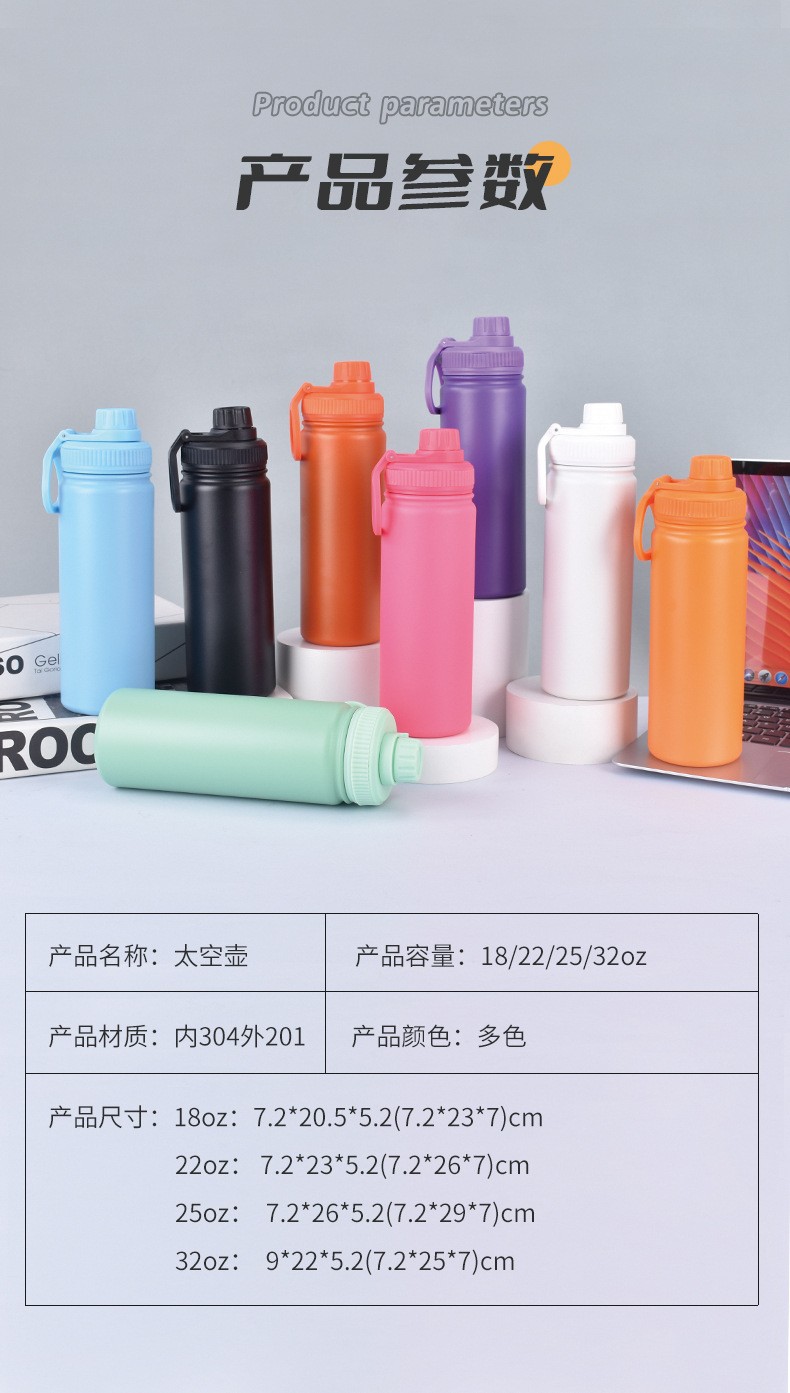 국경 간 304 스테인레스 스틸 우주 주전자 멀티 컬러 대용량 더블 레이어 진공 스포츠 주전자 야외 등산 보온병 컵