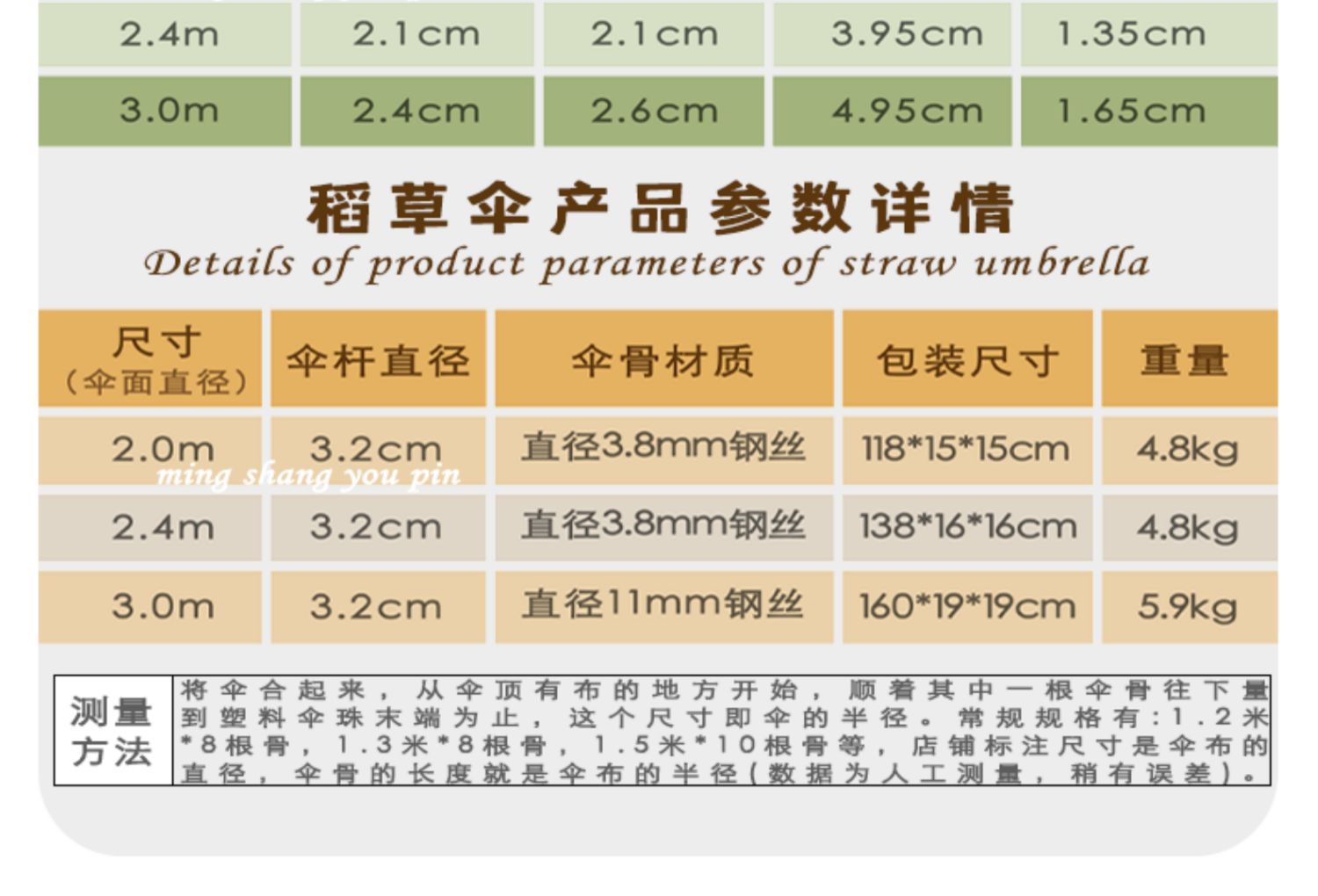 • 1.6m 스티어링 밀짚우산(베이스 없음)