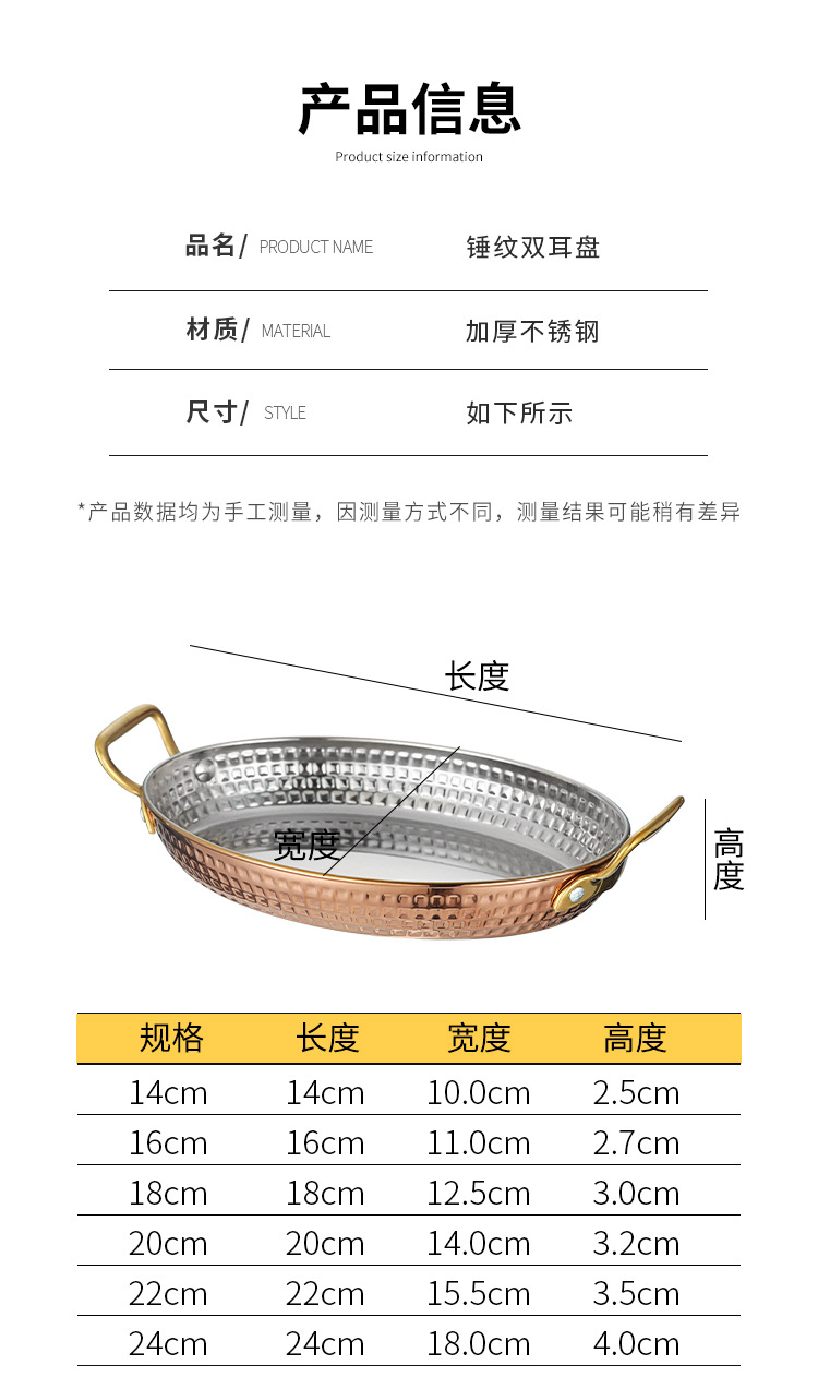• 14cm 이중 귀 해머링 타원형 플레이트