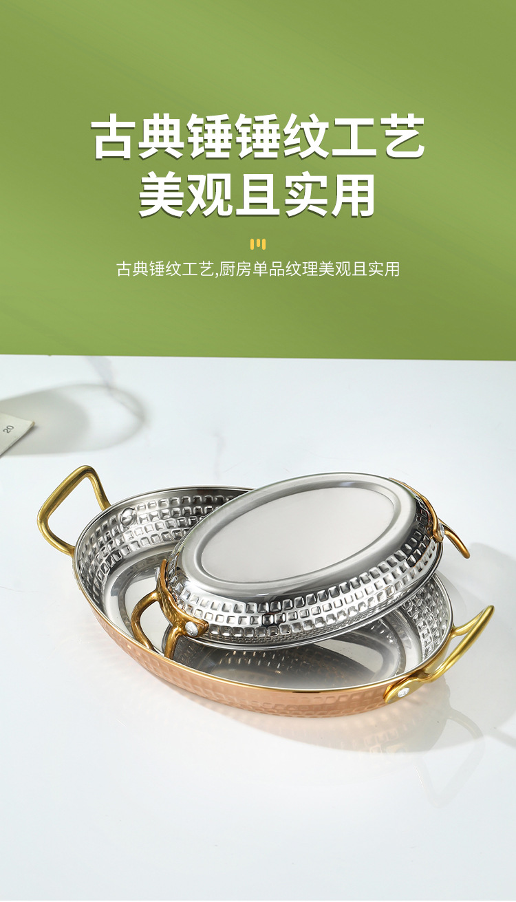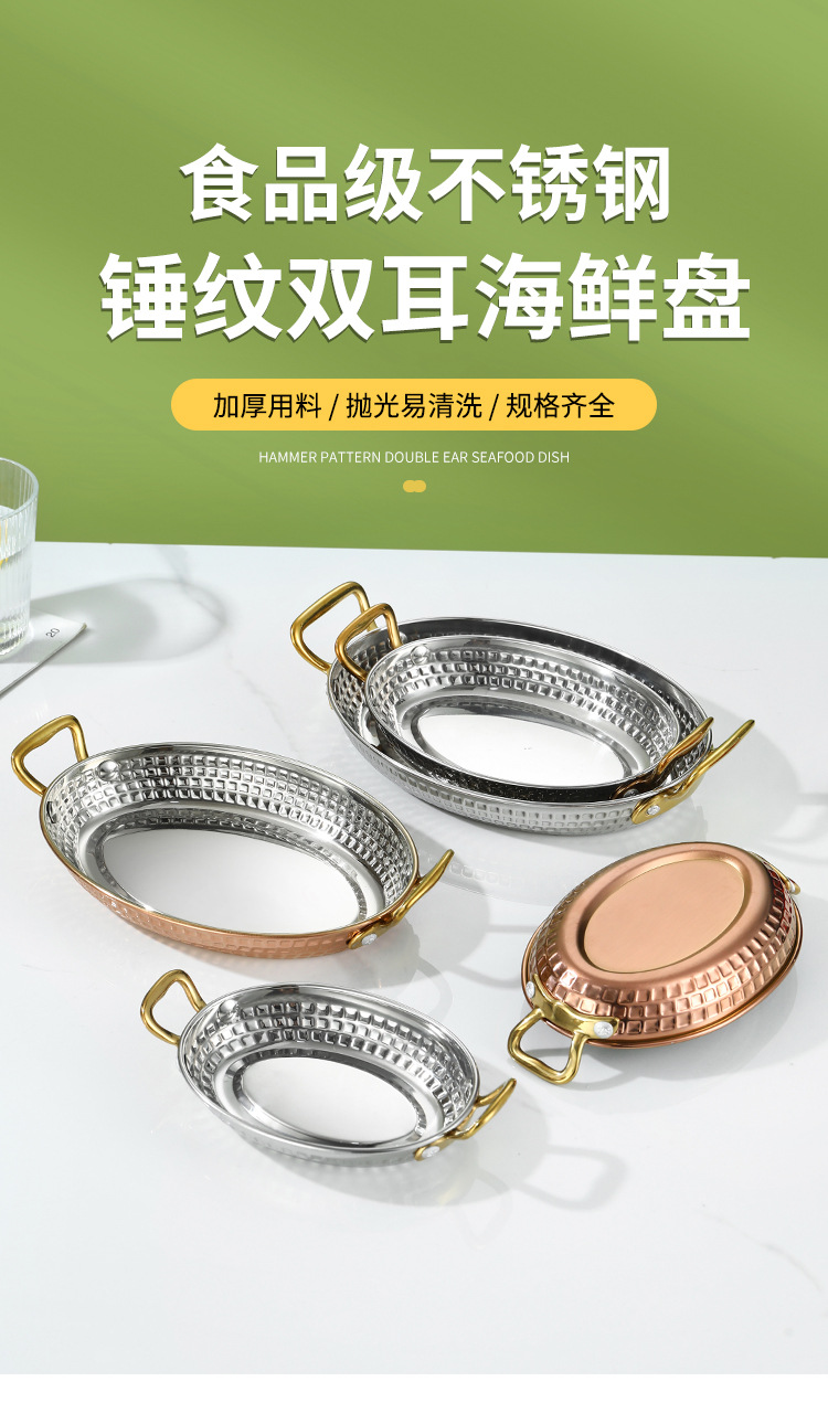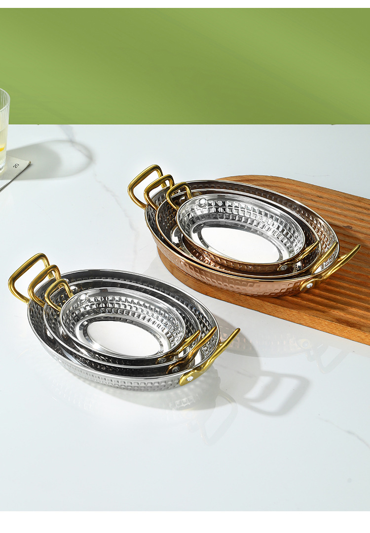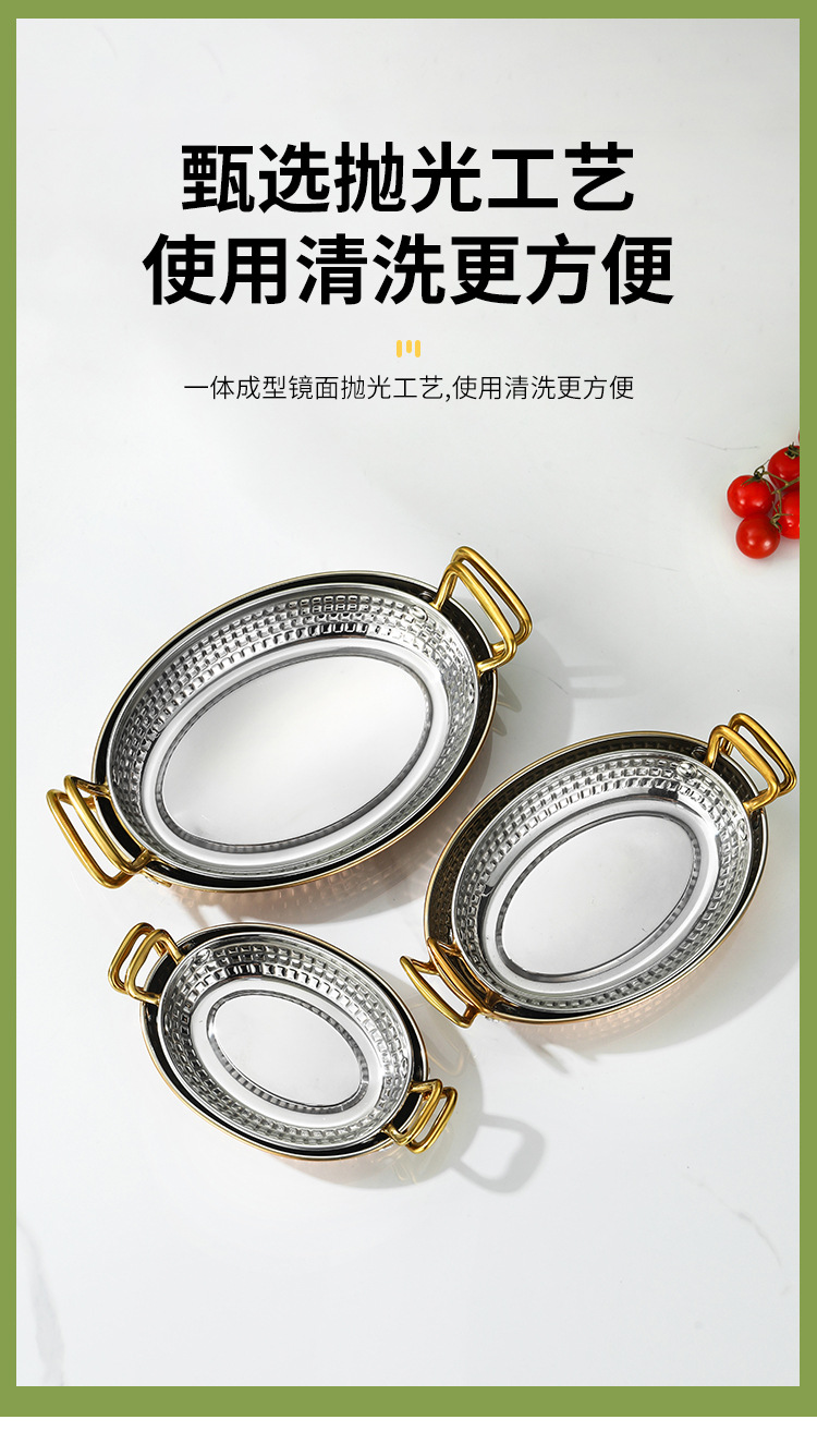 스테인레스 스틸 이중 귀 접시 타원형 망치 착한 생선 찜 접시 라이트 접시 서빙 접시 랍스터 접시 크리 에이 티브 서양식 구이 밥 스테이크 접시