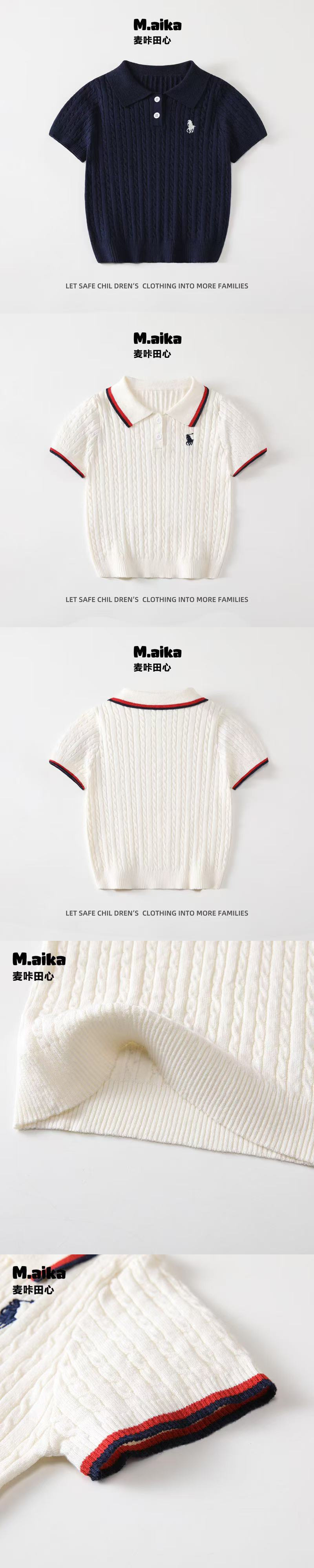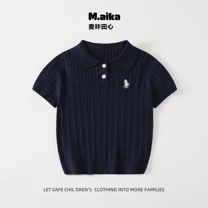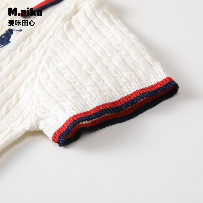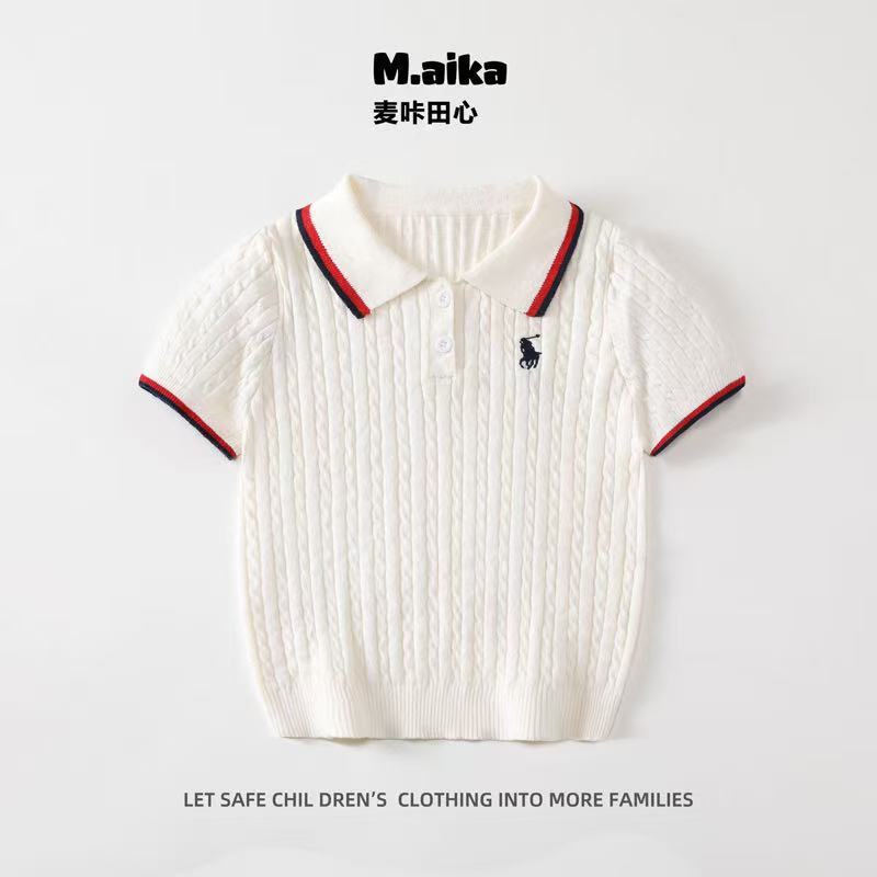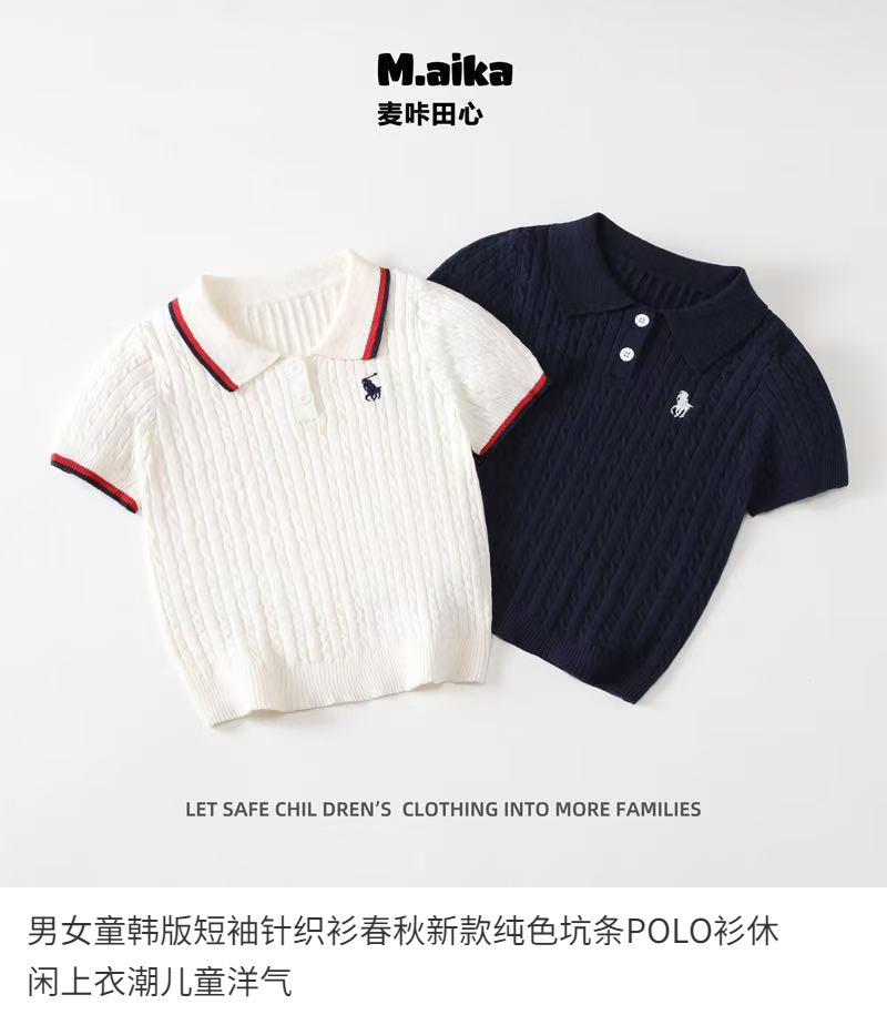 남학생과 여학생을 위한 한국식 반팔 스웨터, 봄과 가을 새로운 단색 핏 스트립 폴로 셔츠, 캐주얼 상의, 트렌디한 아동복스토어 가기