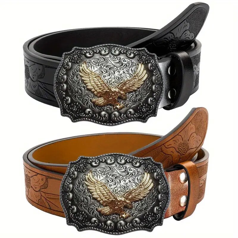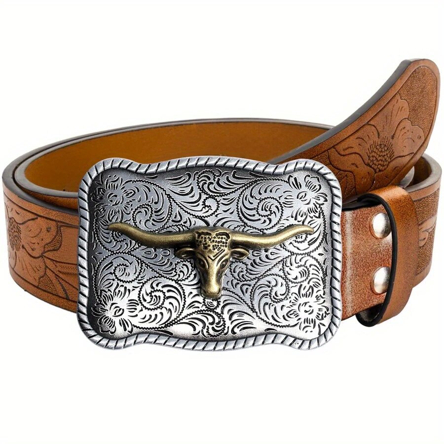 국경 간 남성 서양 카우보이 벨트, 황소 머리 버클, 복고풍 양각 가죽 벨트, 트렌디한 공장 현물 도매