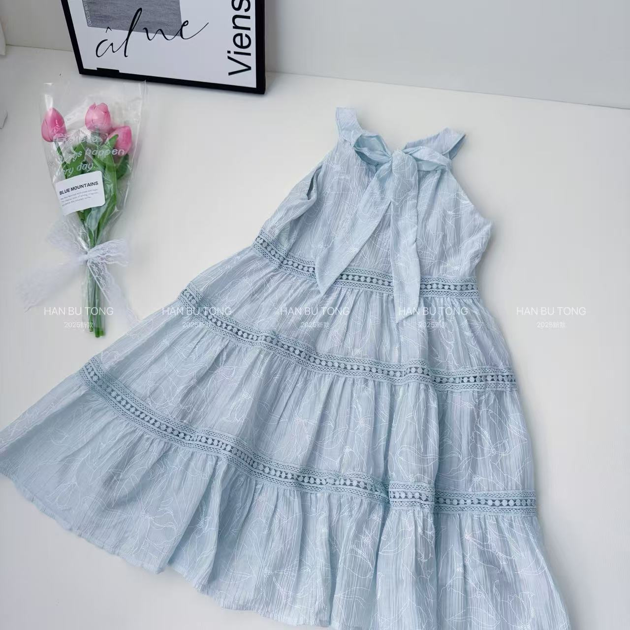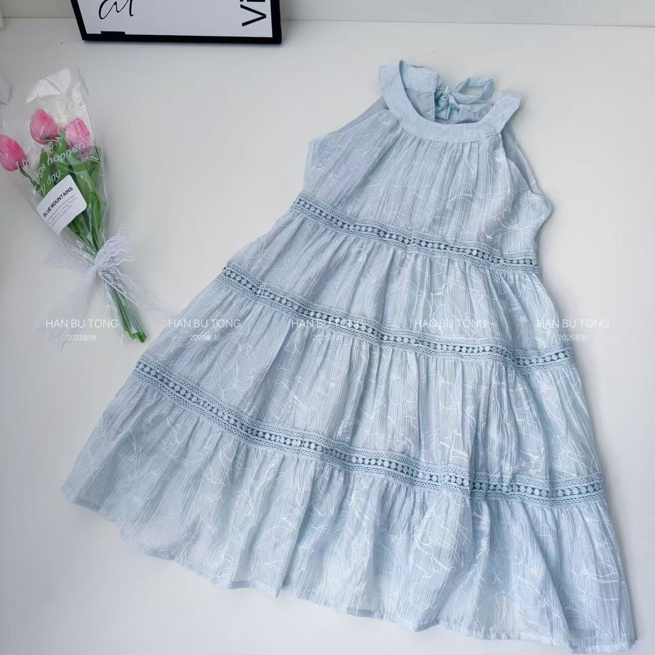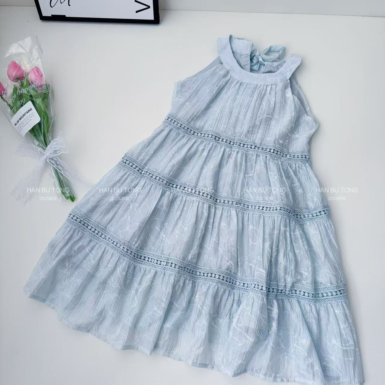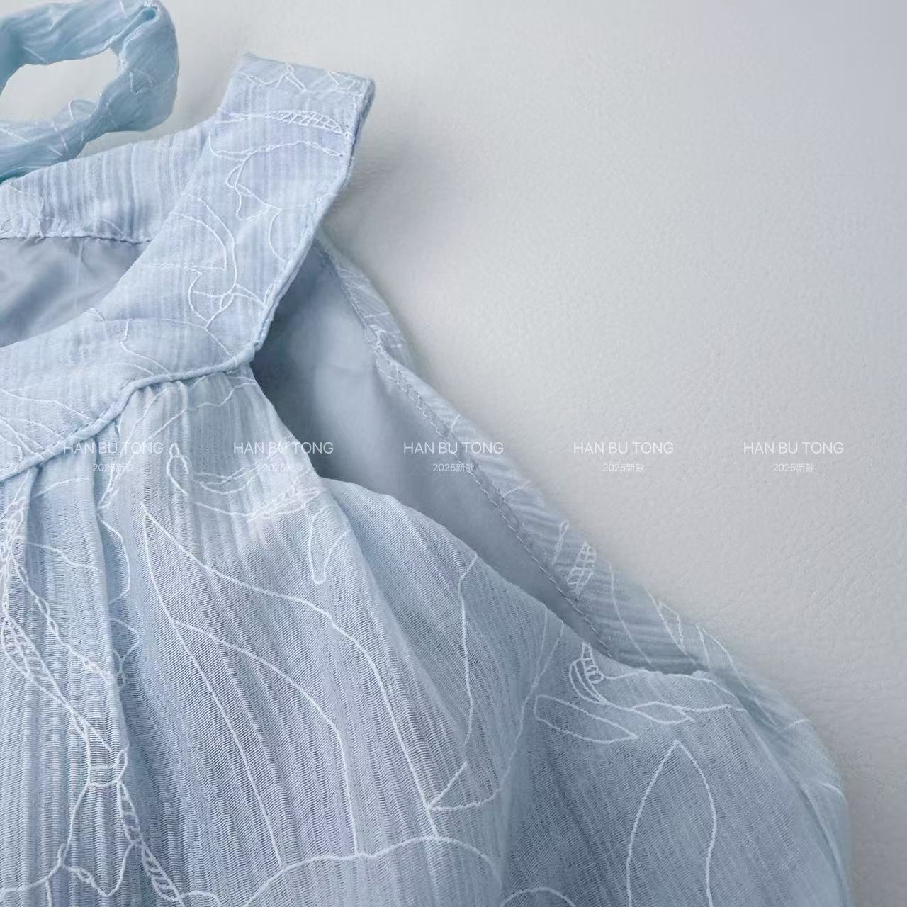 여자 여름 드레스 텐셀 얇은 홀터넥 공주 드레스 2025 새로운 중대형 어린이 소녀 휴가 중간 길이 드레스스토어 가기