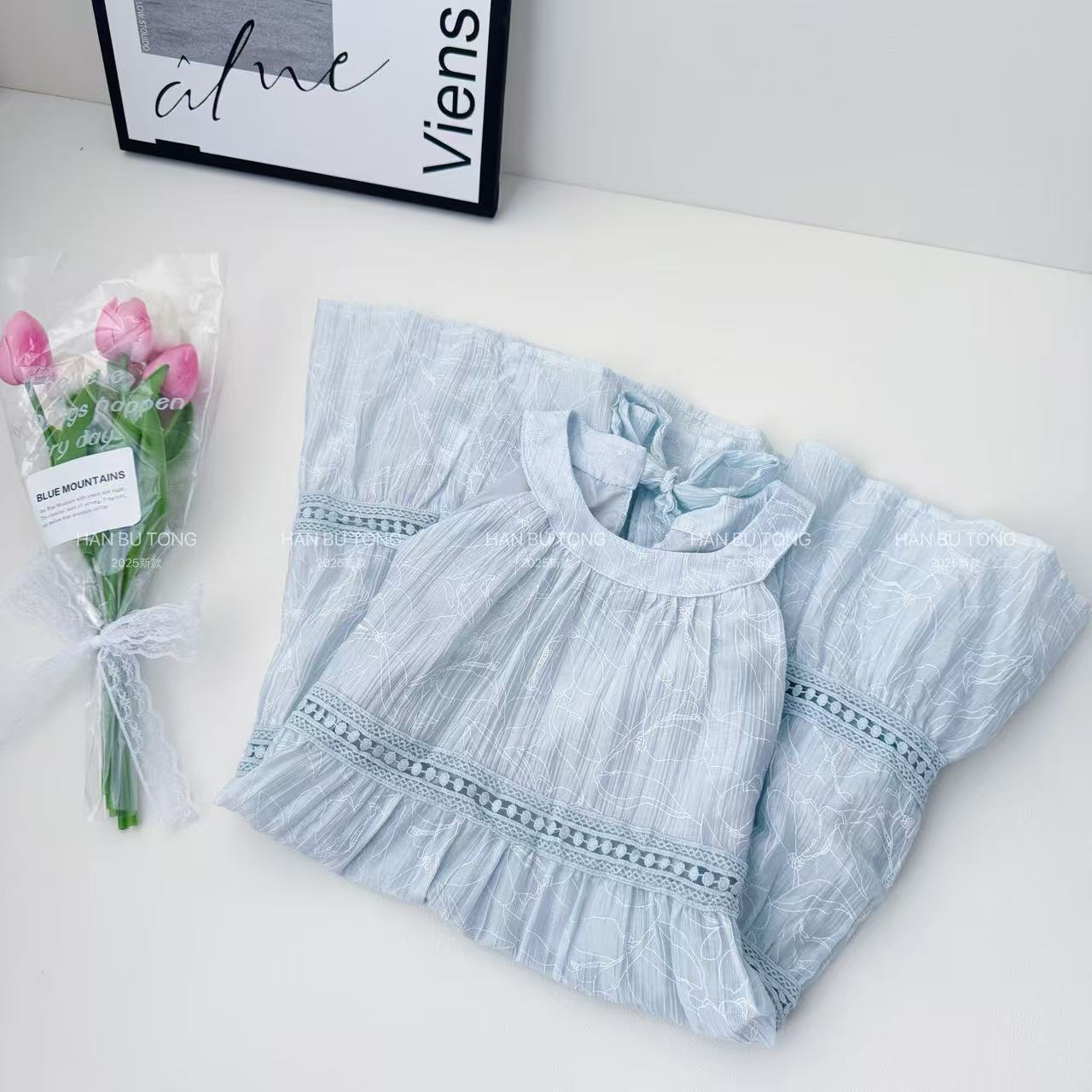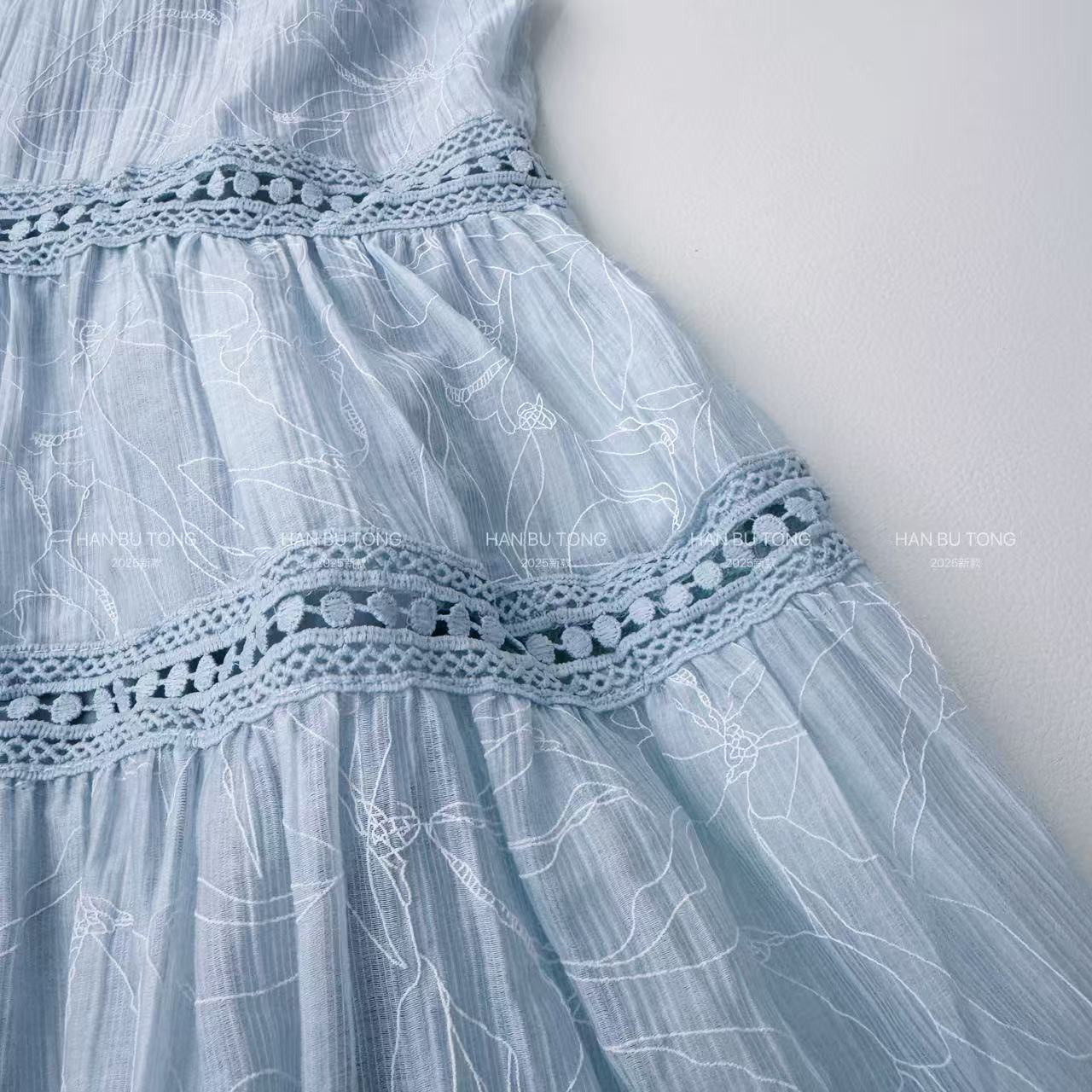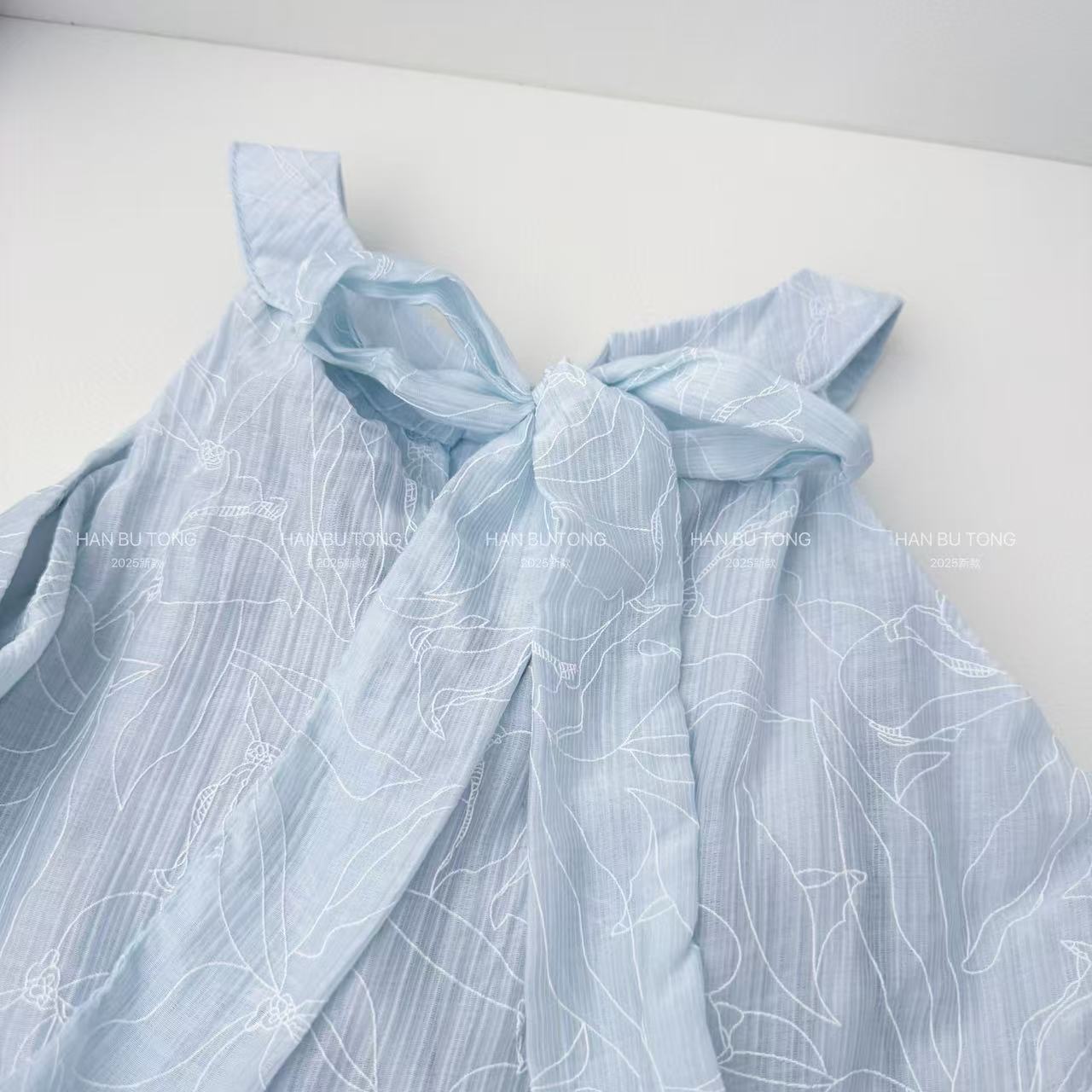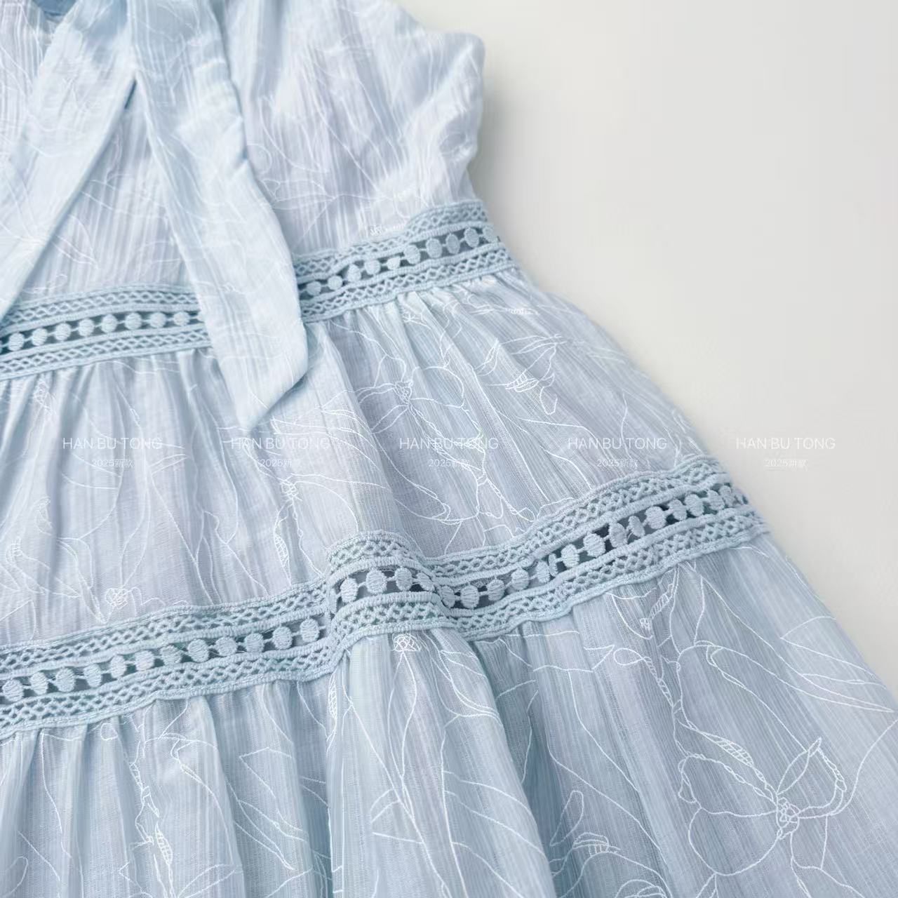 여자 여름 드레스 텐셀 얇은 홀터넥 공주 드레스 2025 새로운 중대형 어린이 소녀 휴가 중간 길이 드레스스토어 가기