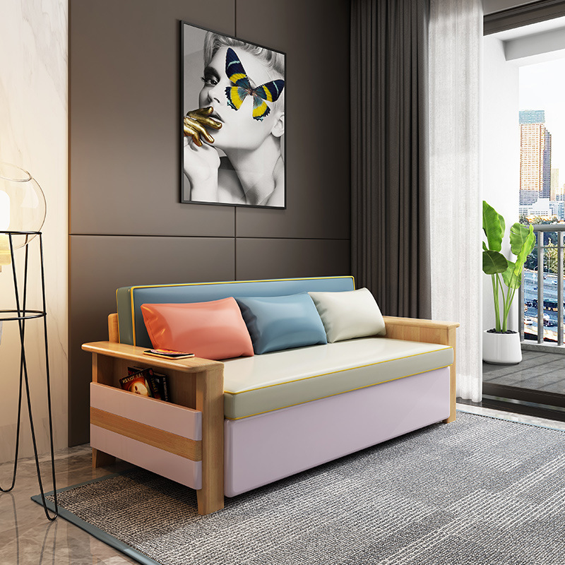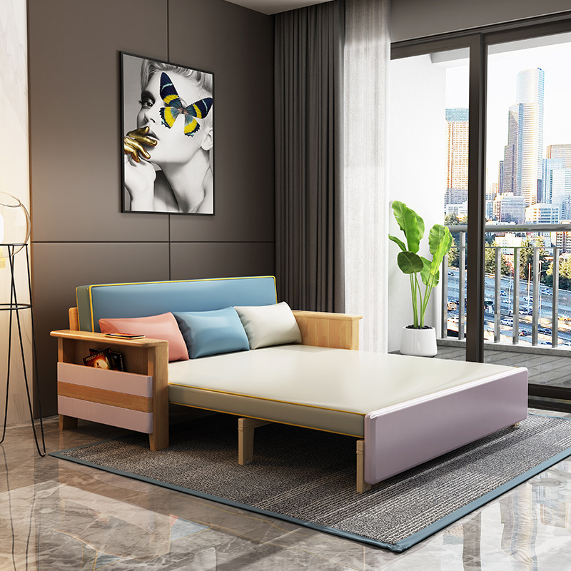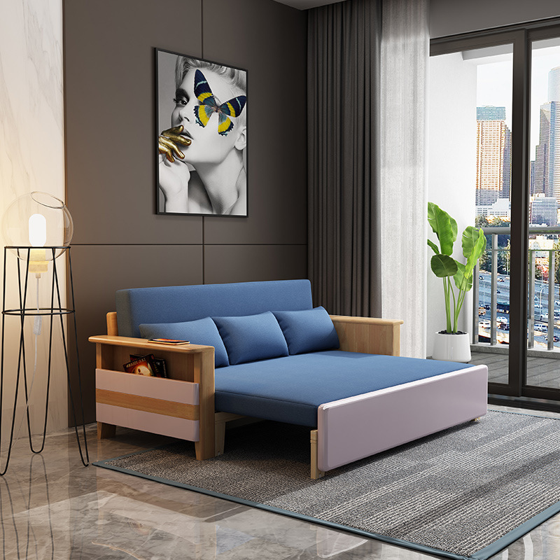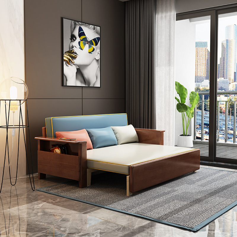 단단한 나무 소파 베드, 접이식 이중 목적 거실, 다기능 소형 아파트, 싱글 침대, 접이식 더블 소파