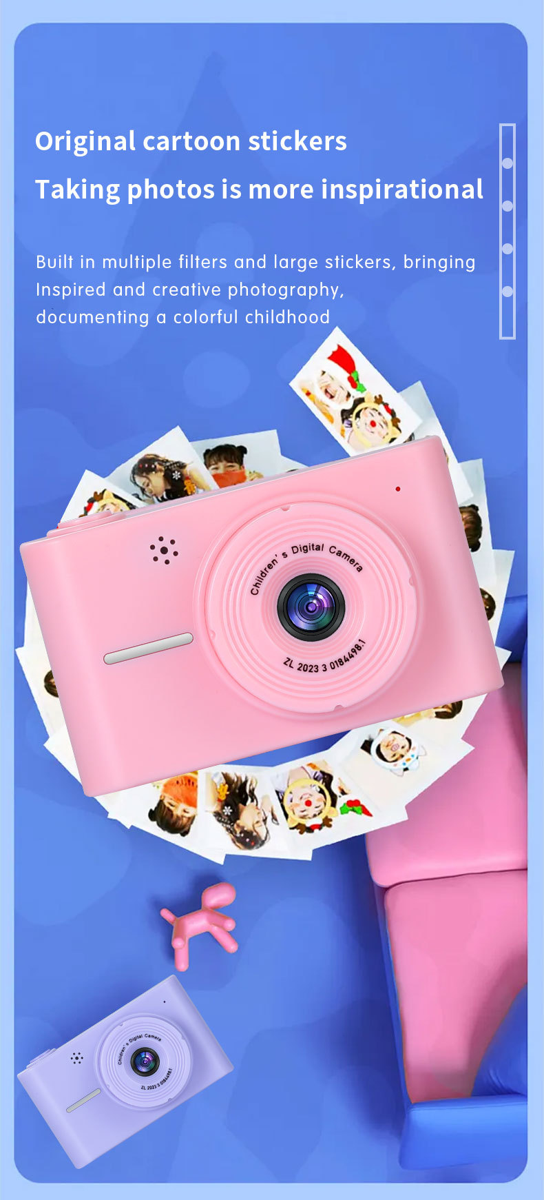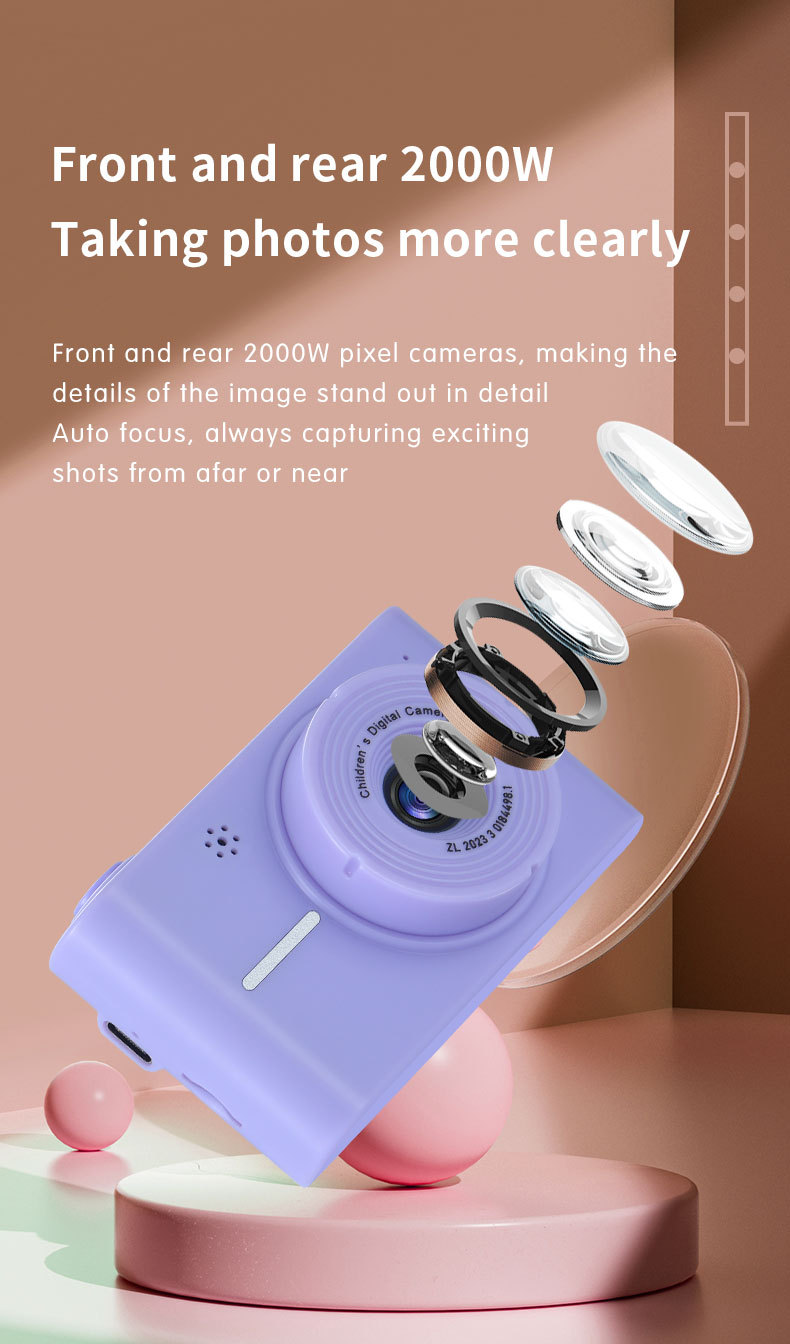 크로스보더 어린이 카메라는 사진, 비디오 및 게임을 찍을 수 있습니다. HD 듀얼 녹화 어린이 미니 카메라 장난감 만화 선물