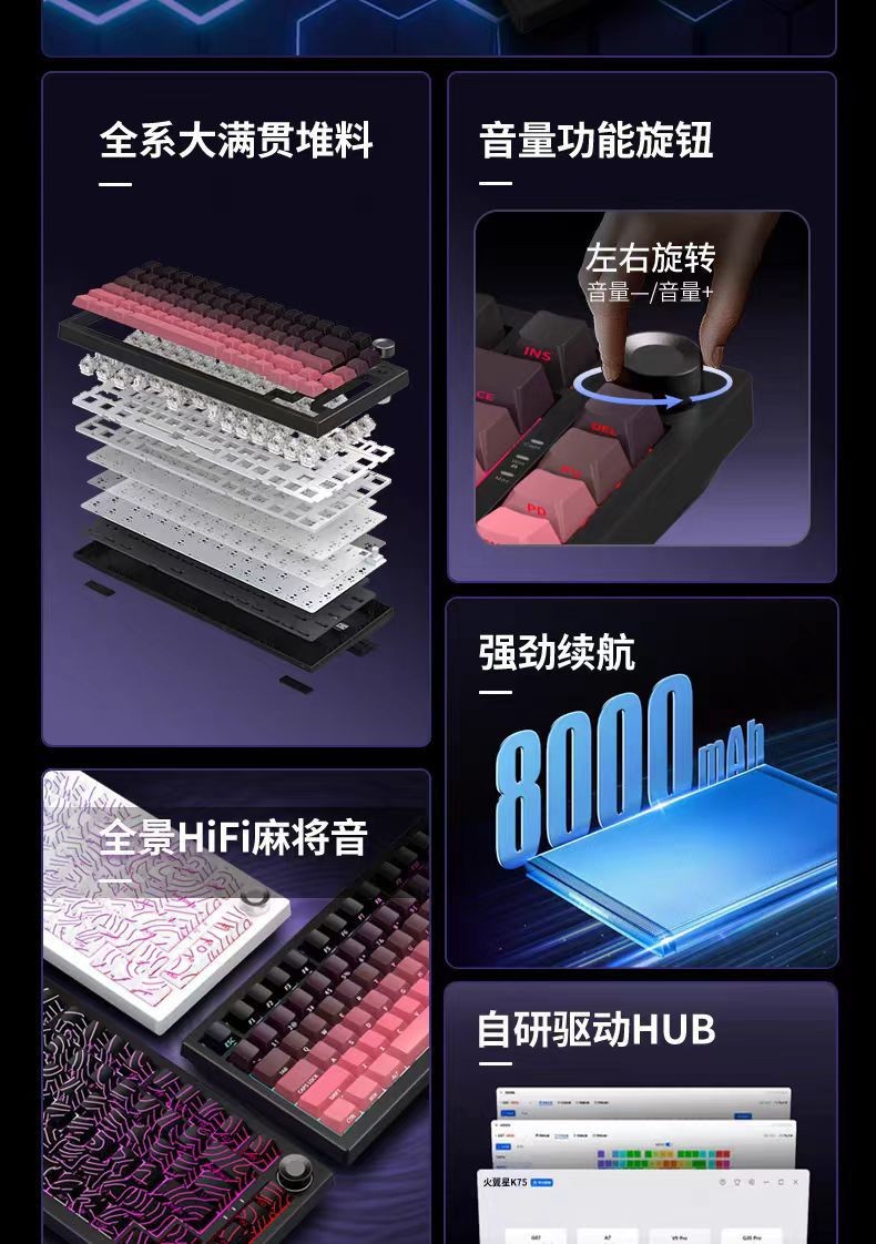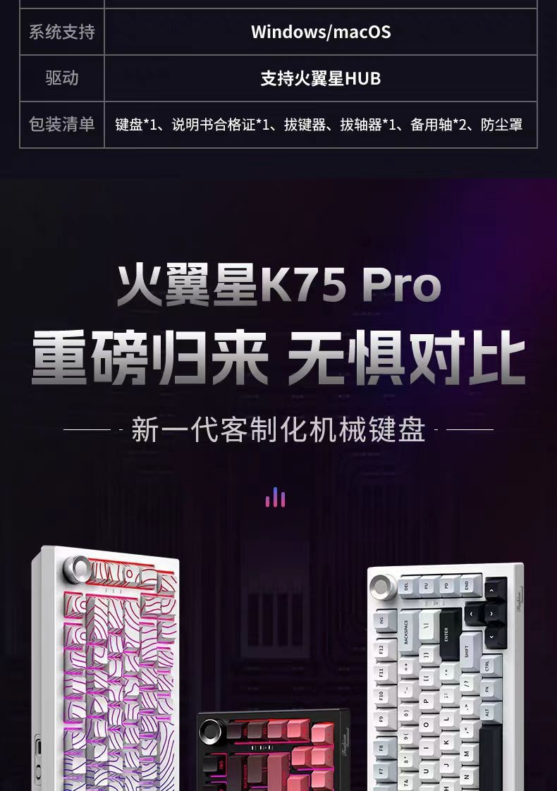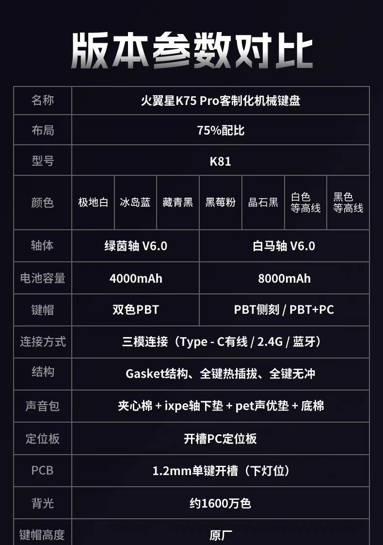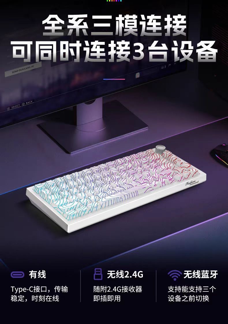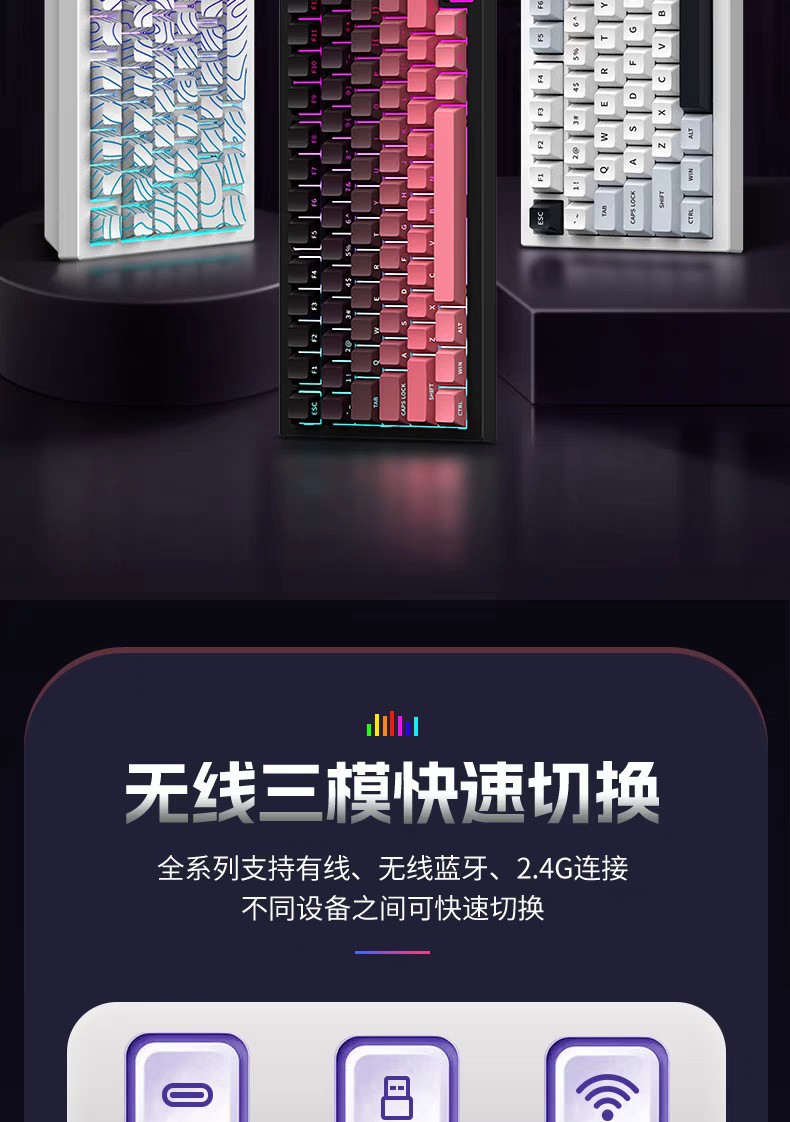 75 배열-K81 맞춤형 3모드(유선/2.4G/블루투스) 기계식 키보드 등 고도선 방수 설계