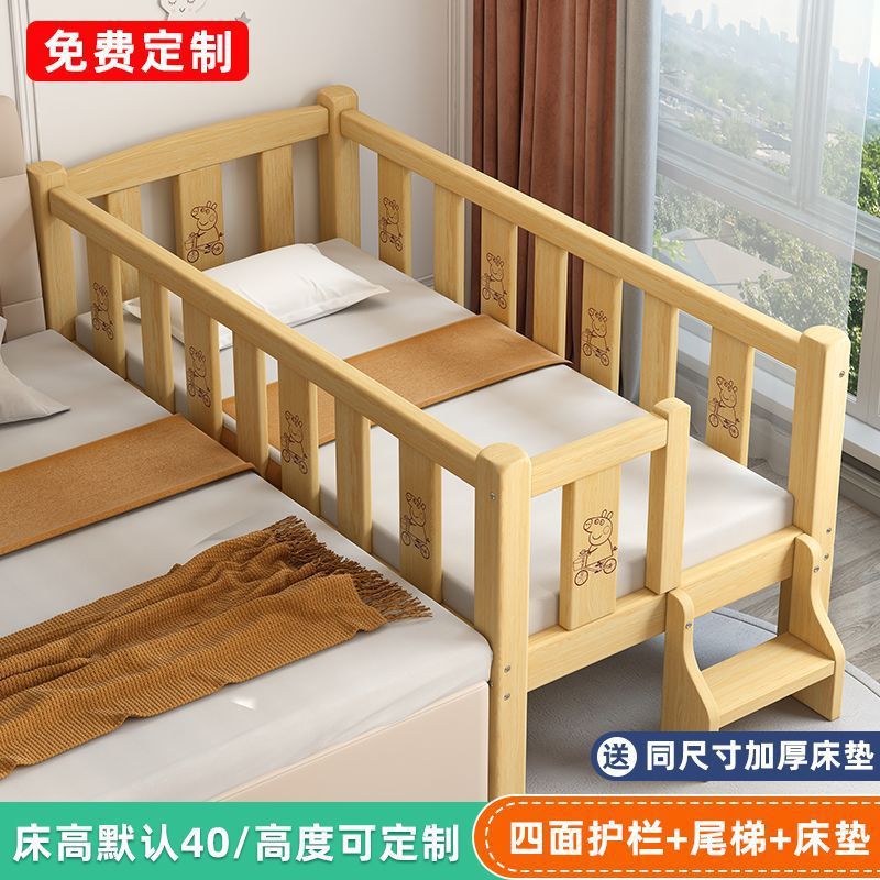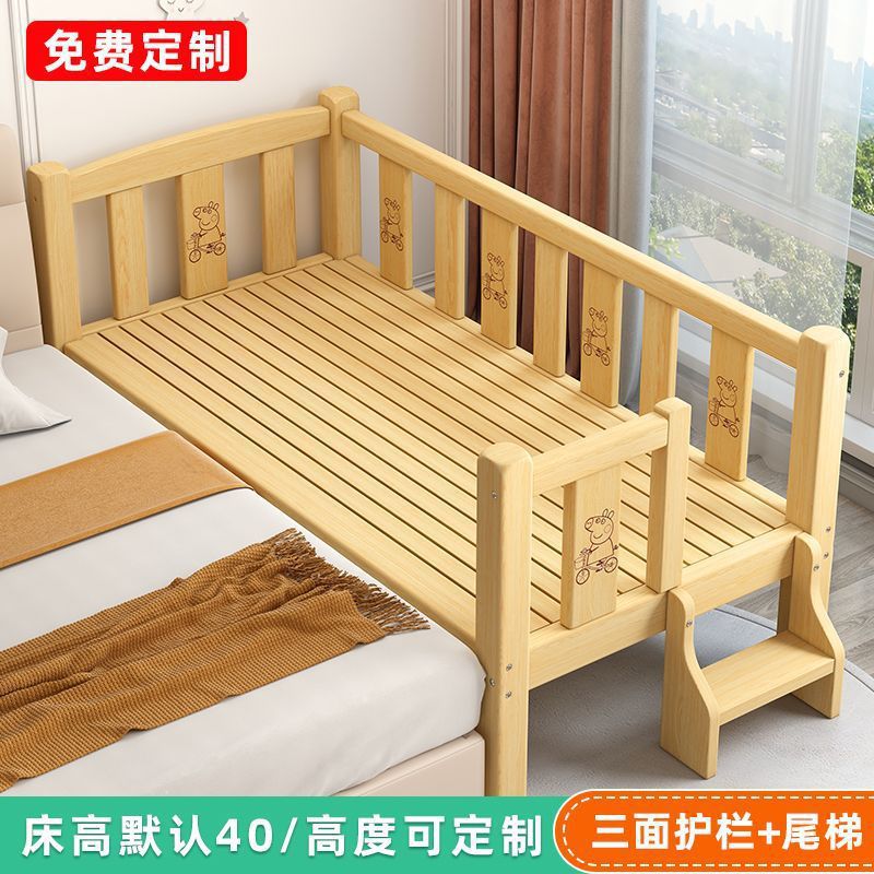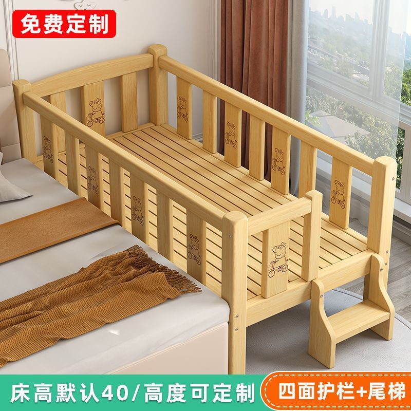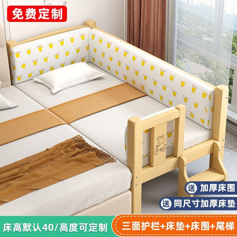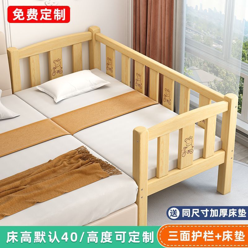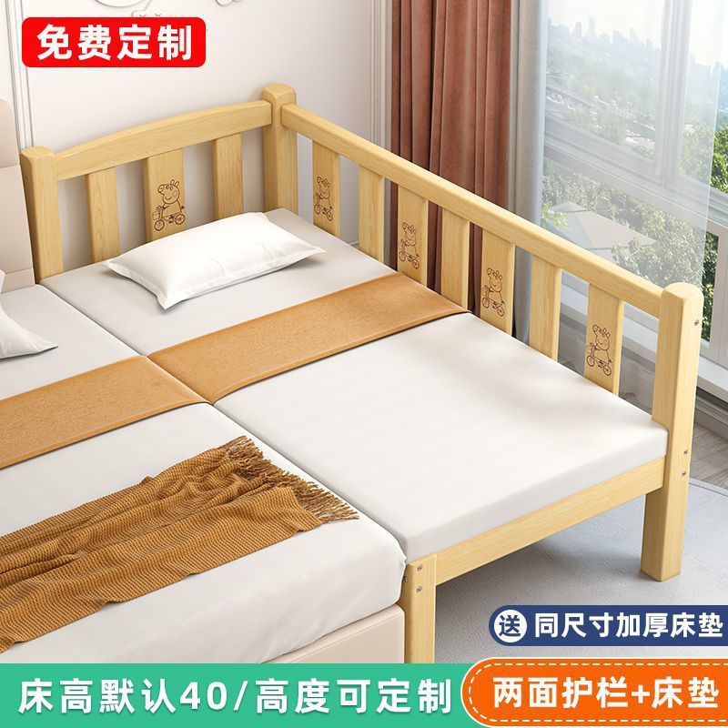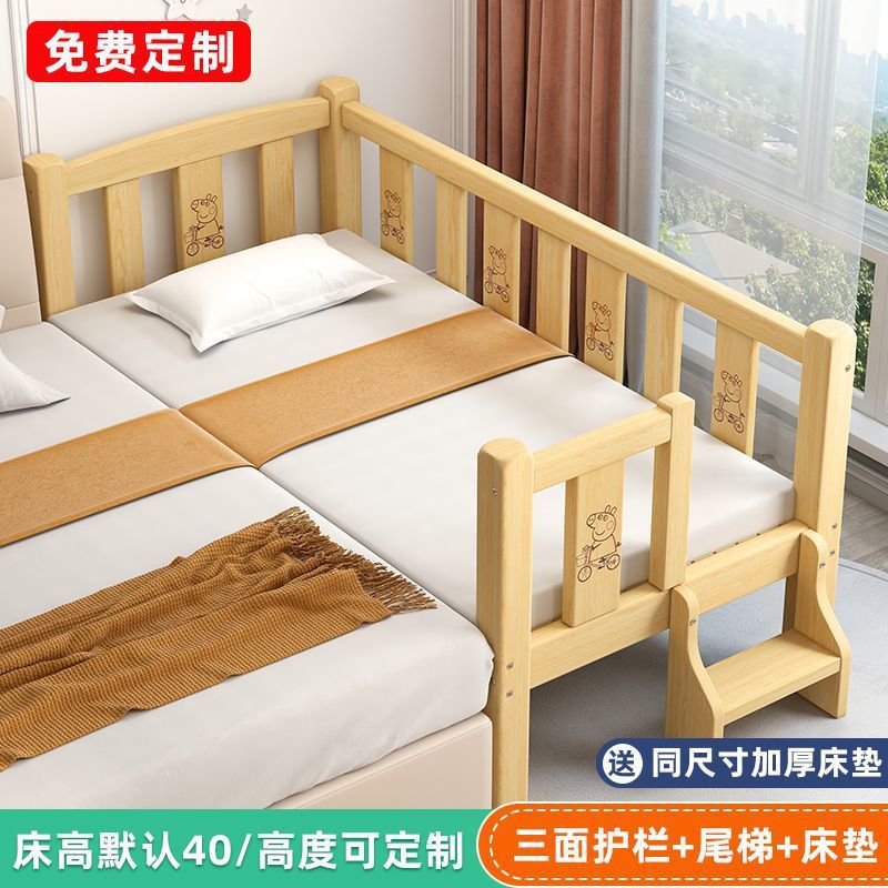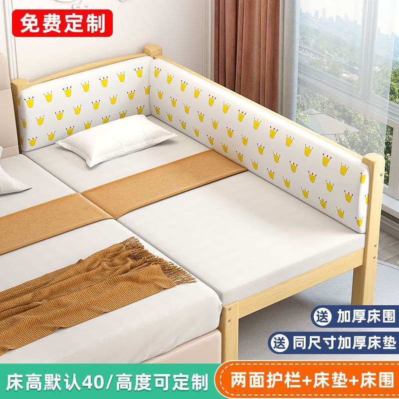 어린이 접합 침대 확대 유아용 침대 소년과 소녀 난간이 있는 단단한 나무 대형 침대 아기 침대 옆 싱글 침대