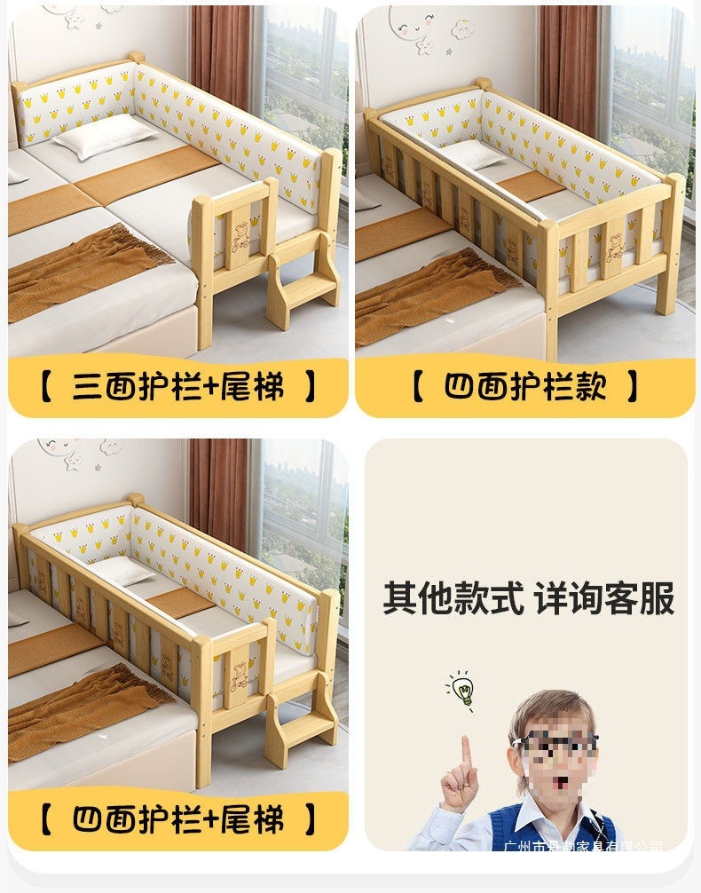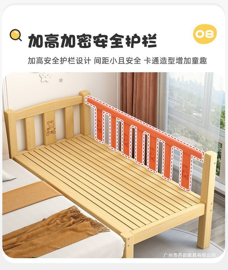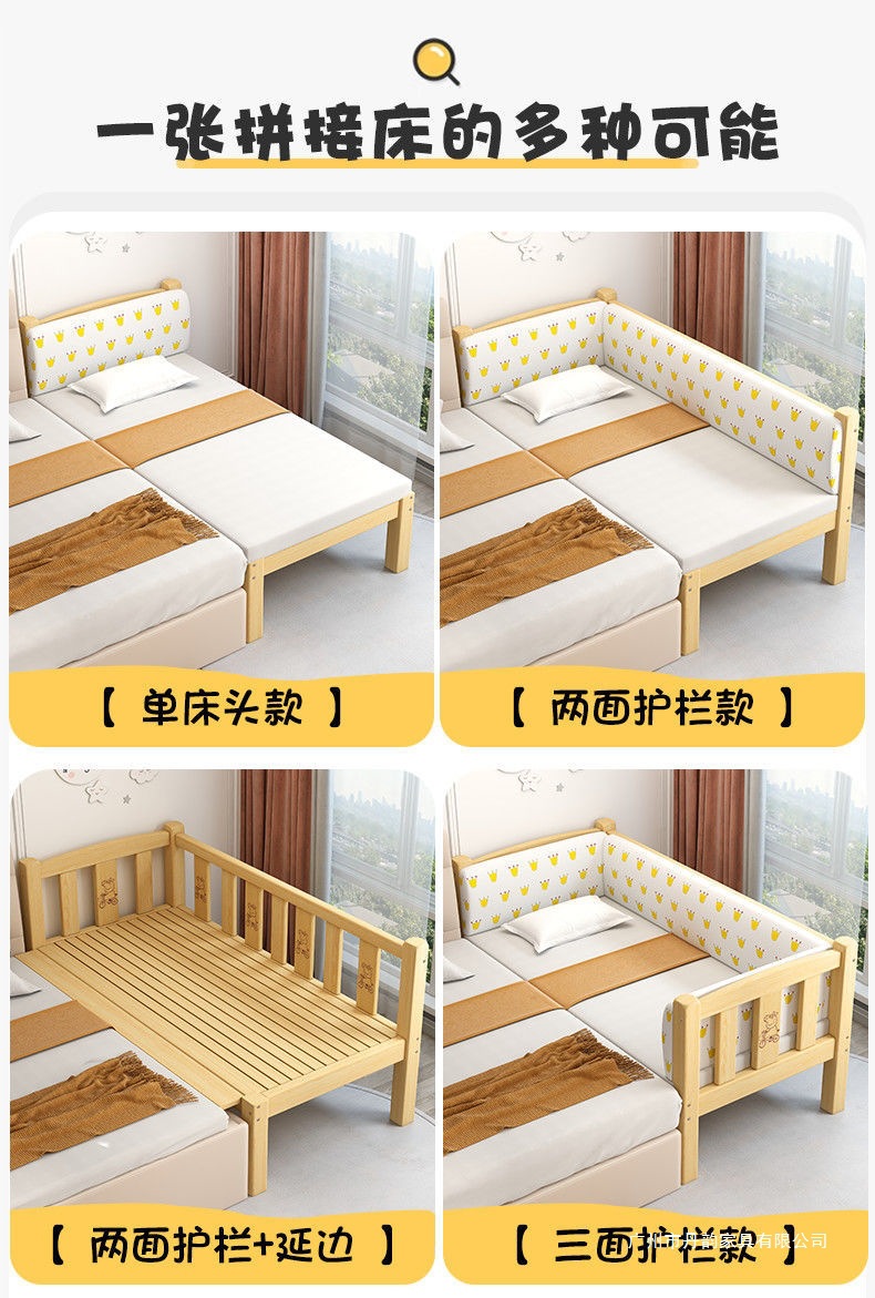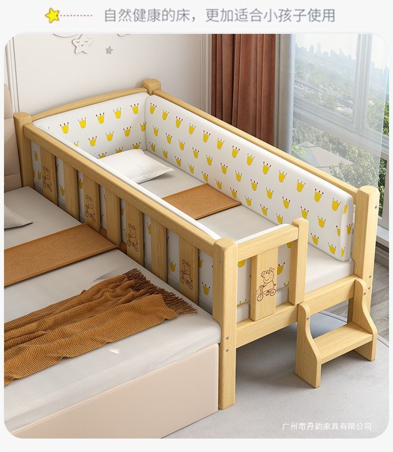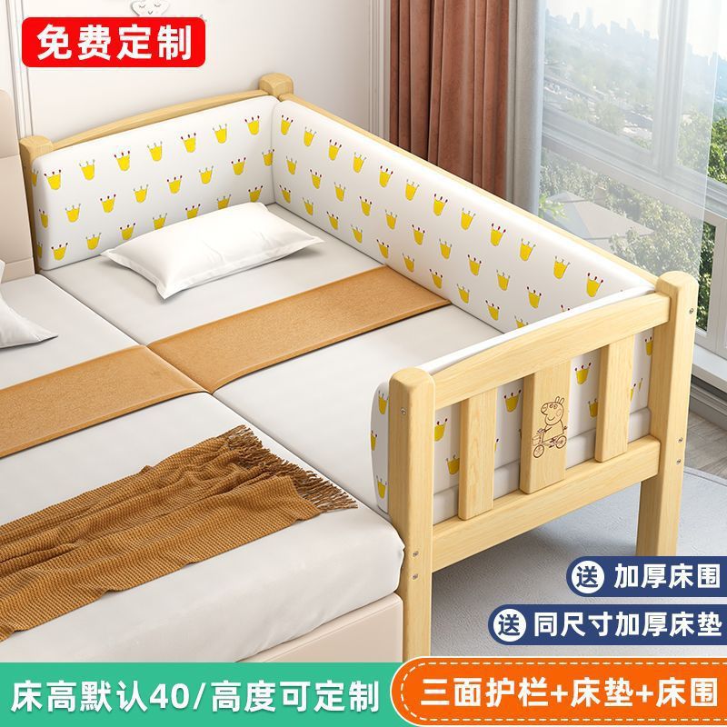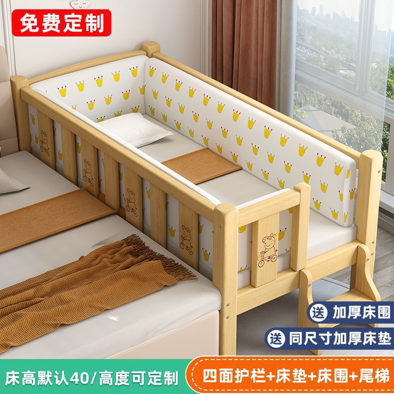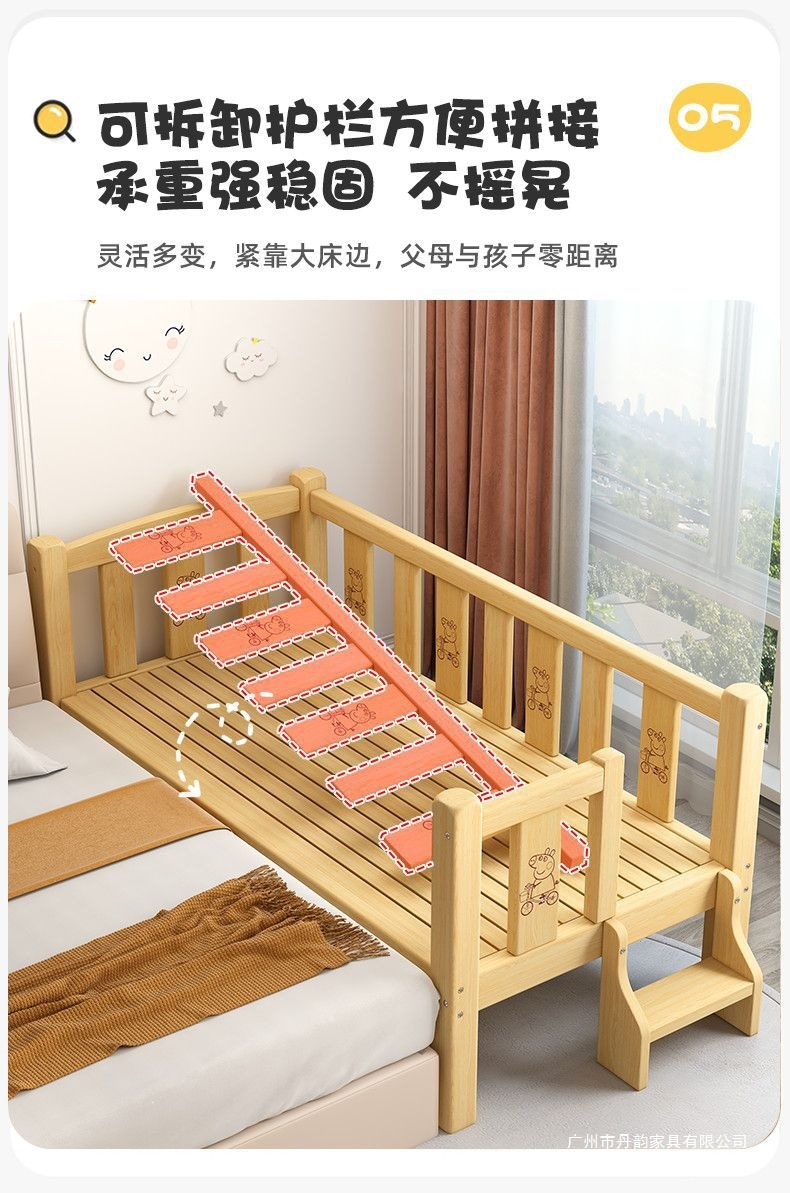 어린이 접합 침대 확대 유아용 침대 소년과 소녀 난간이 있는 단단한 나무 대형 침대 아기 침대 옆 싱글 침대