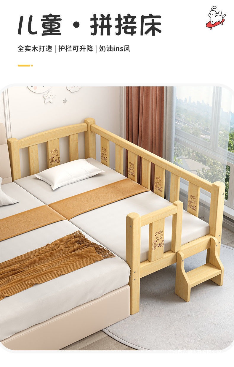 어린이 접합 침대 확대 유아용 침대 소년과 소녀 난간이 있는 단단한 나무 대형 침대 아기 침대 옆 싱글 침대스토어 가기