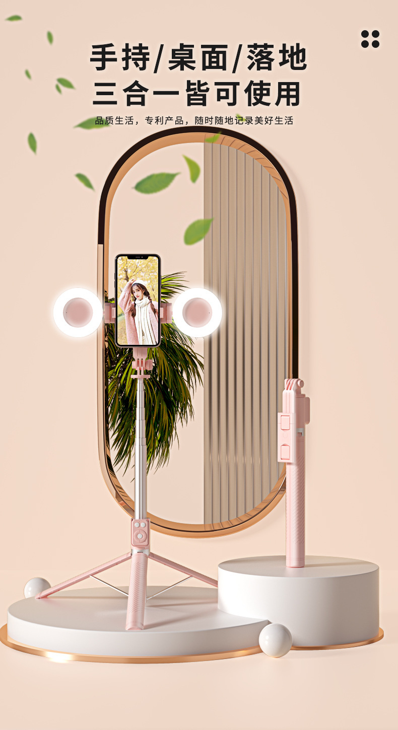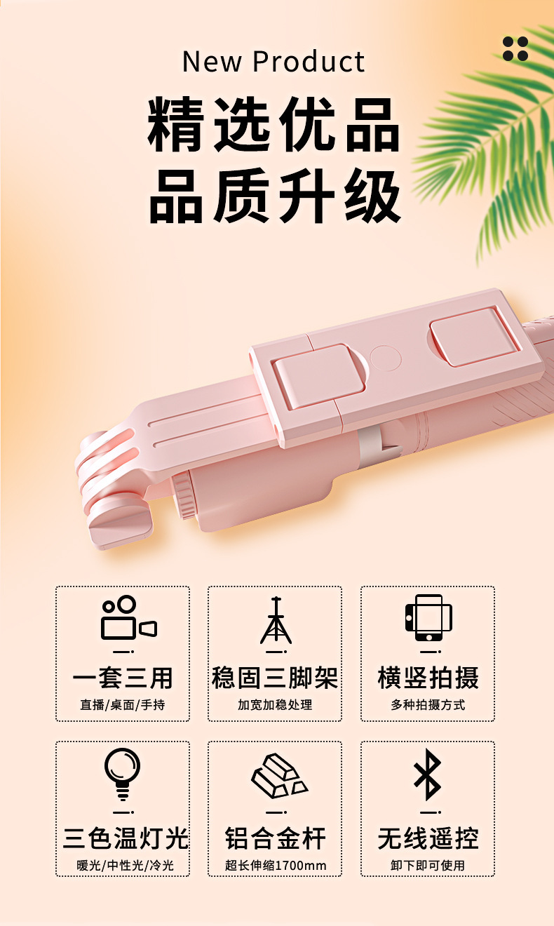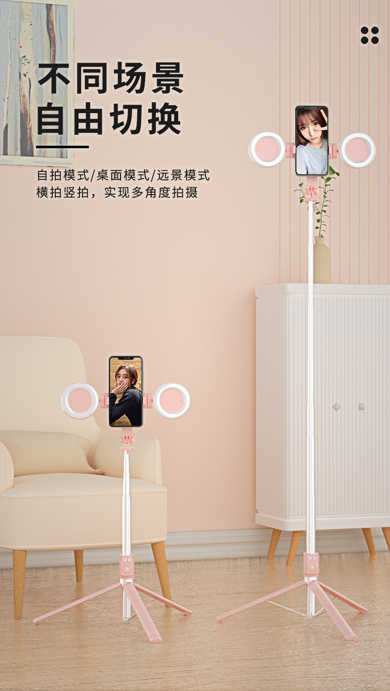 신제품 T12 휴대폰 셀카봉 블루투스 Douyin 핫 모델 1.7m 항공 알루미늄 합금 막대 플로어 스탠딩 라이브 스트리밍 삼각대스토어 가기