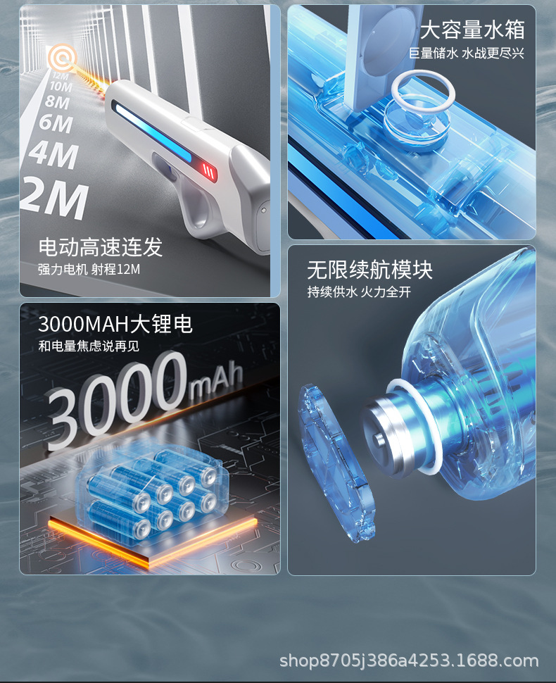 어린이와 성인을 위한 펄스 전기 물총 장난감 자동 물 스프레이 고압 강력한 범위 장거리 물총 기술은 멋집니다.스토어 가기