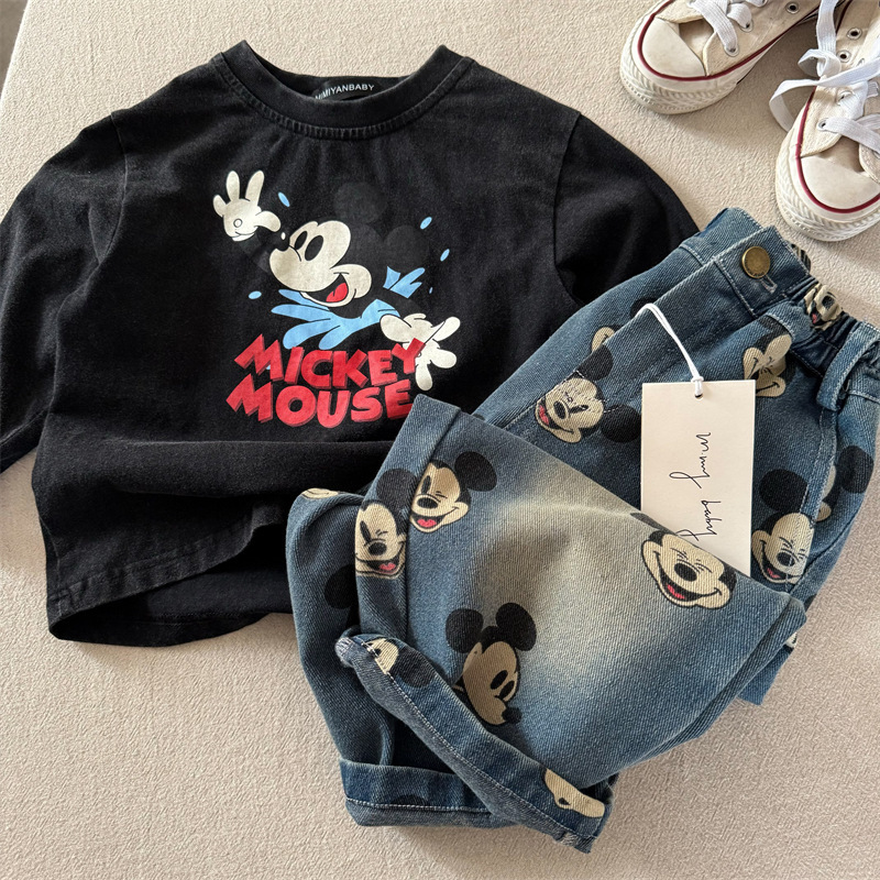 2025년 가을 신상 아동용 긴바지, 남녀 아동복, 만화 프린트 데님 팬츠, 유아용 한국 스타일 긴바지, 트렌디스토어 가기