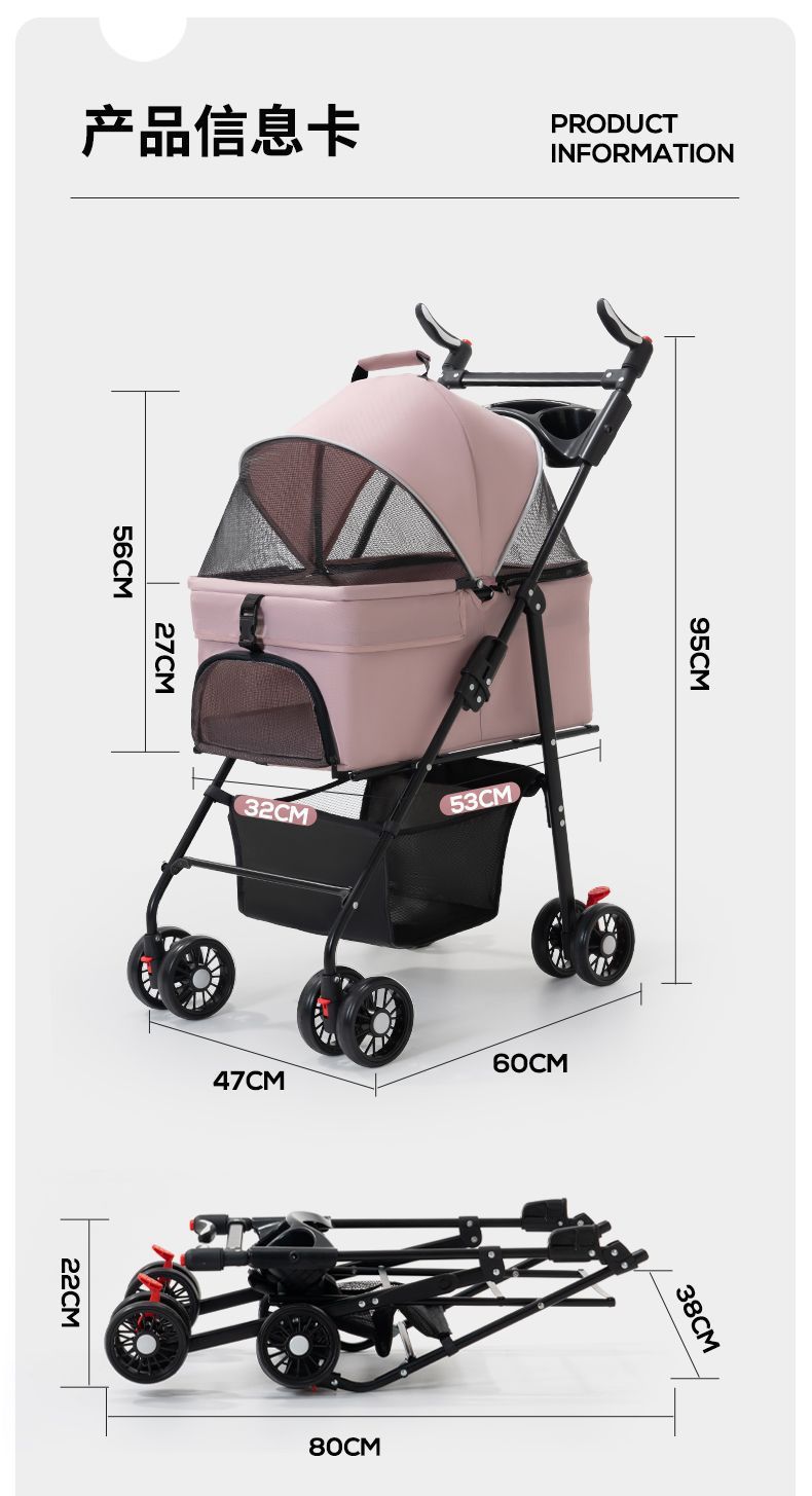 강아지 이동식 고양이 테디 트롤리, 소형 및 중형 개 트롤리, 경량 접이식 분리형 애완동물 트롤리
