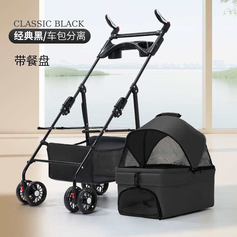 • 크리스탈 블랙 + 레인커버 + 디너 플레이트 + 하단 프레임 [탈부착 가능] 조절 가능한 팔걸이