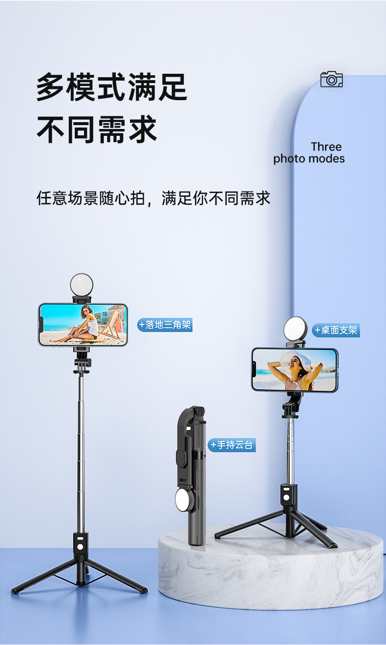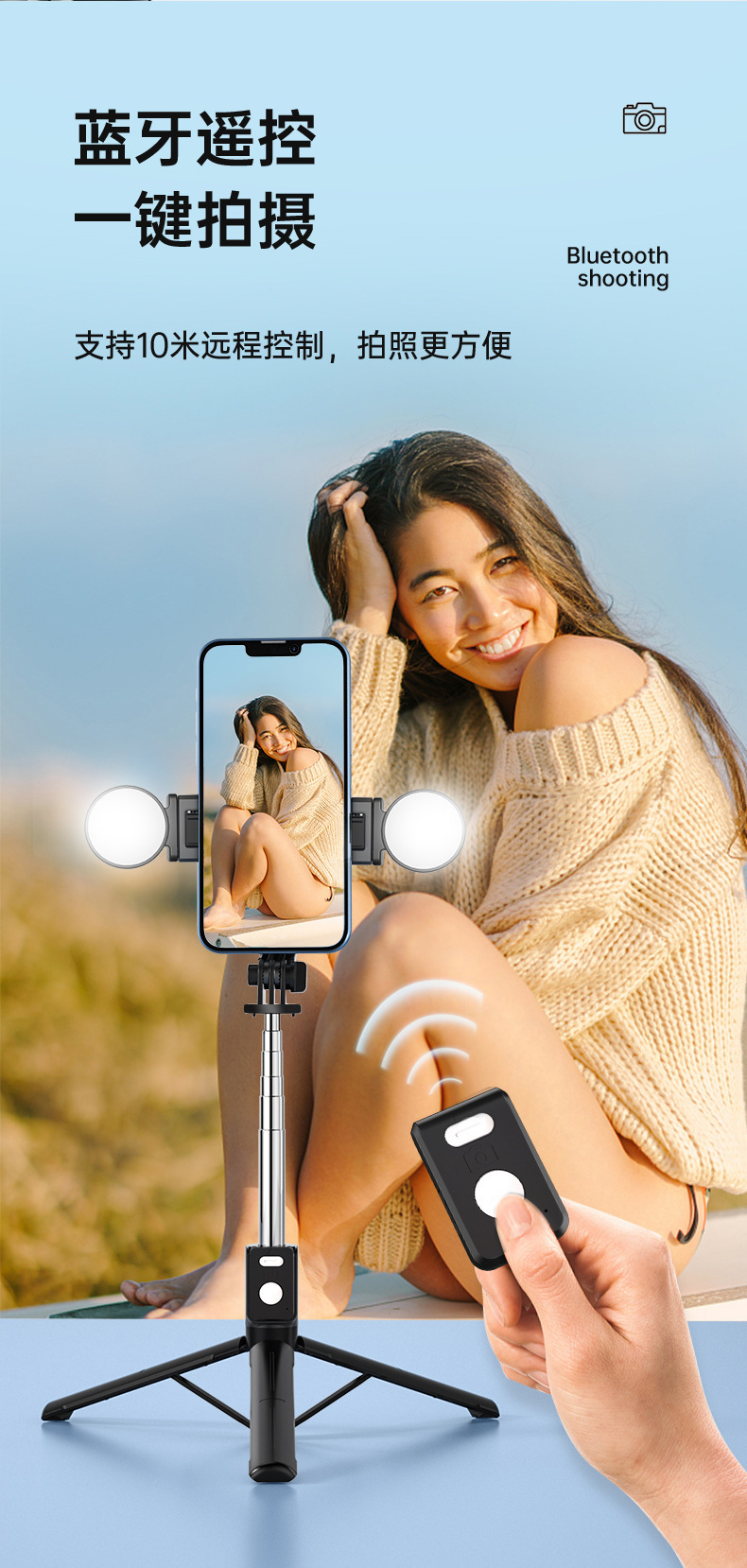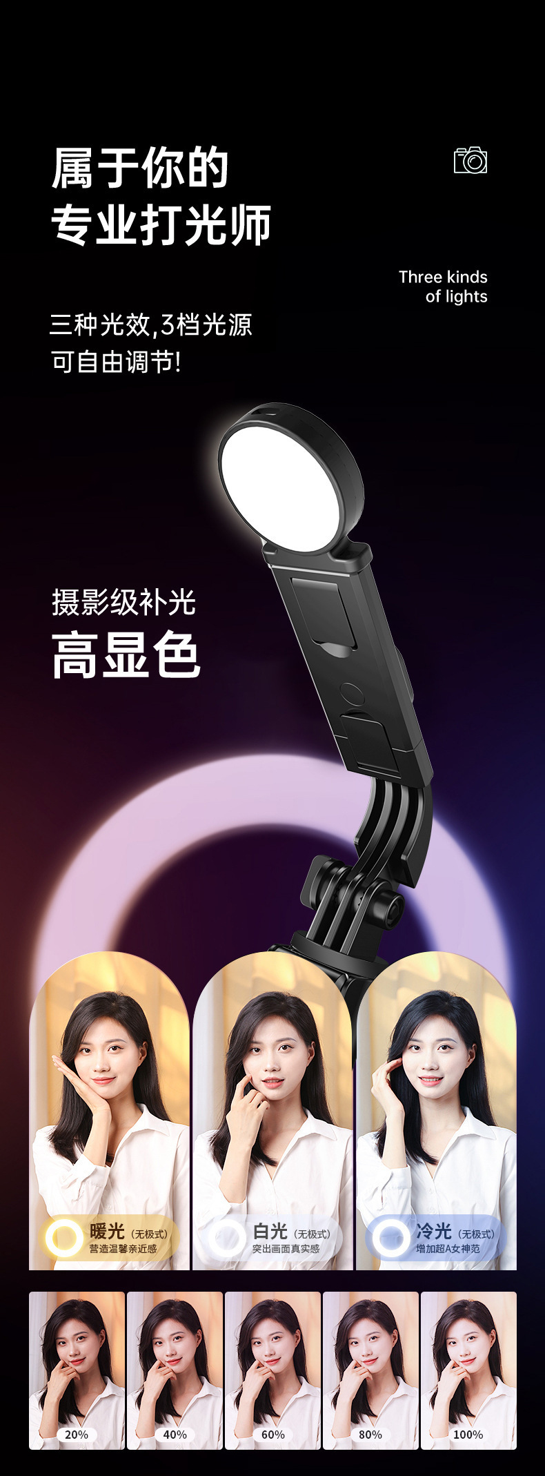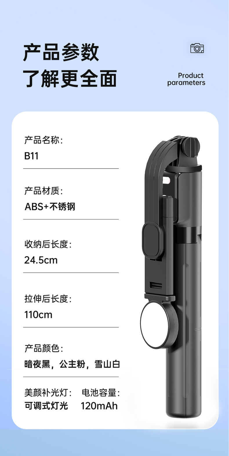 B11s 블루투스 셀카봉 홀더 탈착식 뷰티 필 라이트 라이브 스트리밍 삼각대 휴대용 텔레스코픽 셀카봉