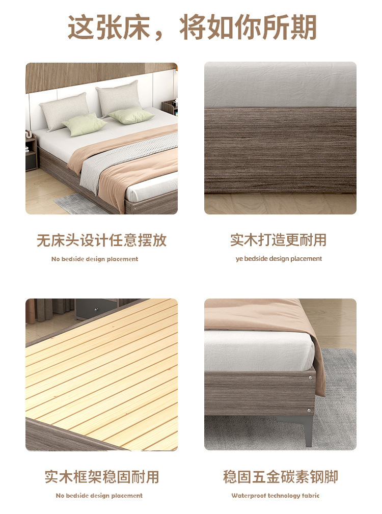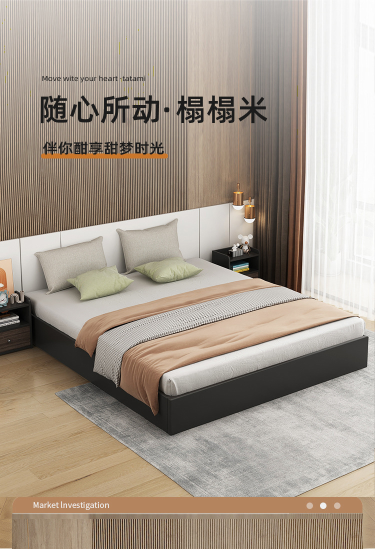 원목 침대, 심플 모던 다다미, 침대 옆이 없는 원목 침대, 가정용 침실 행 뼈대 침대 프레임, 더블 침대